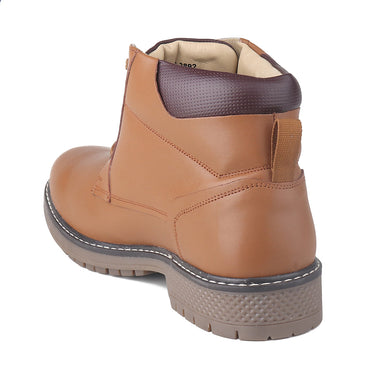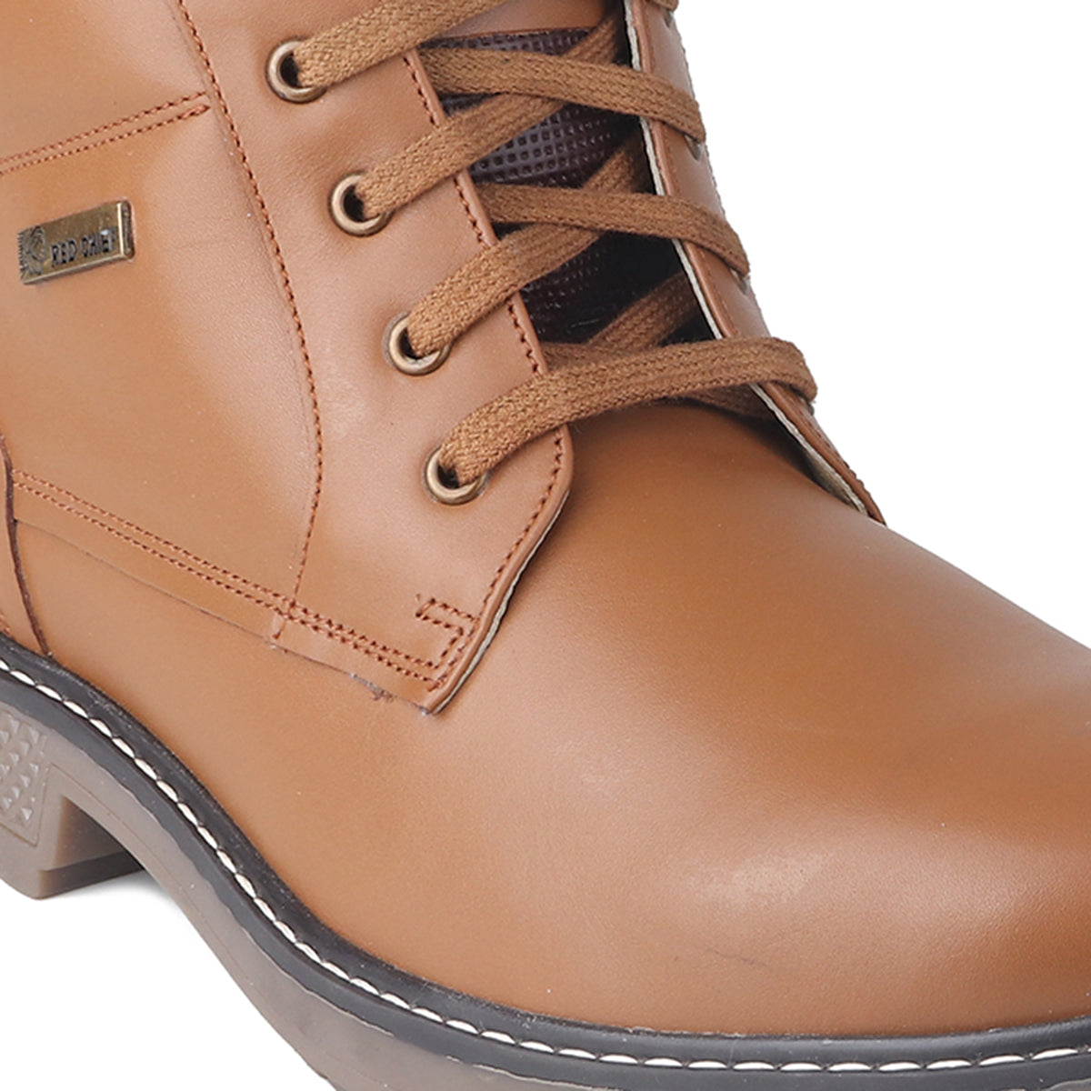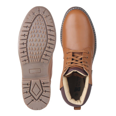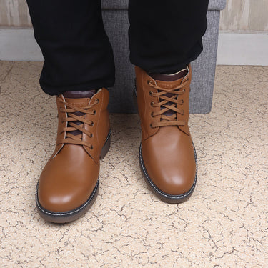 These Red Chief's high-ankle tan casual boots are stylish and comfortable in equal measures. Easy to pair with almost every casual outfit, these boots have a sleek silhouette with contrasting tongue and heel counter. Further, these ultra-comfortable lace-up boots have TPR soles ensuring excellent traction on every terrain.
