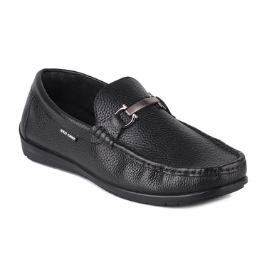 Red Chief brings you black loafers crafted in durable ox floater leather, known for its rich texture and longevity. The mock-stitched toe and metal saddle add a classic touch, ideal for both office and casual settings. Featuring a flexible TPR outsole and soft, molded in-socks, this unlined design provides breathable comfort for all-day wear.