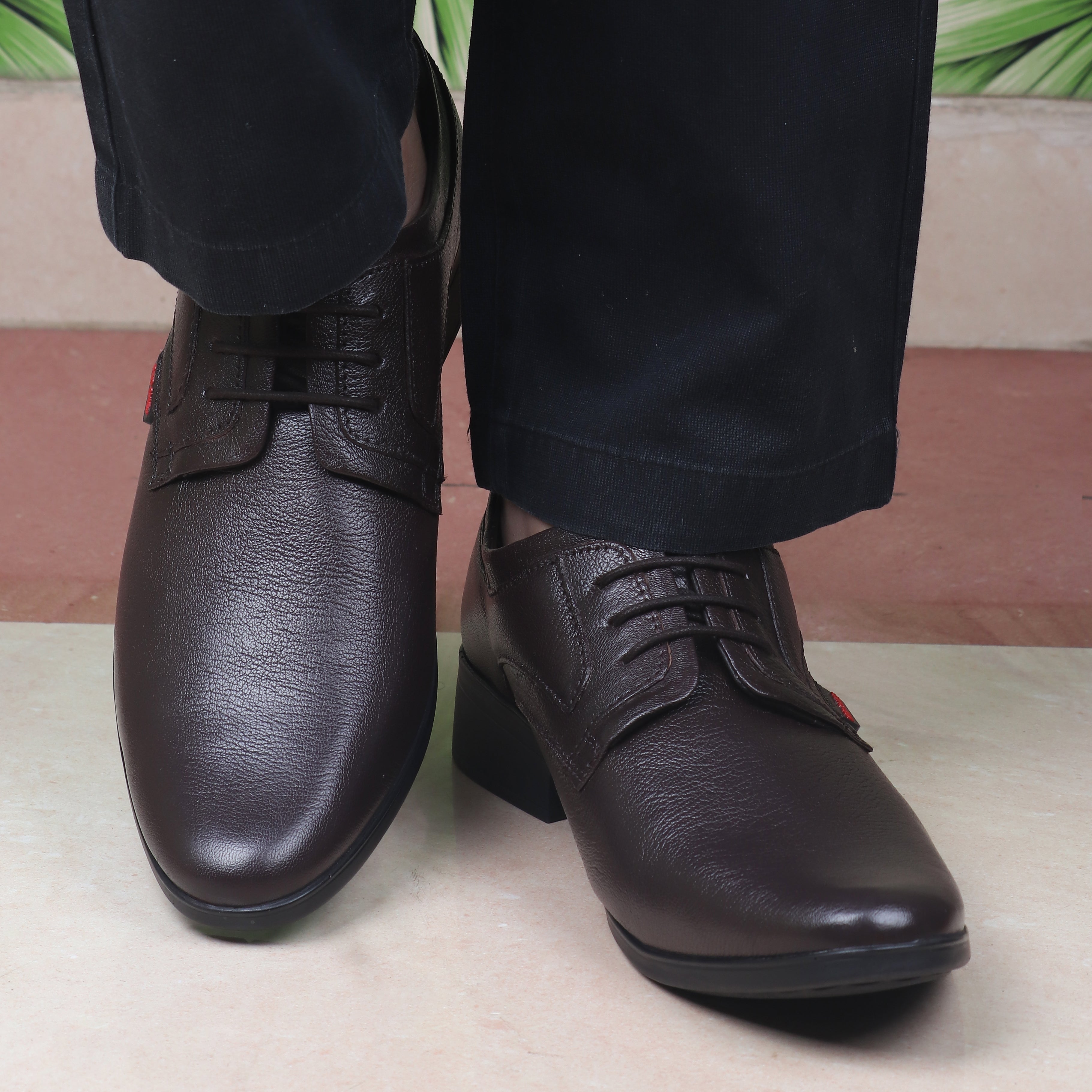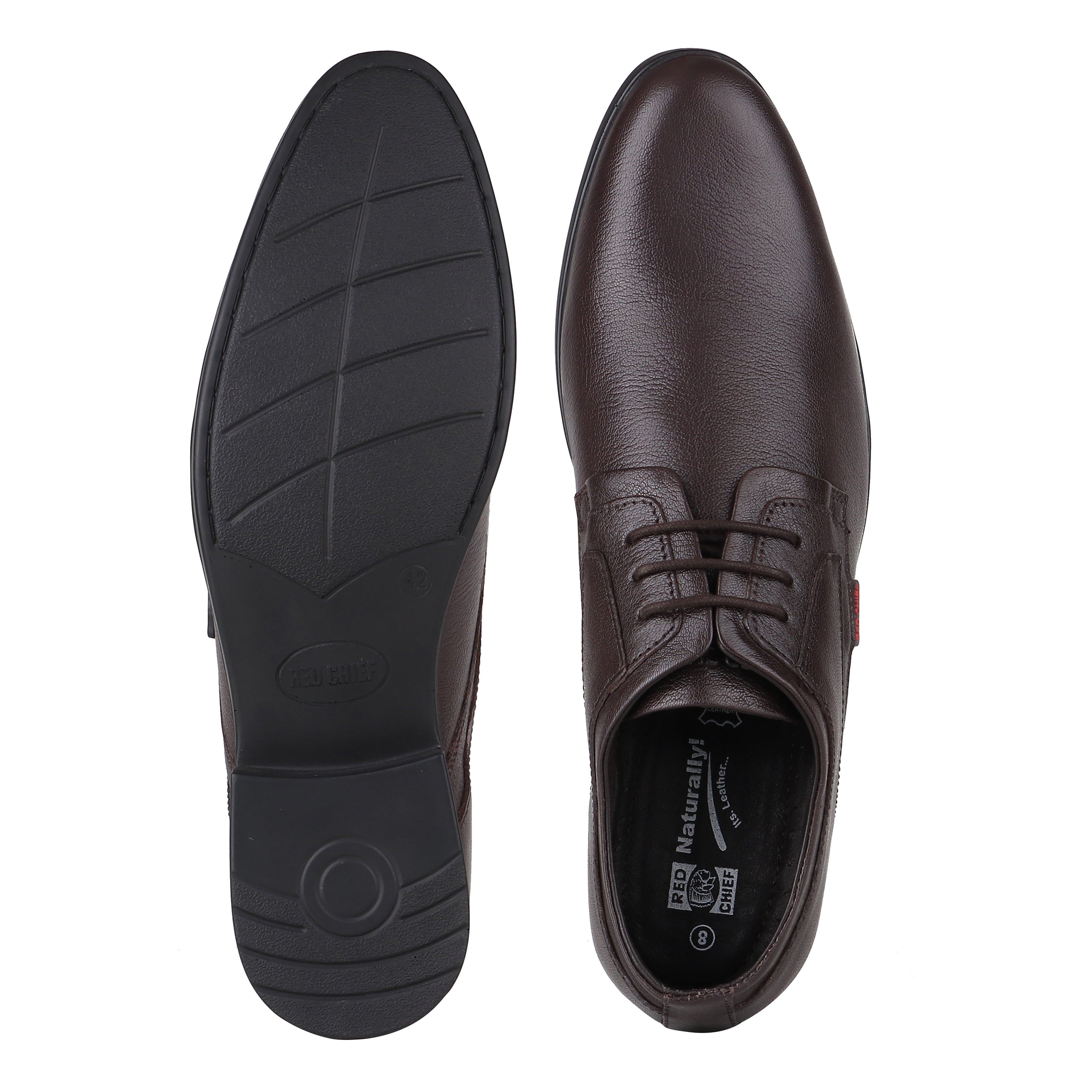 Perfect your corporate look for the upcoming business meeting wearing these brown formal shoes by Red Chief. Featuring a lightweight goat nappa leather upper these lace-ups are extremely light in weight. The PU (polyurethane) outsole promises better stability and flexibility. Team these shoes with formal trousers.