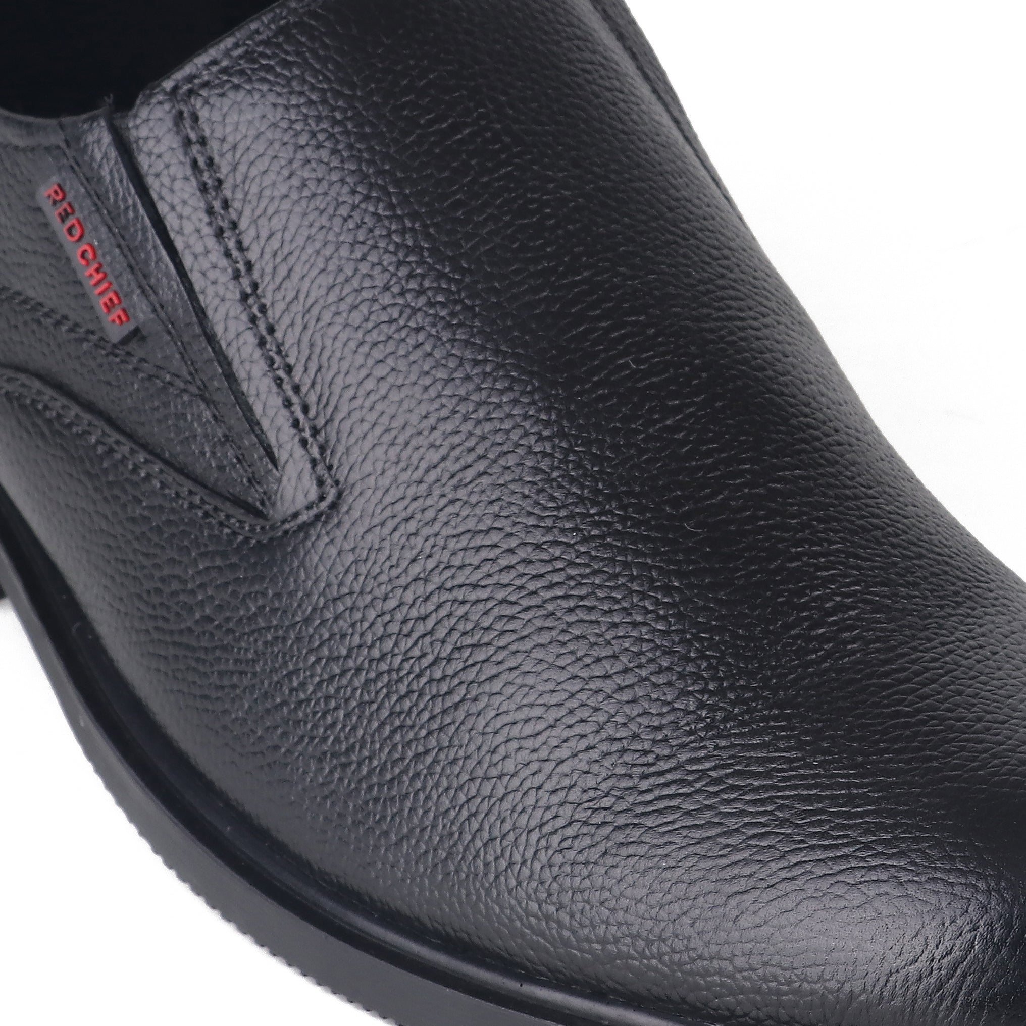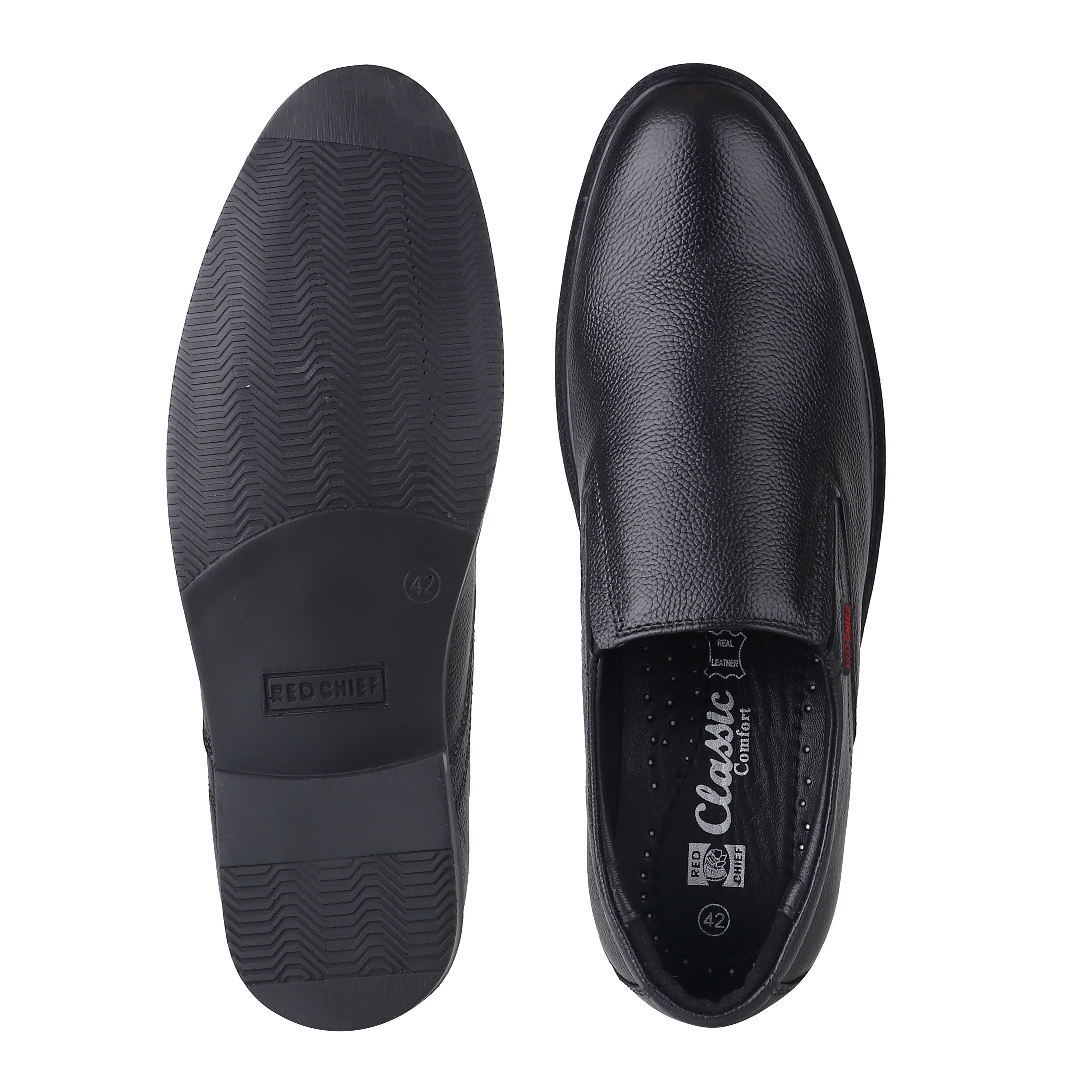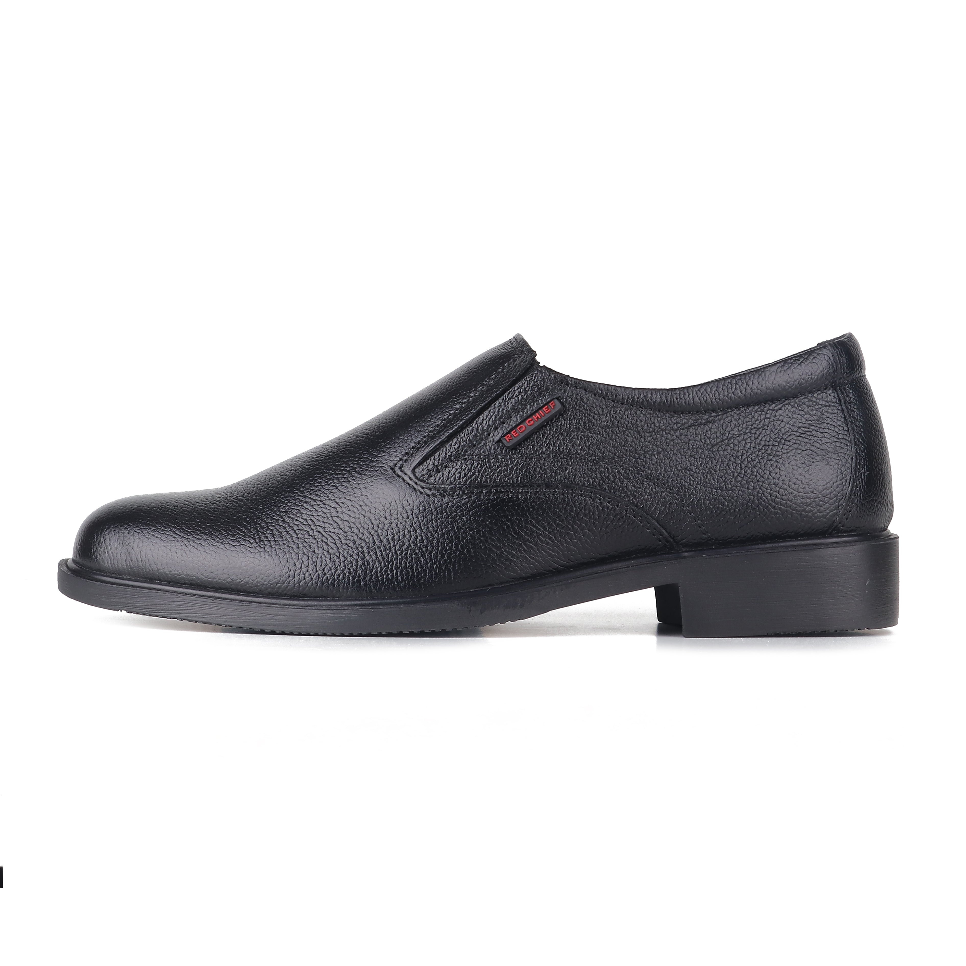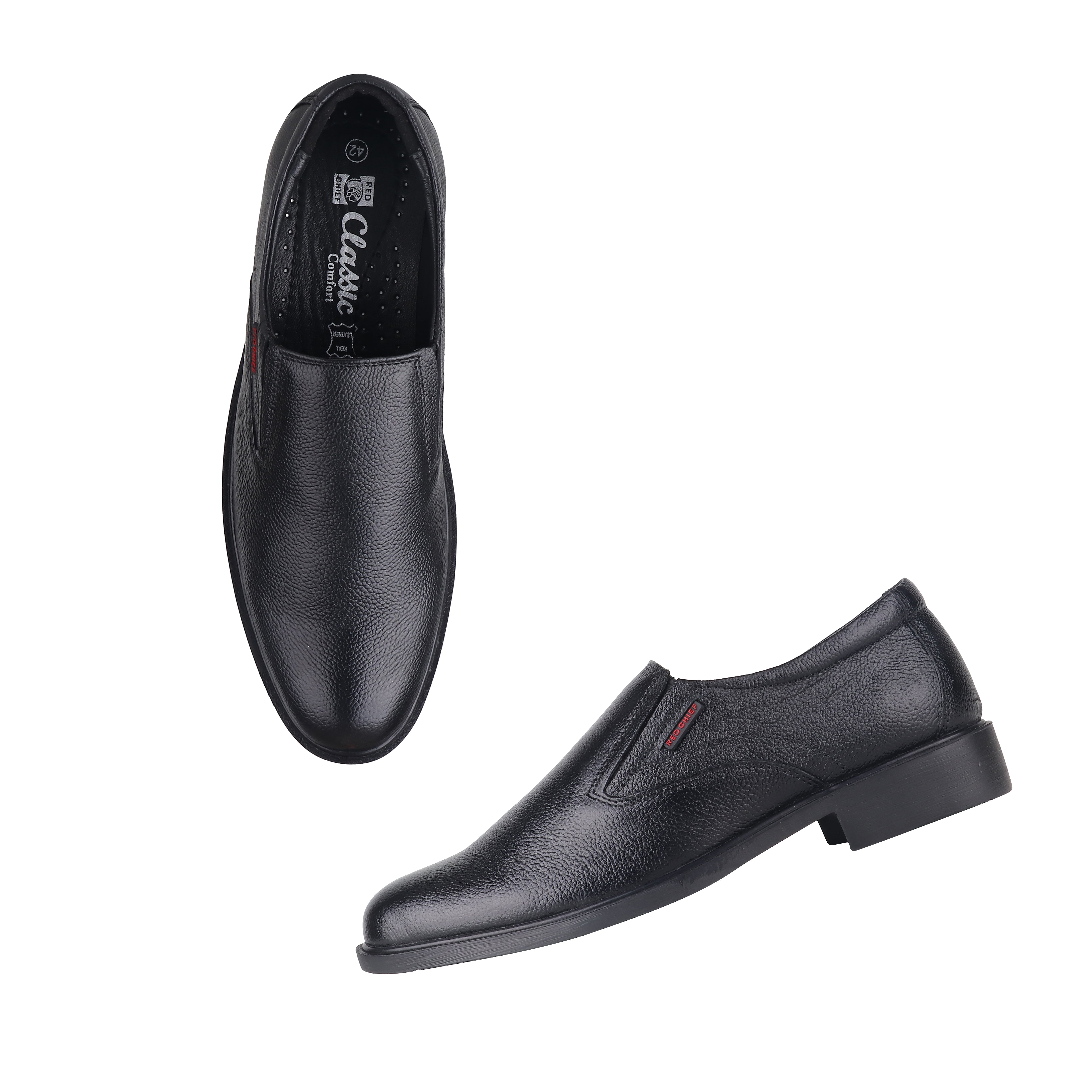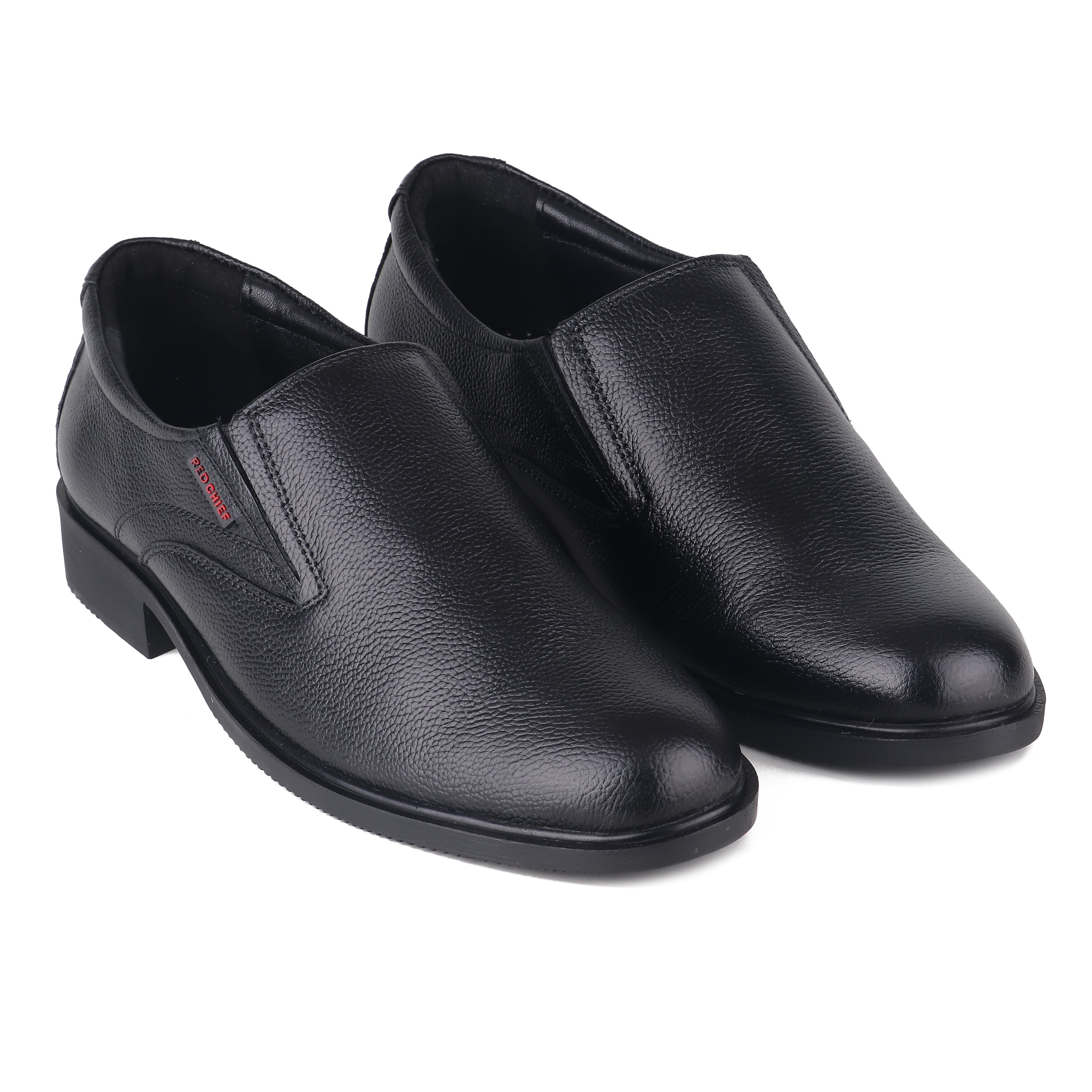 Black in colour these formal shoes by Red Chief exude sophistication and elegance. Featuring a lightweight soft goat nappa leather upper these slip-ons have a cushioned footbed for impact resistance. Detailed with a tough PU (polyurethane) outsole for better flexibility these shoes will go well with flat-front trousers.