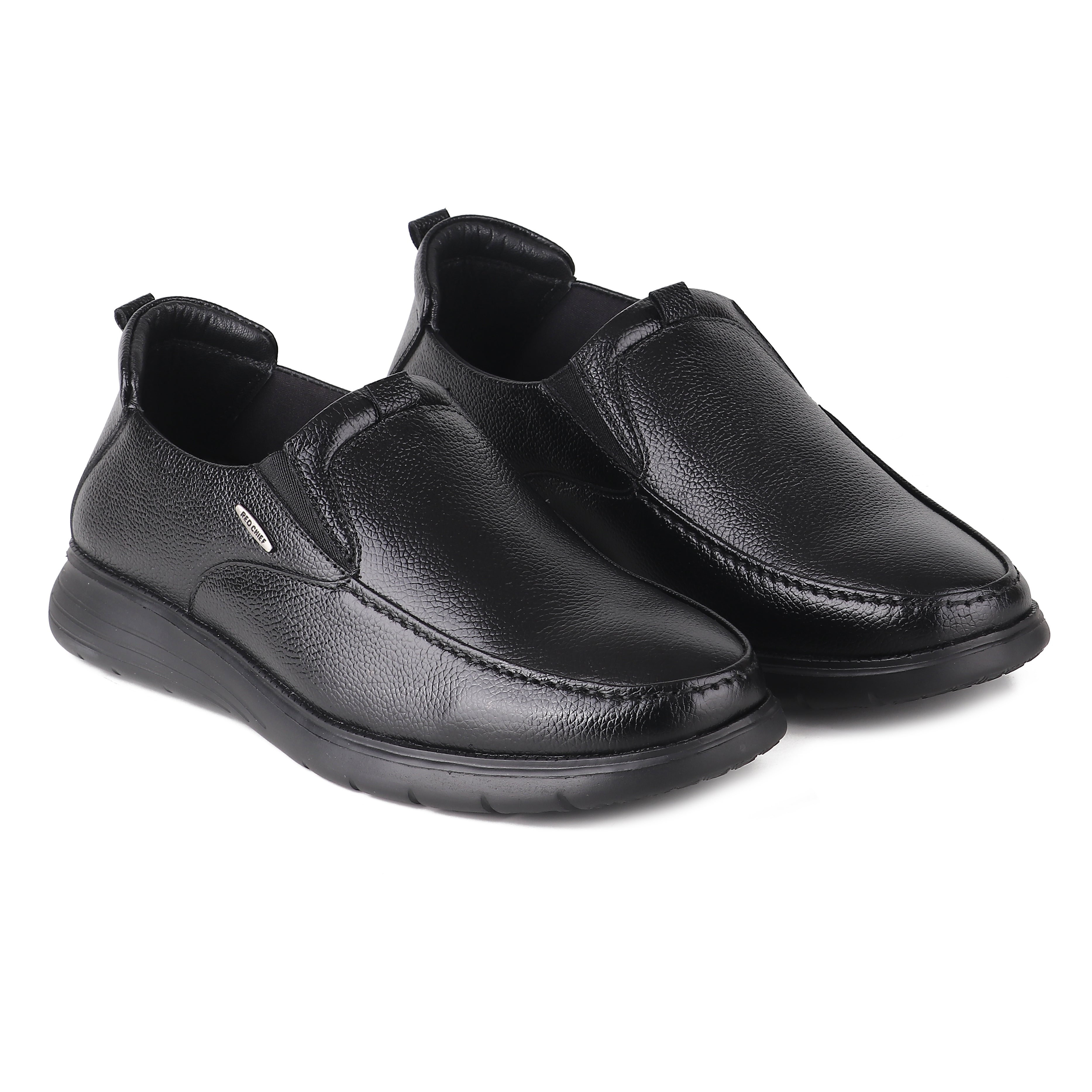 Benefits: RC3977LR 001 The Slip-on closure shoe is comfortable & durable. The black Ox milled lather upper with cushioned back collar makes this shoe very smooth wear and breathable. The vamp is stitched by thick stitch to make it too attractive shoe. The breathable and soft skin fit lining provides a smooth wearing feel for regular wear. All weather grip, Light weight, Good flexibilty, Slip resistance. Outsole Material is EVA with excellent mold ability which provide.