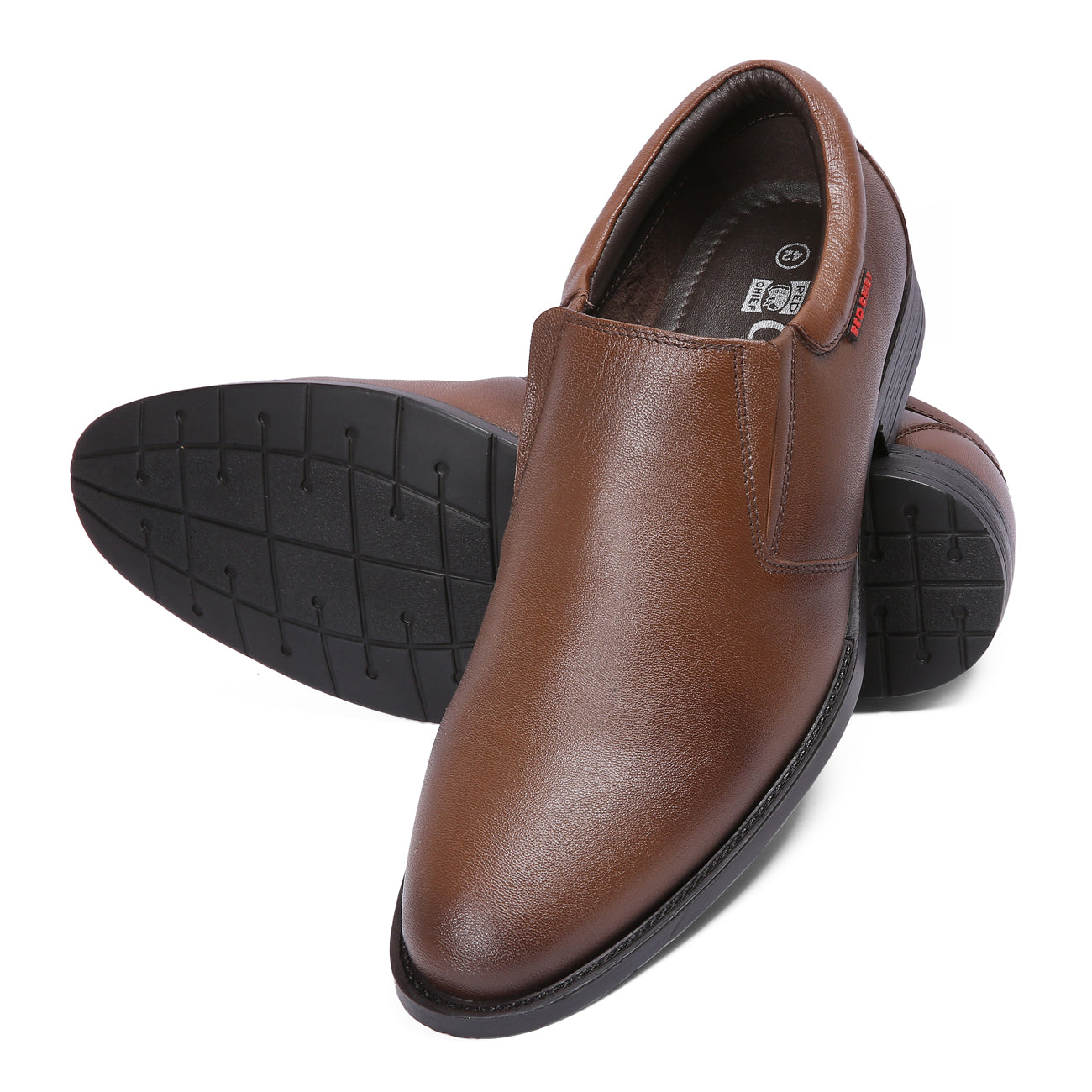 Red Chief brings forth this pair of tan coloured formal shoes from its latest collection for a dashing man like you. These slip-ons flaunt contrast outsole for colour pop-up effect and sleek upper for classy appeal. This low-cut pair can be best teamed with a white shirt and black trousers.