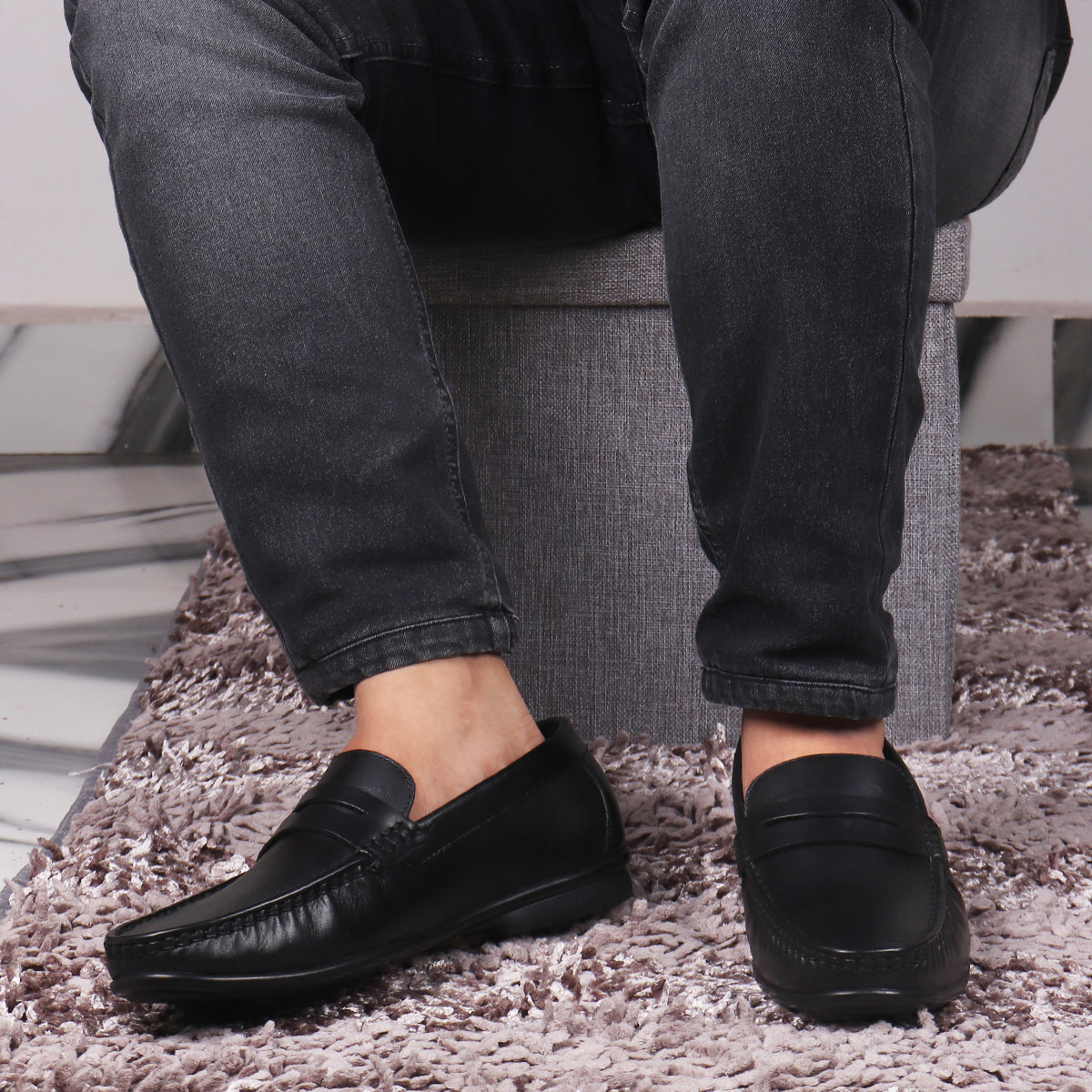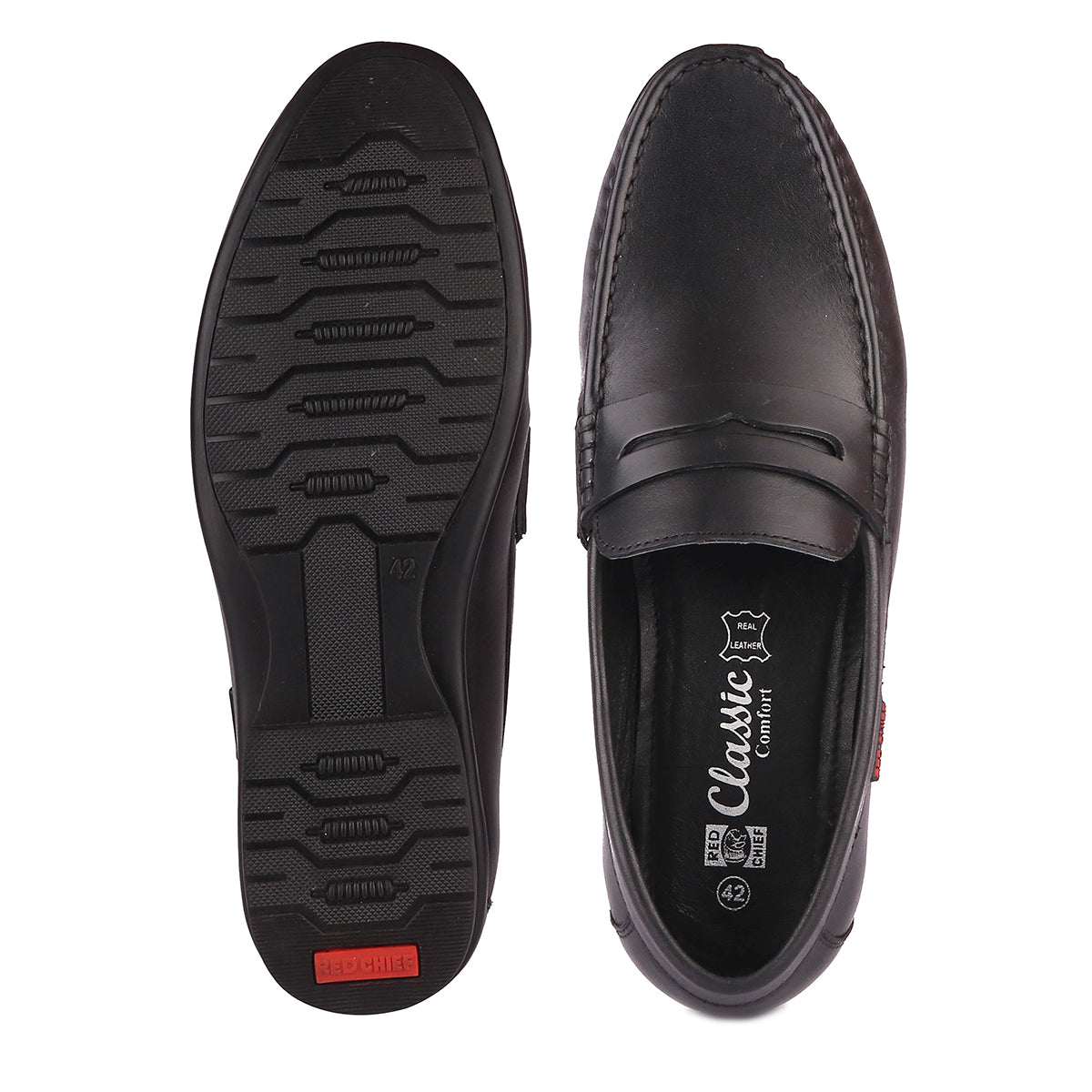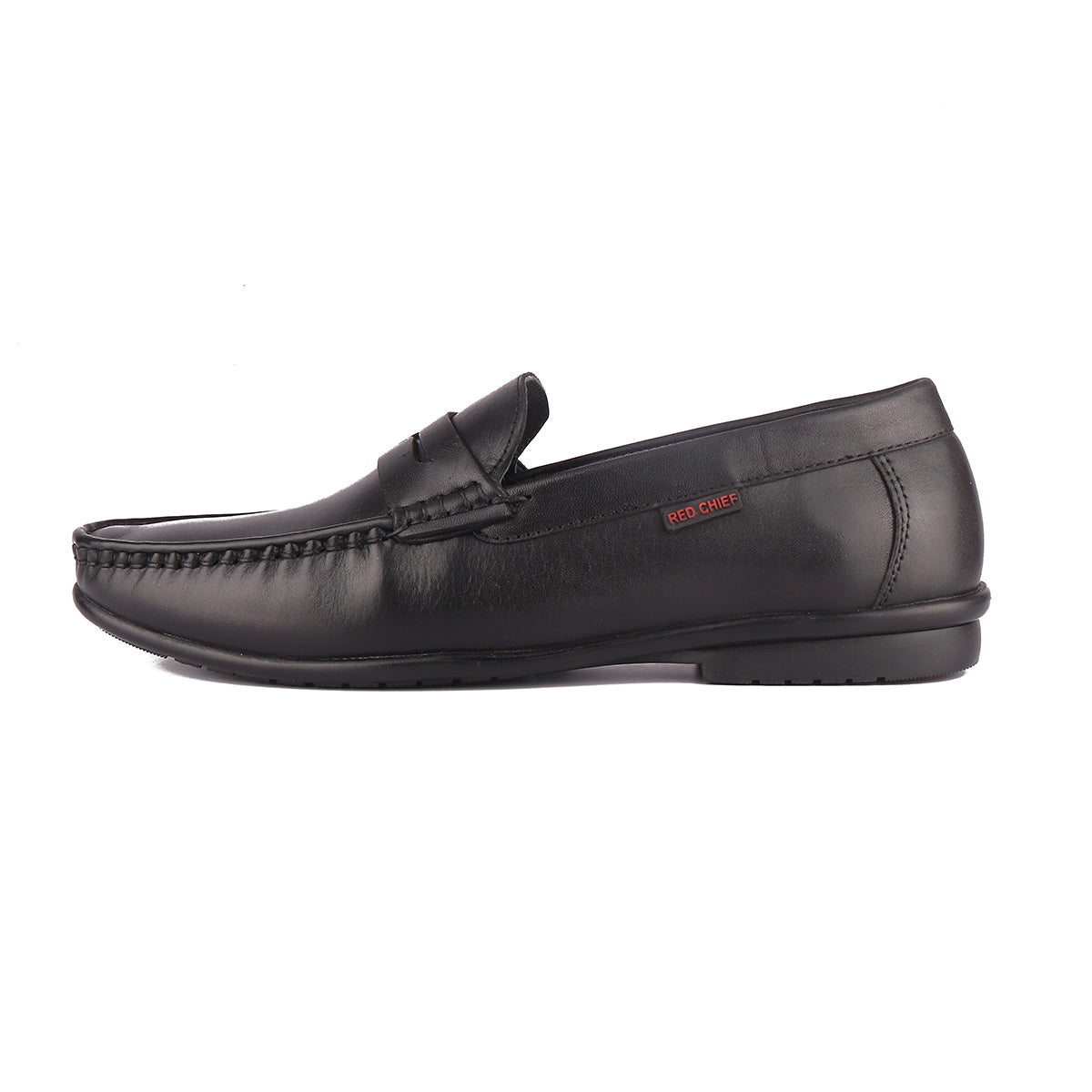 This sleek pair of footwear in black feature a smooth-finish lace-free silhouette lending edgy vibes. These Red Chief shoes have cow crust upper sheep lining and rubber sole promising high flexibility breathability and comfort for your foot. The cutout design on the top makes these shoes look appealing and exclusive.