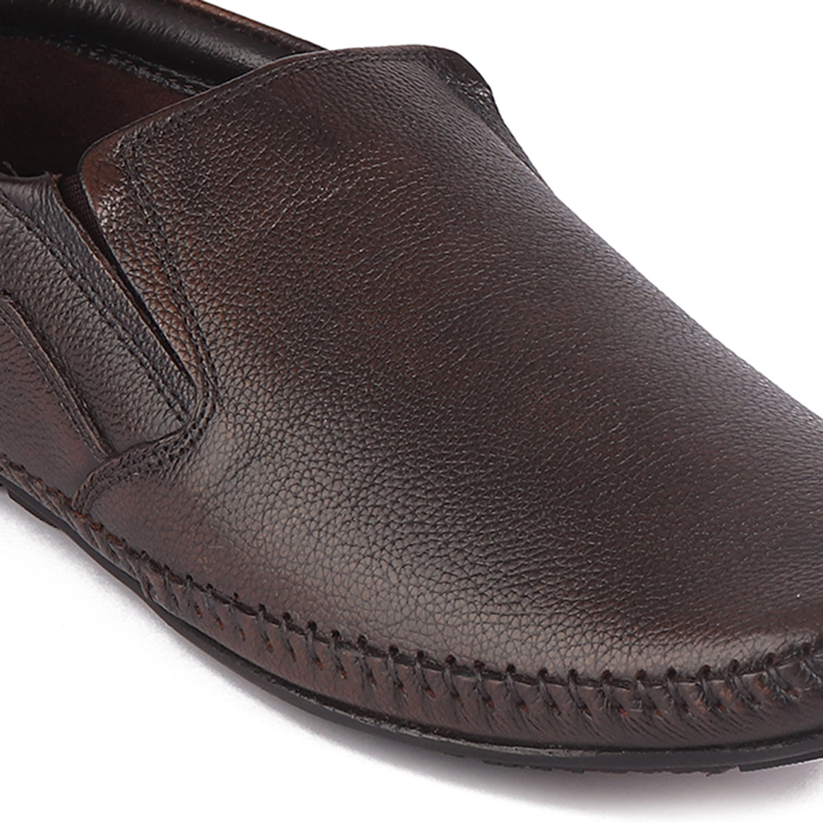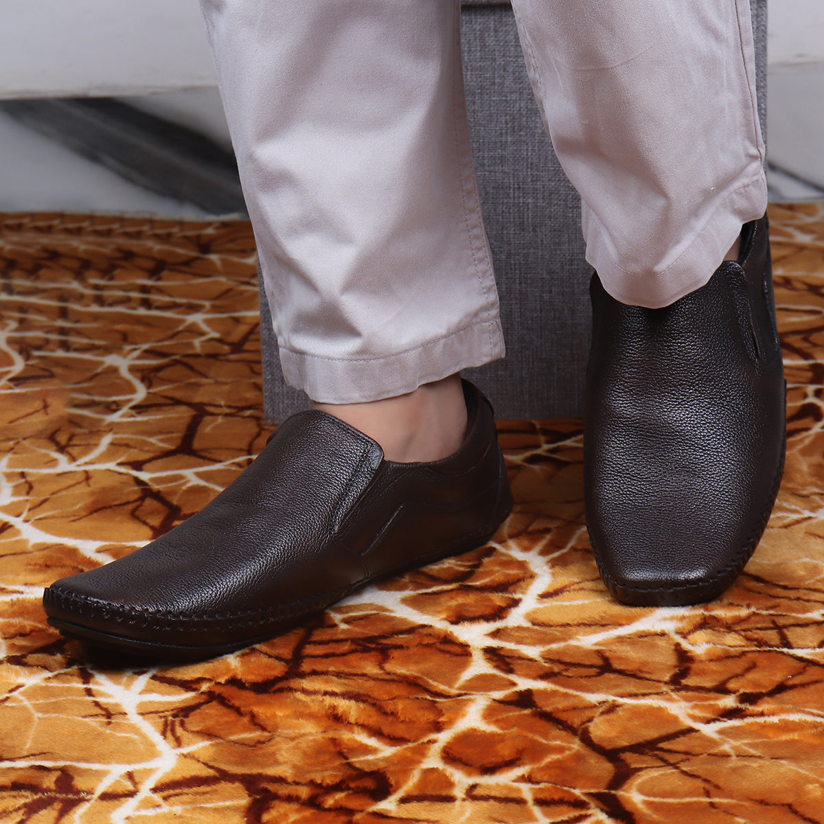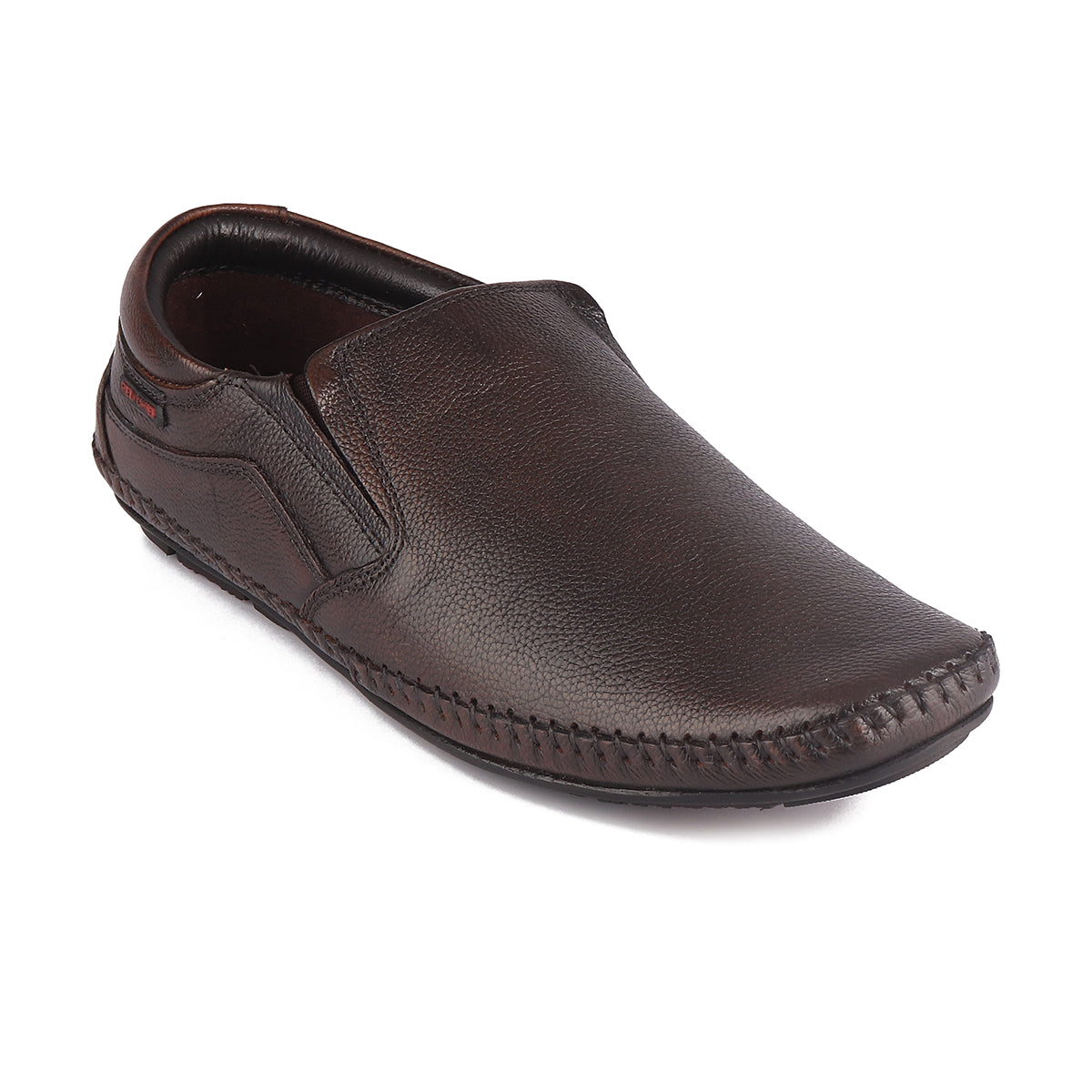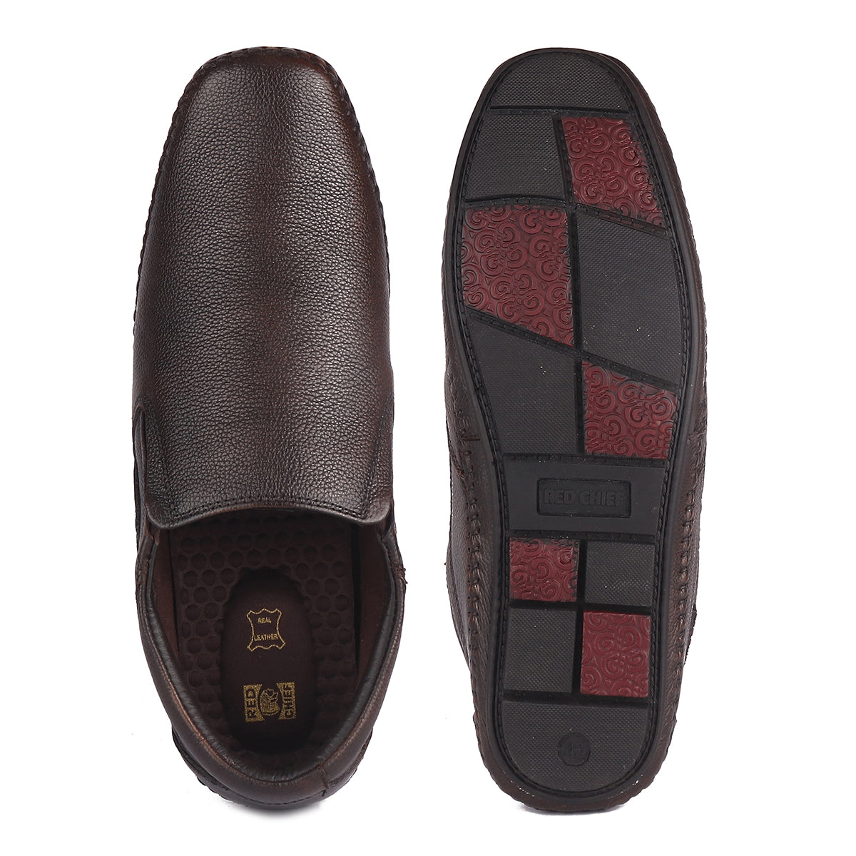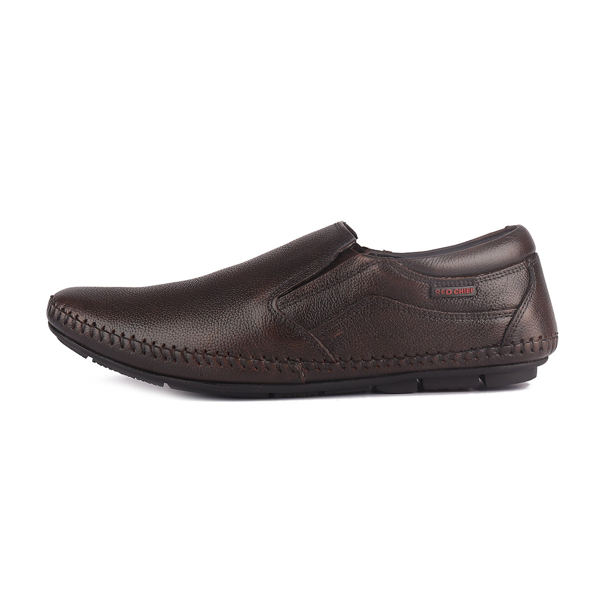 Look your formal best by wearing this pair of stylish and comfortable slip-on shoes from Red Chief. Great traction is provided by the slip-resistant sole while the upper ensures a snug fit and adds to the overall look. The round shaped tip makes it ideal for wearing on formal occasions. Team it with a trendy shirt and a pair of pleated trousers to look handsome.