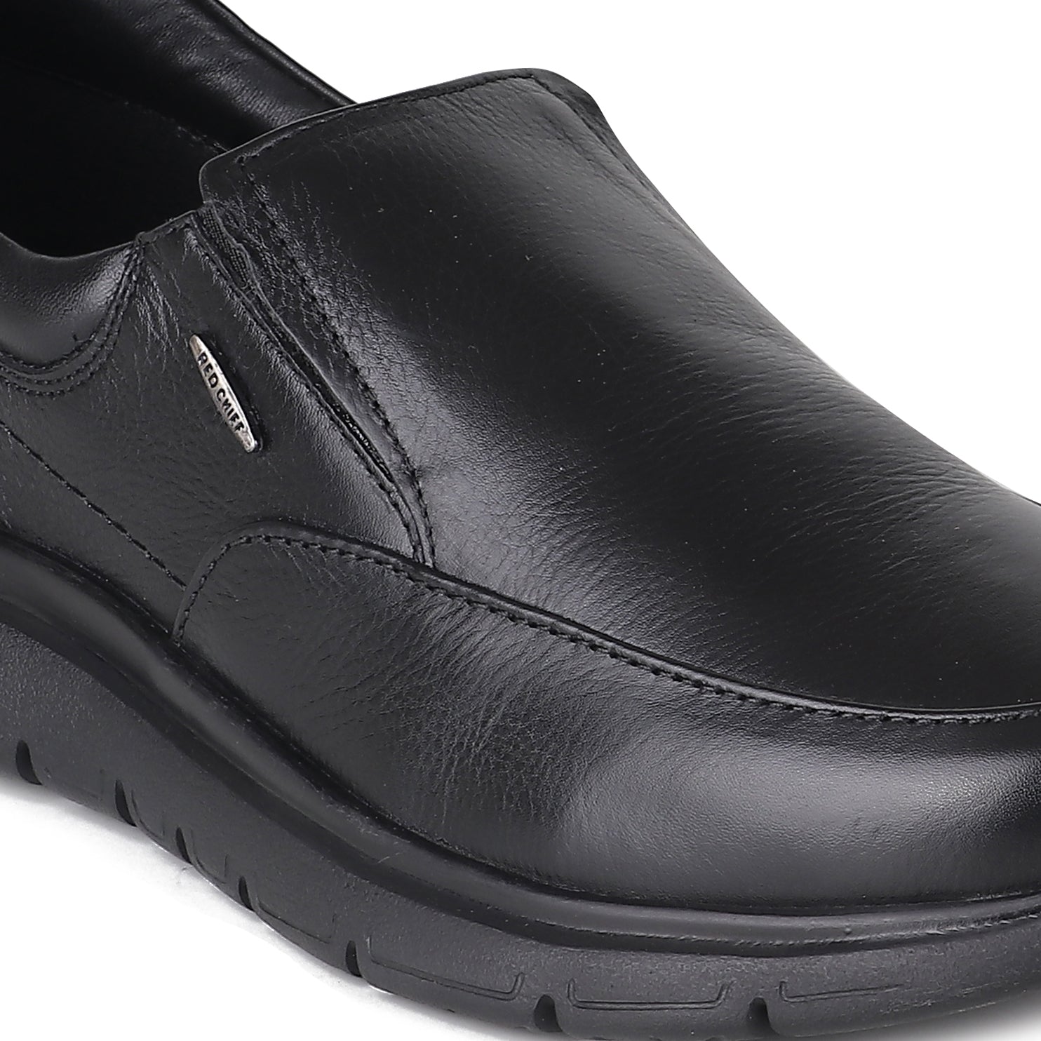 Finish off your sophisticated corporate looks in style slipping into this pair of formal shoes by Red Chief. Crafted to excellence for urban men, these slip-on shoes feature a soft upper with round toes and a cushioned footbed. The tough ethylene vinyl acetate (EVA) outsole promises durability and slip resistance. Team these shoes with formal trousers.
