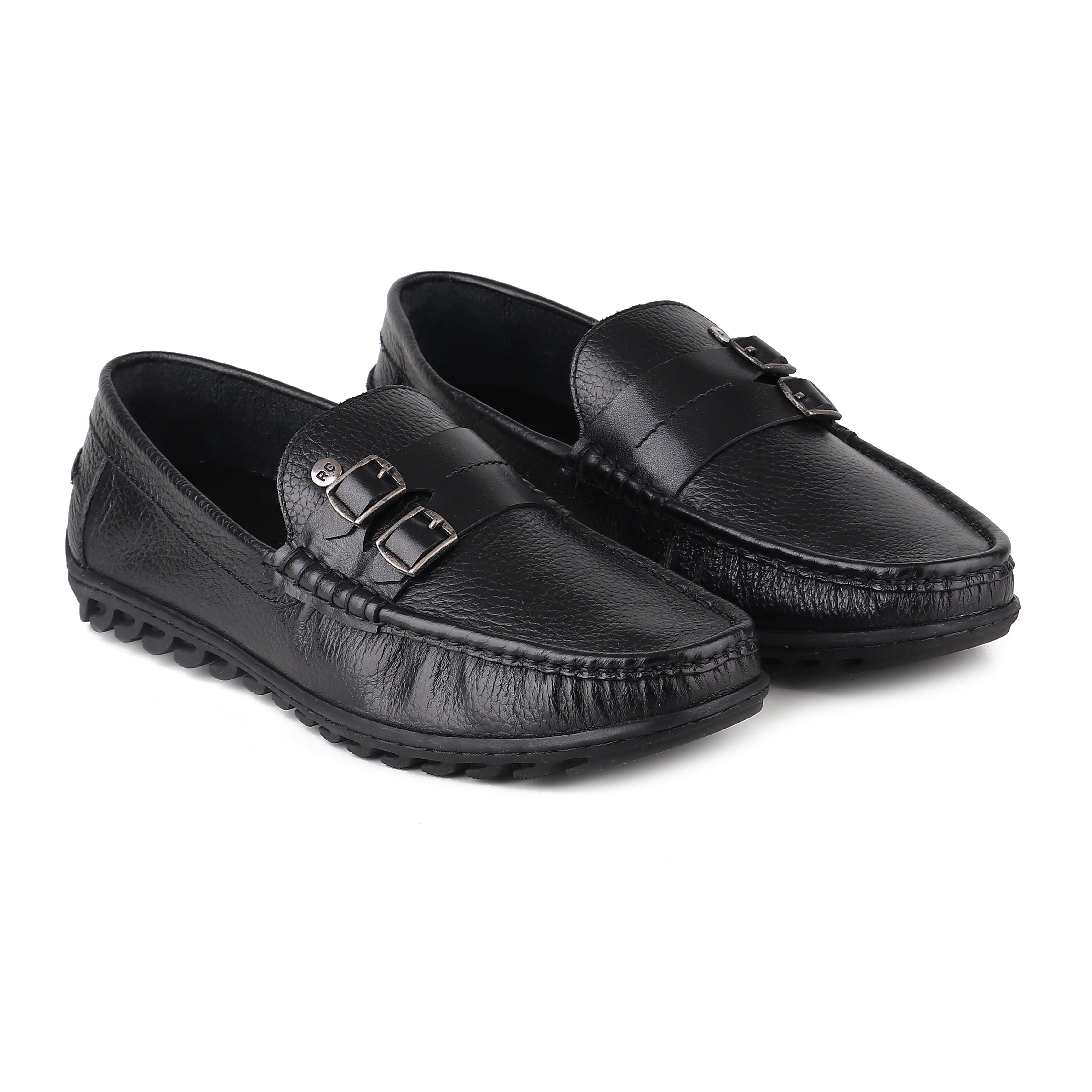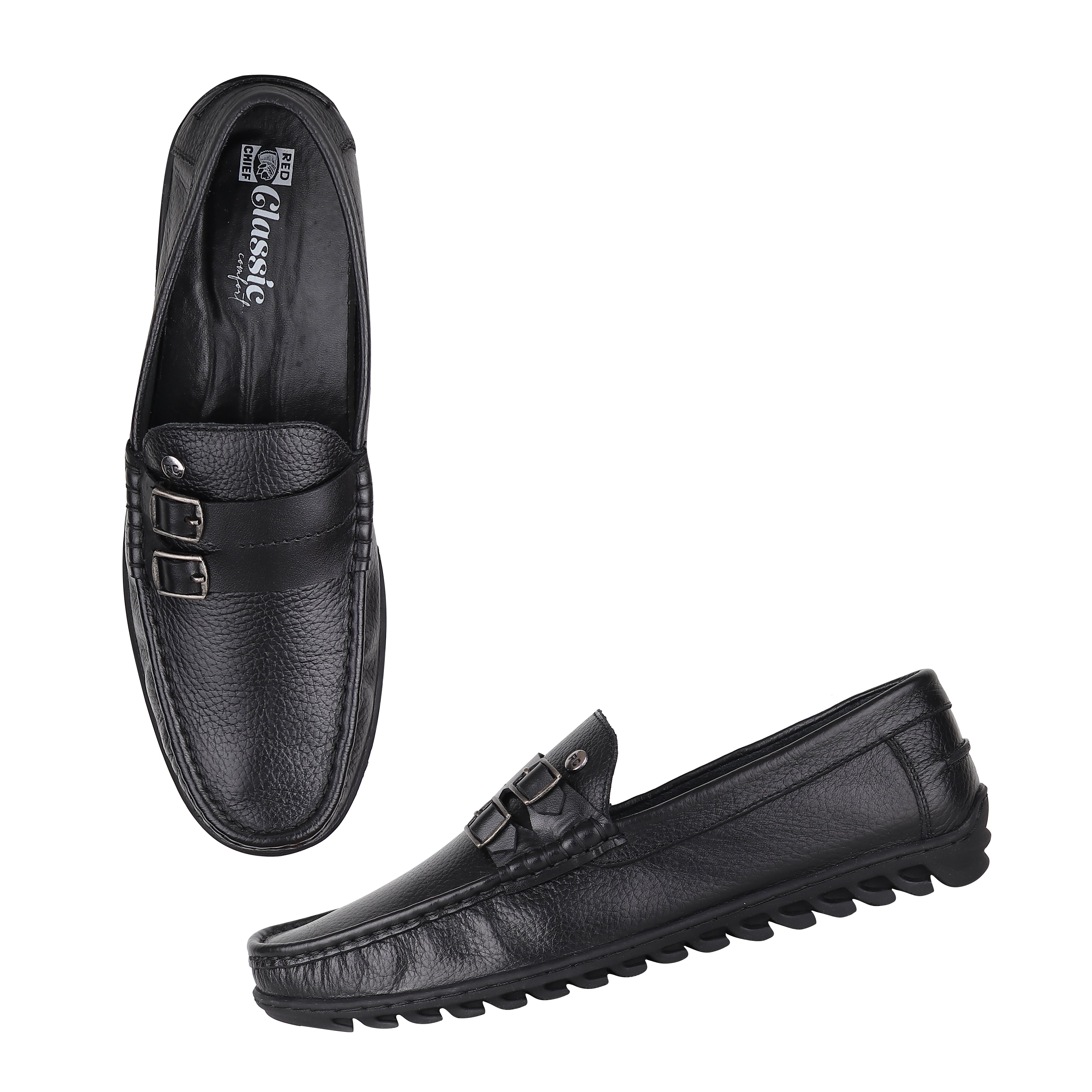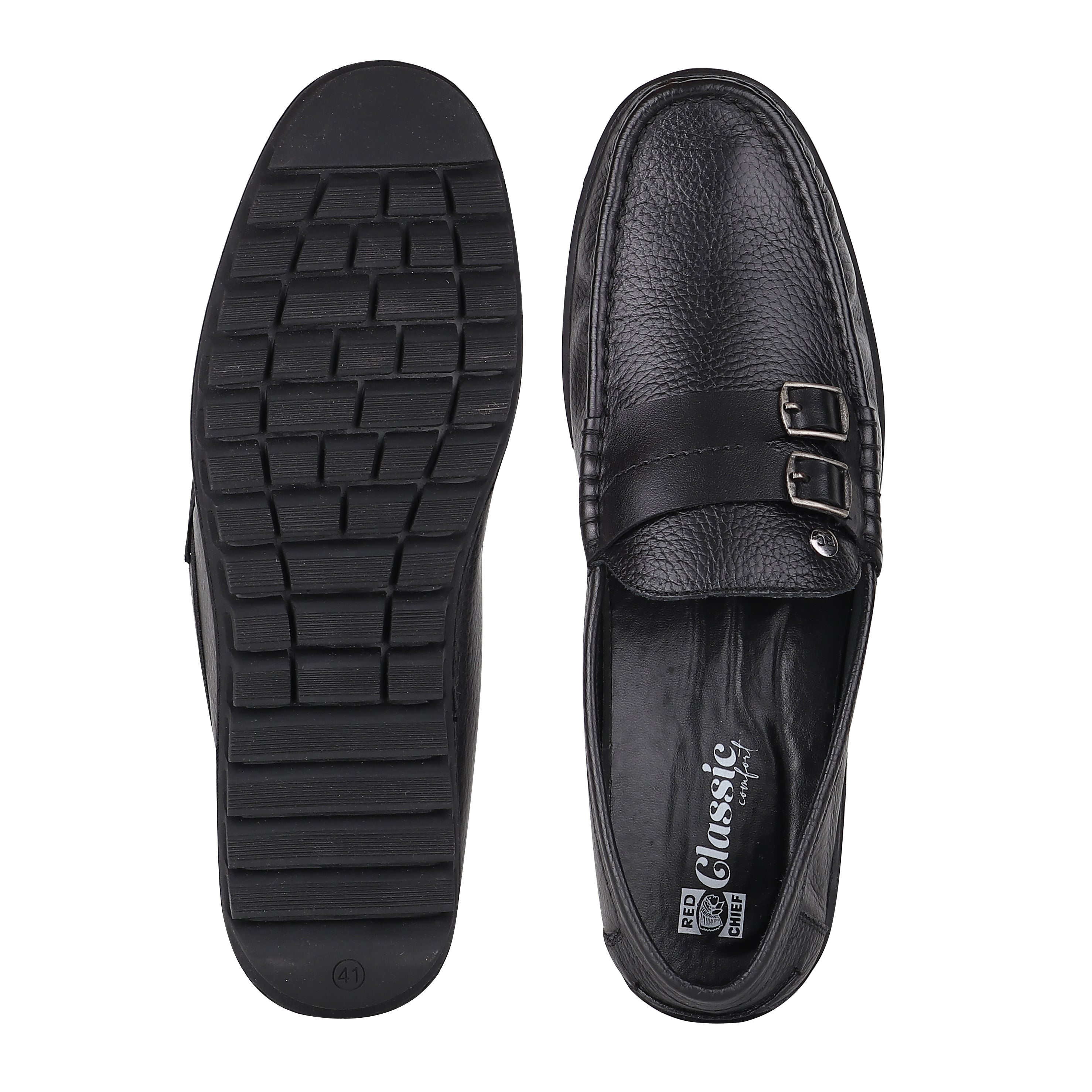 Effortless style meets comfort in these black slip-on Red Chief shoes, featuring a textured finish and refined buckles straps on the top. The slip-resistant rubber sole provides a firm grip on the ground, while the easy slip-on design is perfect for quick, on-the-go wear. Ideal for both office and evening occasions, these shoes look great with any formal or smart-casual outfits.