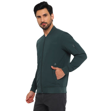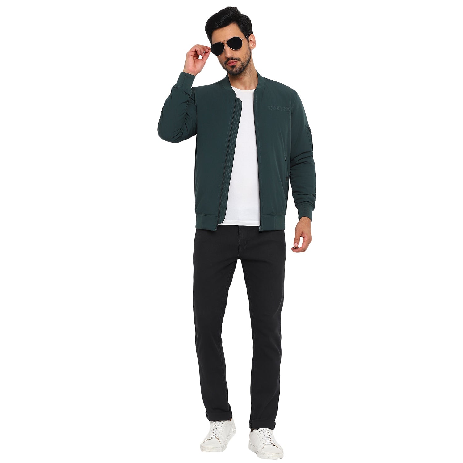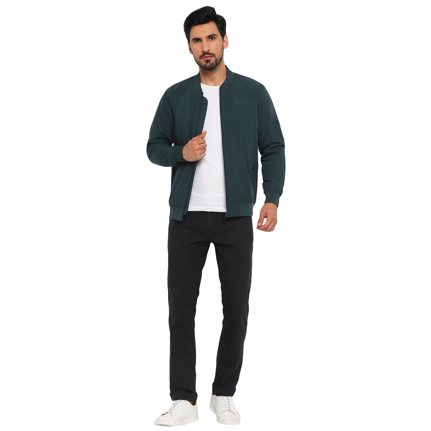 A must-have classic, this Red Chief bomber jacket has a clean green canvas with a ribbed collar and DTM embroidered branding on the chest for an elite touch. It further features a front zipper closure and multiple pockets assuring an easy fit and good functionality. Wear this regular-fit jacket with any jeans or chinos for a cool casual outfit.