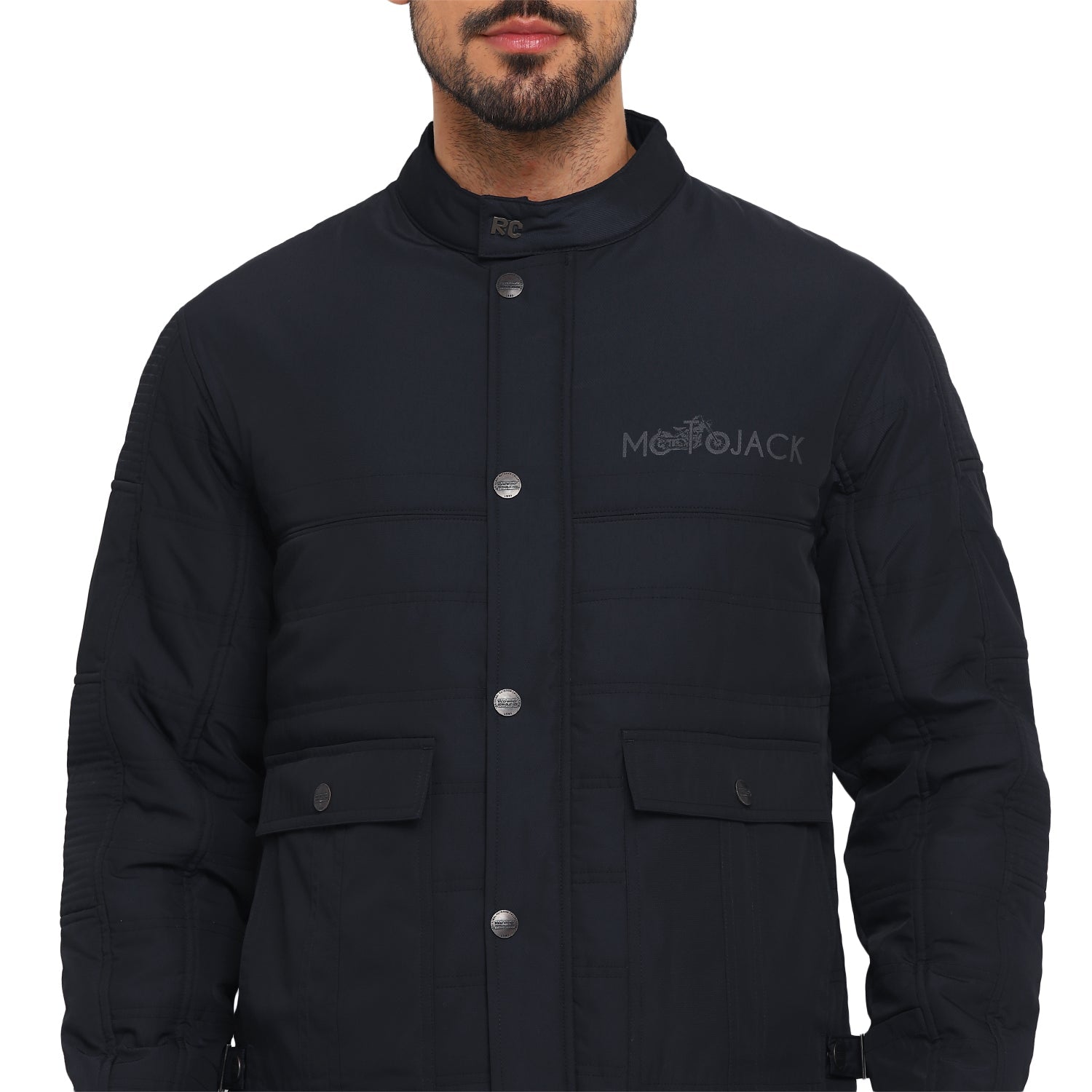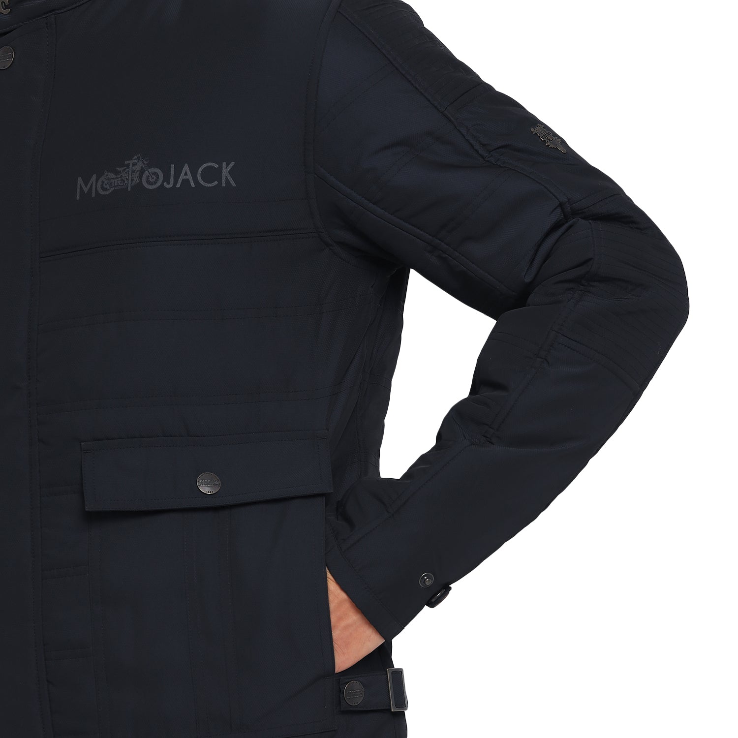 For a tough yet cool look, you can count on this navy casual biker jacket by Red Chief. Having two-tone fabric with dobby weave, this long-sleeved jacket assures classy vibes, while its multiple pockets offer enough space to let you go hands-free. The motojack print on the chest and metal branding on the sleeve further elevates the look of this jacket. Wear it best with dark-wash jeans and high-ankle boots.