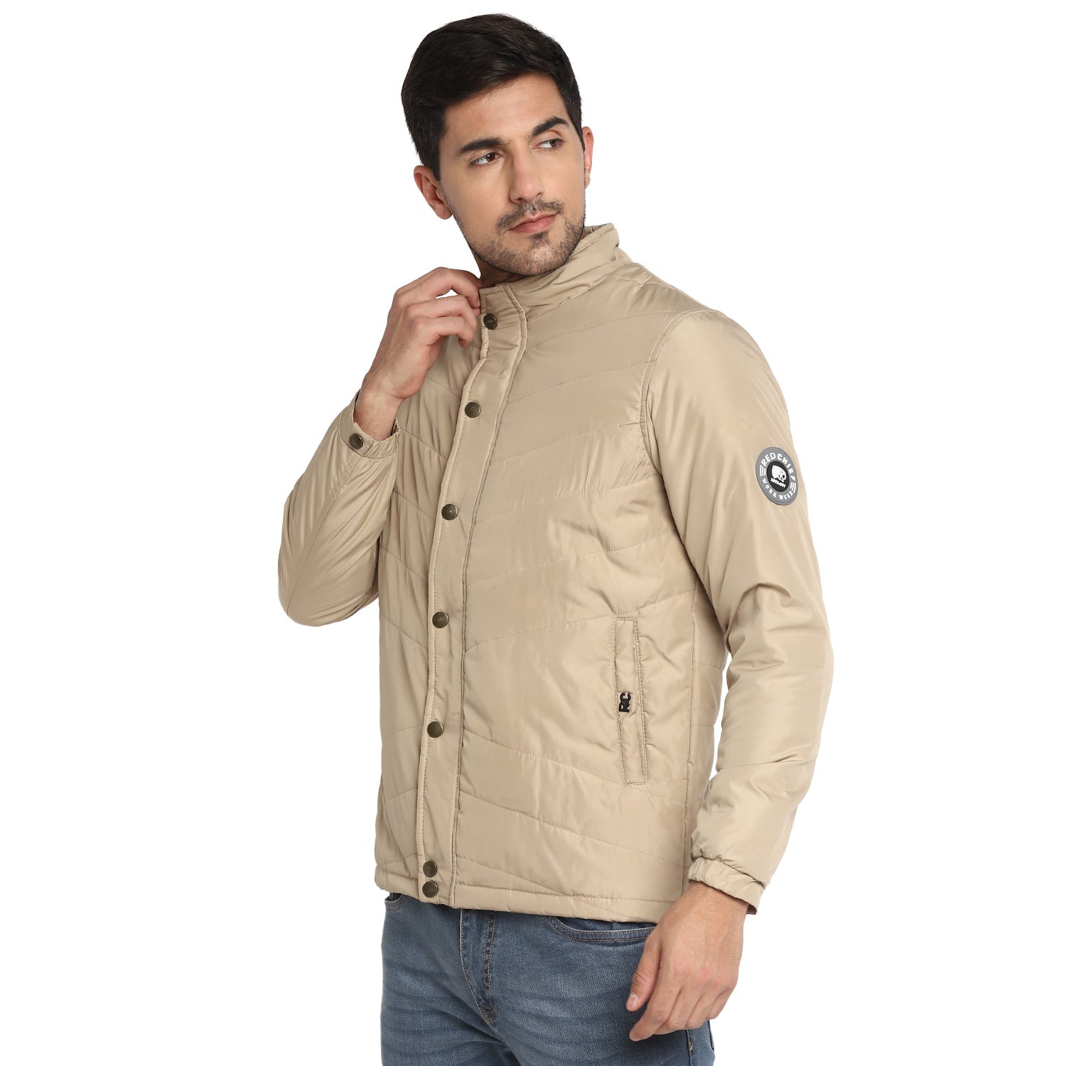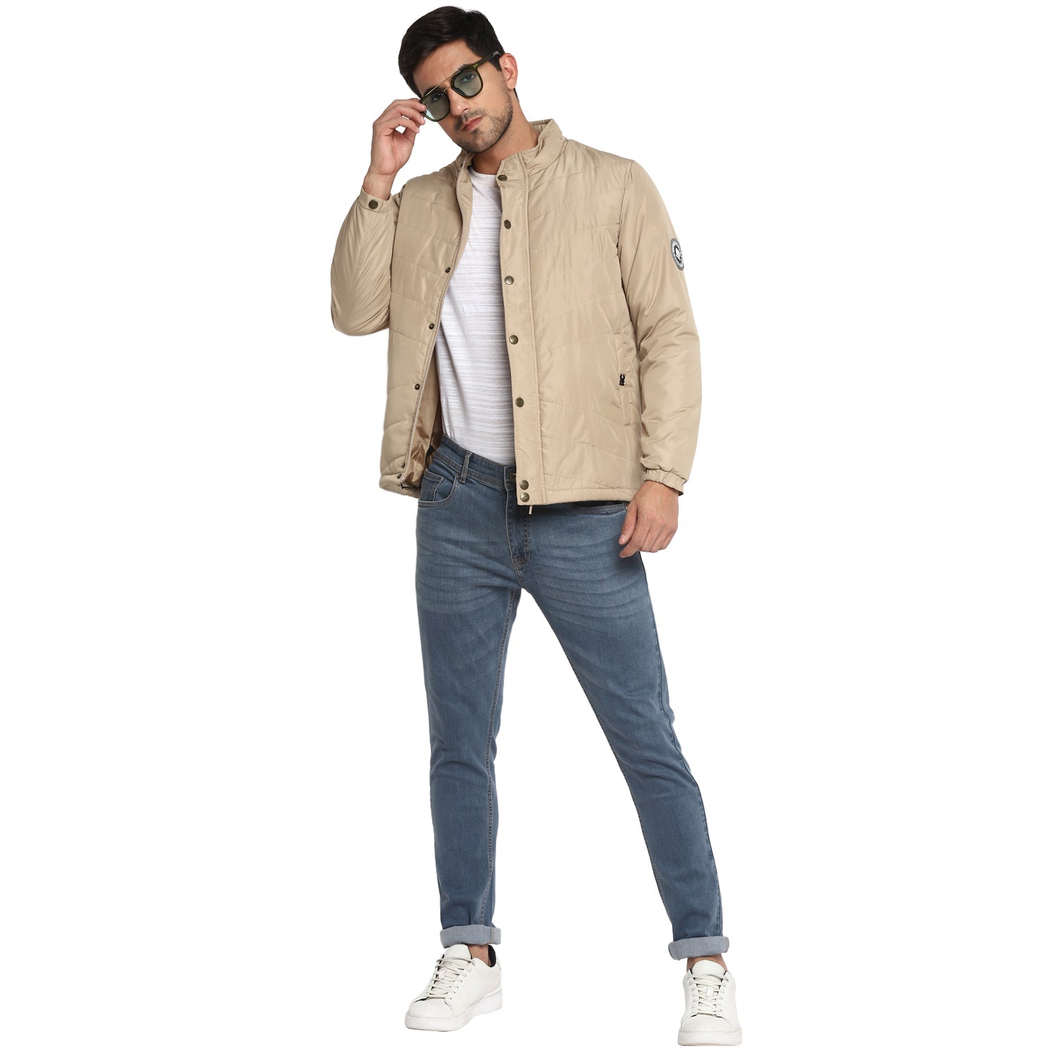 A great layering option that also packs in some warmth this Red Chief puffer jacket in beige instantly elevates your style. Done with an all-over diagonal quilted pattern and silicon branding on the left sleeve this jacket lends a confident and stylish look. Further it is crafted in premium-quality material for excellent warmth and comfort. It also features a funnel collar with branded snap button and front-zipper closure with snap buttons. This regular-fit jacket looks best with blue denims and combat boots.
