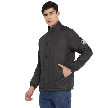 A great layering option that also packs in some warmth this Red Chief puffer jacket in dark grey instantly elevates your style. Done with an all-over diagonal quilted pattern and silicon branding on the left sleeve this jacket lends a confident and stylish look. Further it is crafted in premium-quality material for excellent warmth and comfort. It also features a funnel collar with branded snap button and front-zipper closure with snap buttons. This regular-fit jacket looks best with blue denims and combat boots.