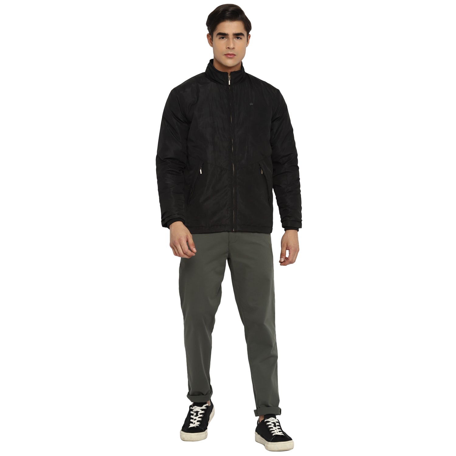 Gear up for the coming season with this black casual puffer jacket from the house Red Chief. This jacket is a perfect combination of fashion and functionality thanks to its all-over camouflage print with a front zipper and multiple pockets. The metal face branding on the chest further adds an elite touch to this full-sleeved super-warm and comfortable jacket. Wear it with mid-wash denims or layer it over a jumper this jacket won?t fail you.