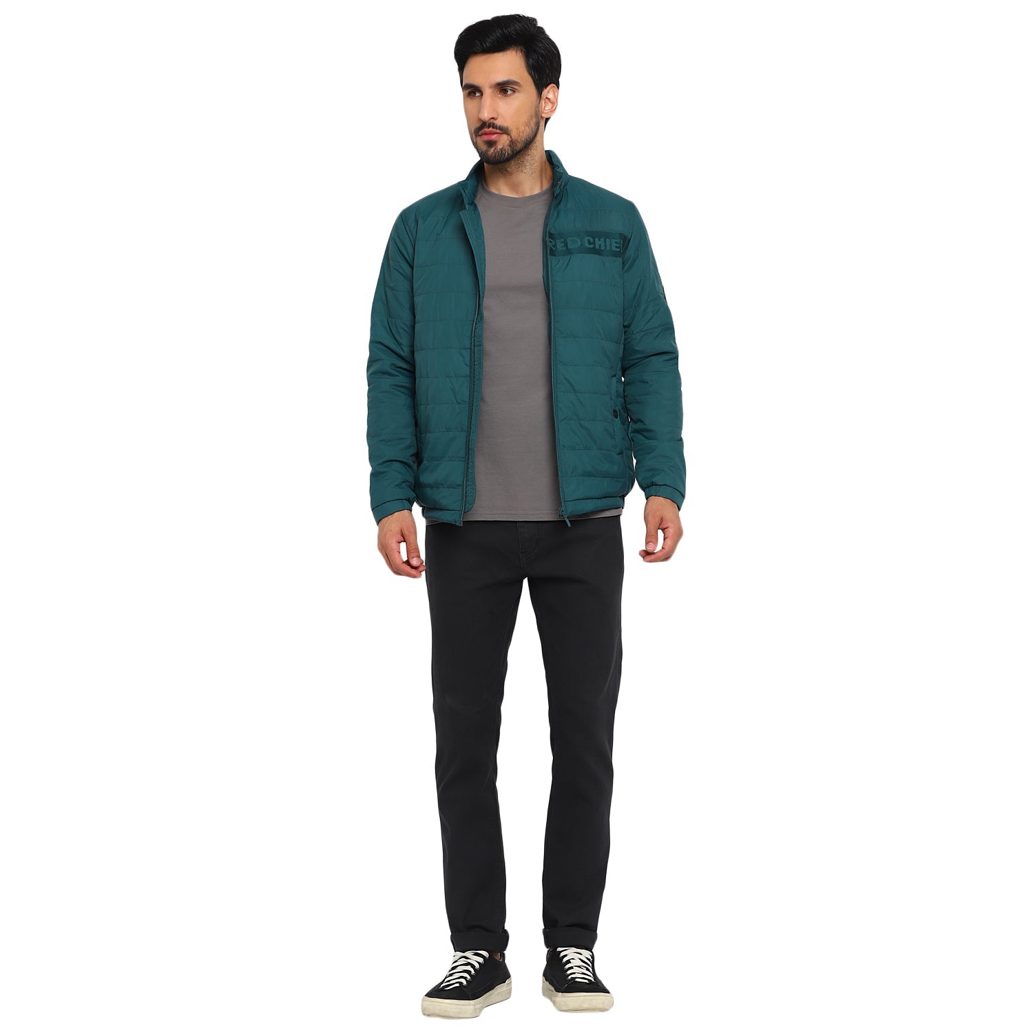 Crafted in polyester teflon fabric, this plain weave sea-green puffy jacket assures a warm and comfortable fit. This Red Chief jacket features DTM embroidery branding at the chest and silicon branding on the sleeve for an elite touch. Having multiple pockets, this functional jacket looks wonderful with any chinos and jeans.