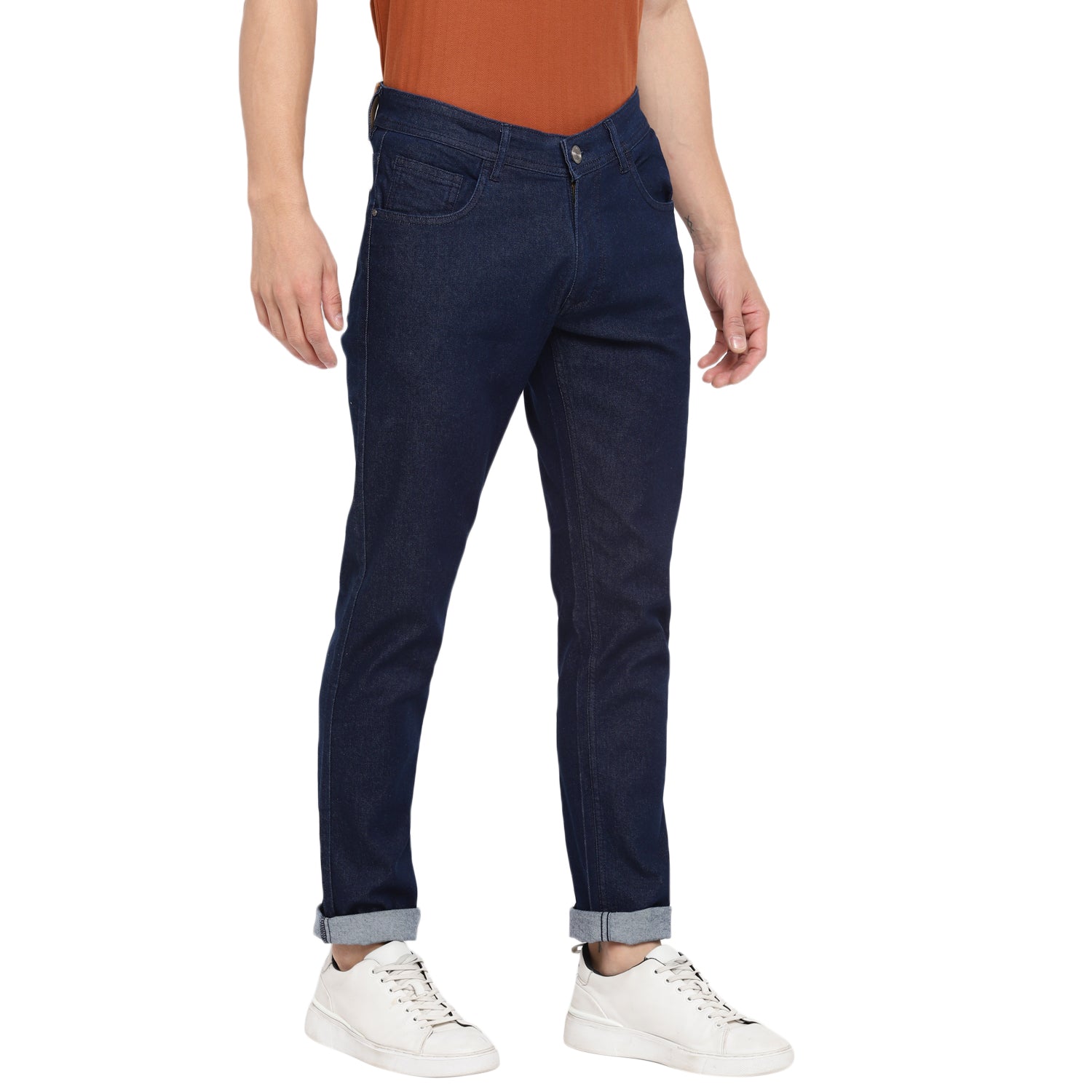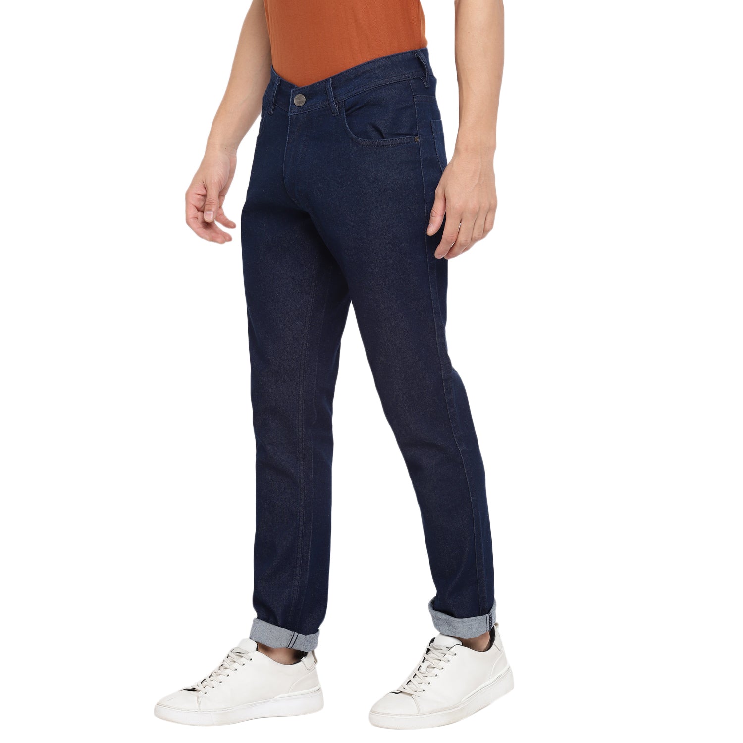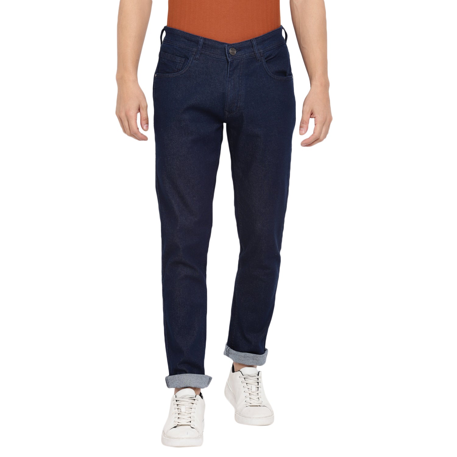 A modern wardrobe must-have, these navy narrow-fit Red Chief jeans are an effortless pick for an impressive casual outfit. These soft-to-skin and stretchable enxyme wash jeans come with 5 pockets, anti-brass metal branding rivets on the front pockets and DTM colour stitching all over. Comfortable to wear from morning to evening, these jeans look best with a printed shirt or bomber jacket.