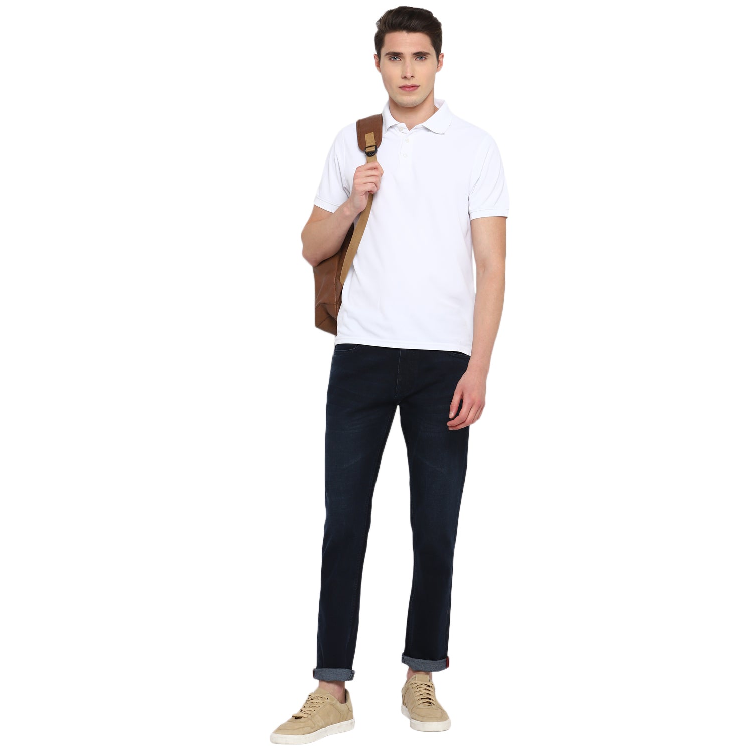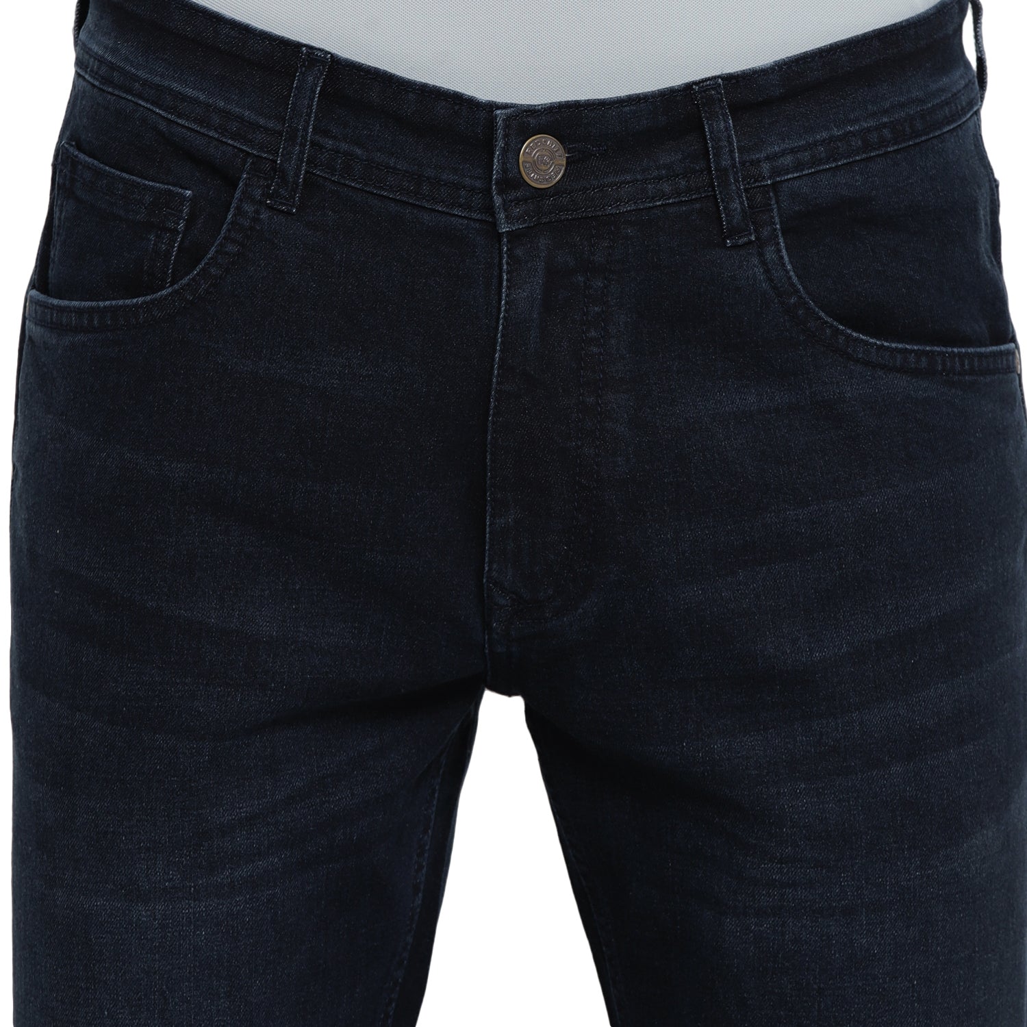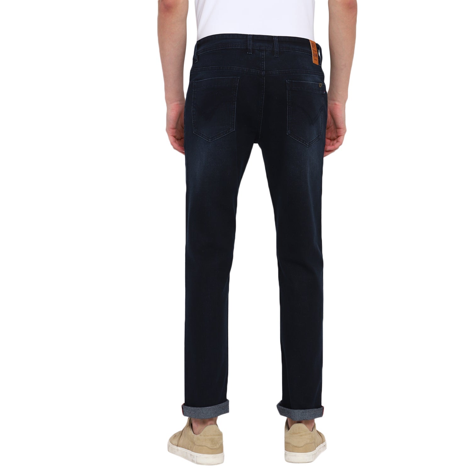 A classic narrow-fit pair in indigo colour for your everyday style. These Red Chief jeans have enzyme wash with hand scrapping and whiskers on the thighs, and anti-brass metal branded rivets on the pockets. Further, these twill-weave jeans are cut and stitched in equal parts soft and stretchable material to provide excellent wearing comfort. Team these with a plain T-shirt or a chequered shirt to look your impressive best.