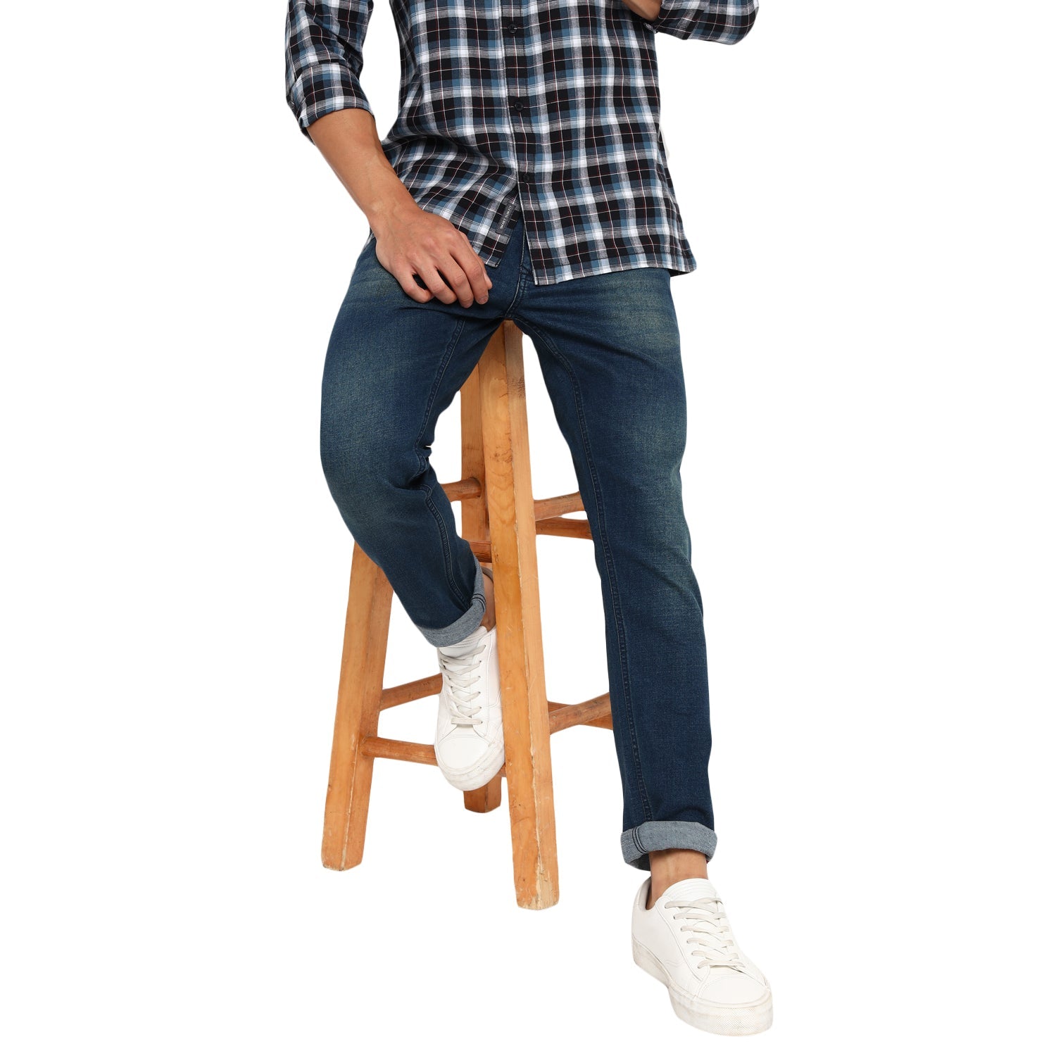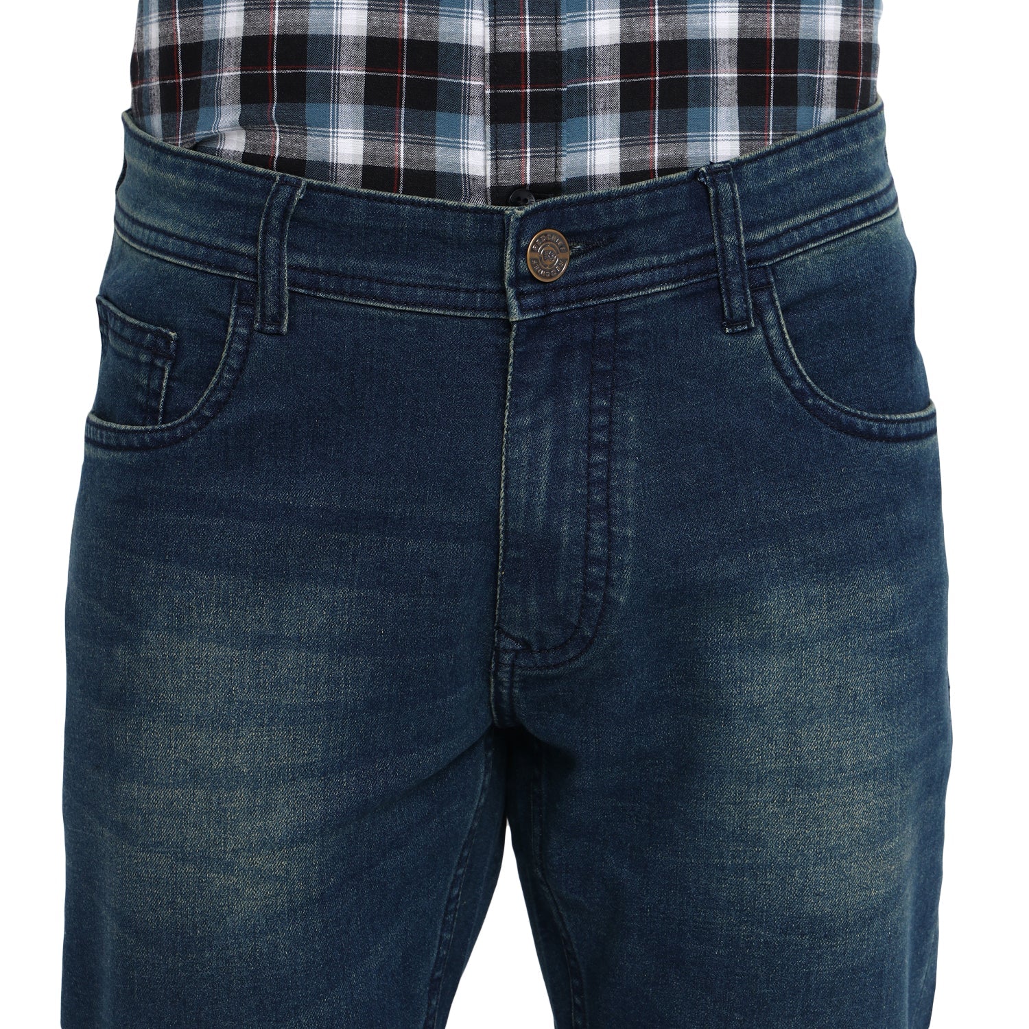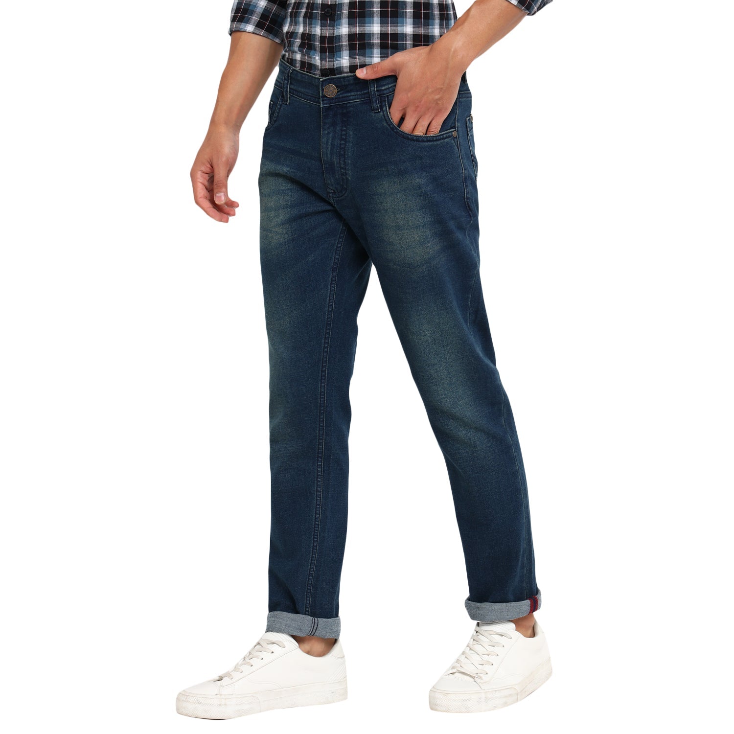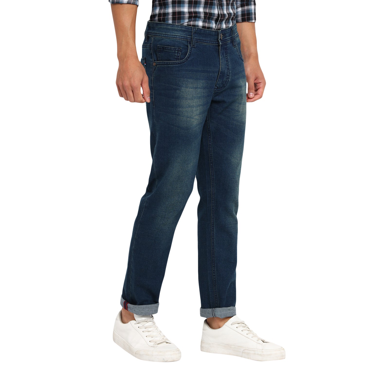 Urban men will surely fall in love with this pair of jeans by Red Chief. Fashioned in a narrow fit, these jeans are decorated with an enzyme wash effect, hand scraping, and whiskers for added glamour. Featuring a zip fly, button closure, and 5-pocket styling, these jeans will stretch well to your body movements. These jeans also include a hanging loop inside the center back waistband. Team these jeans with trendy polos, T-shirts, and casual shirts along with sneakers.