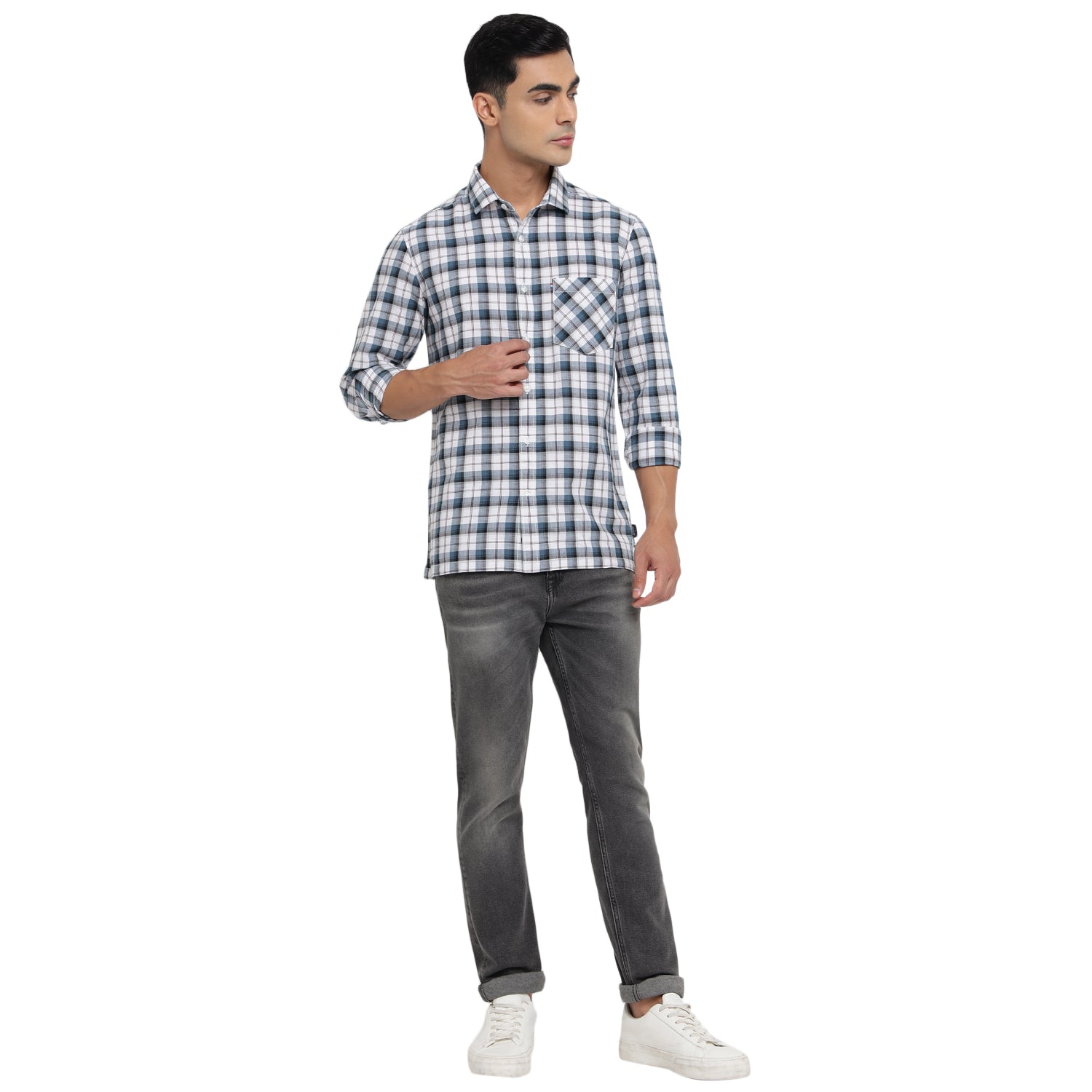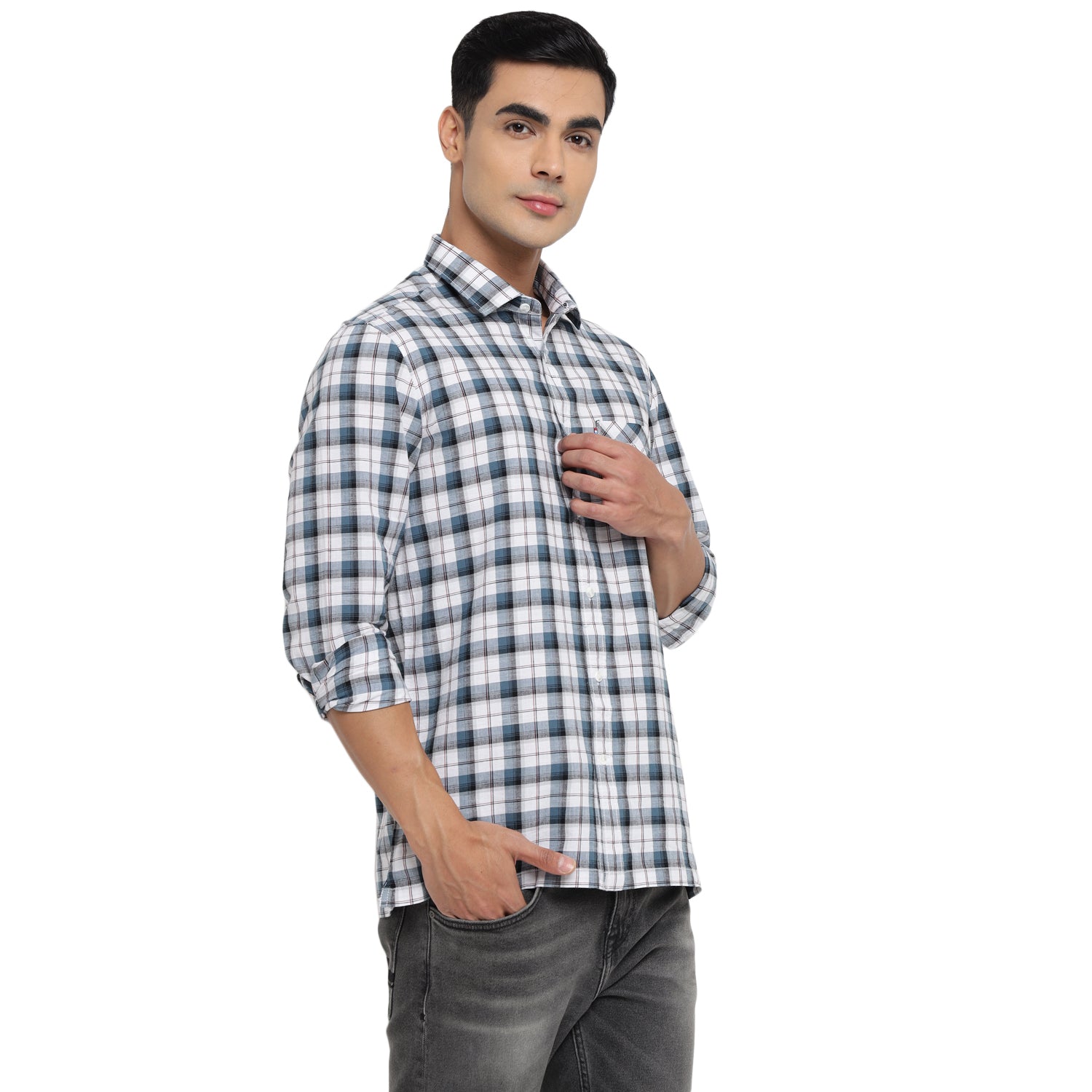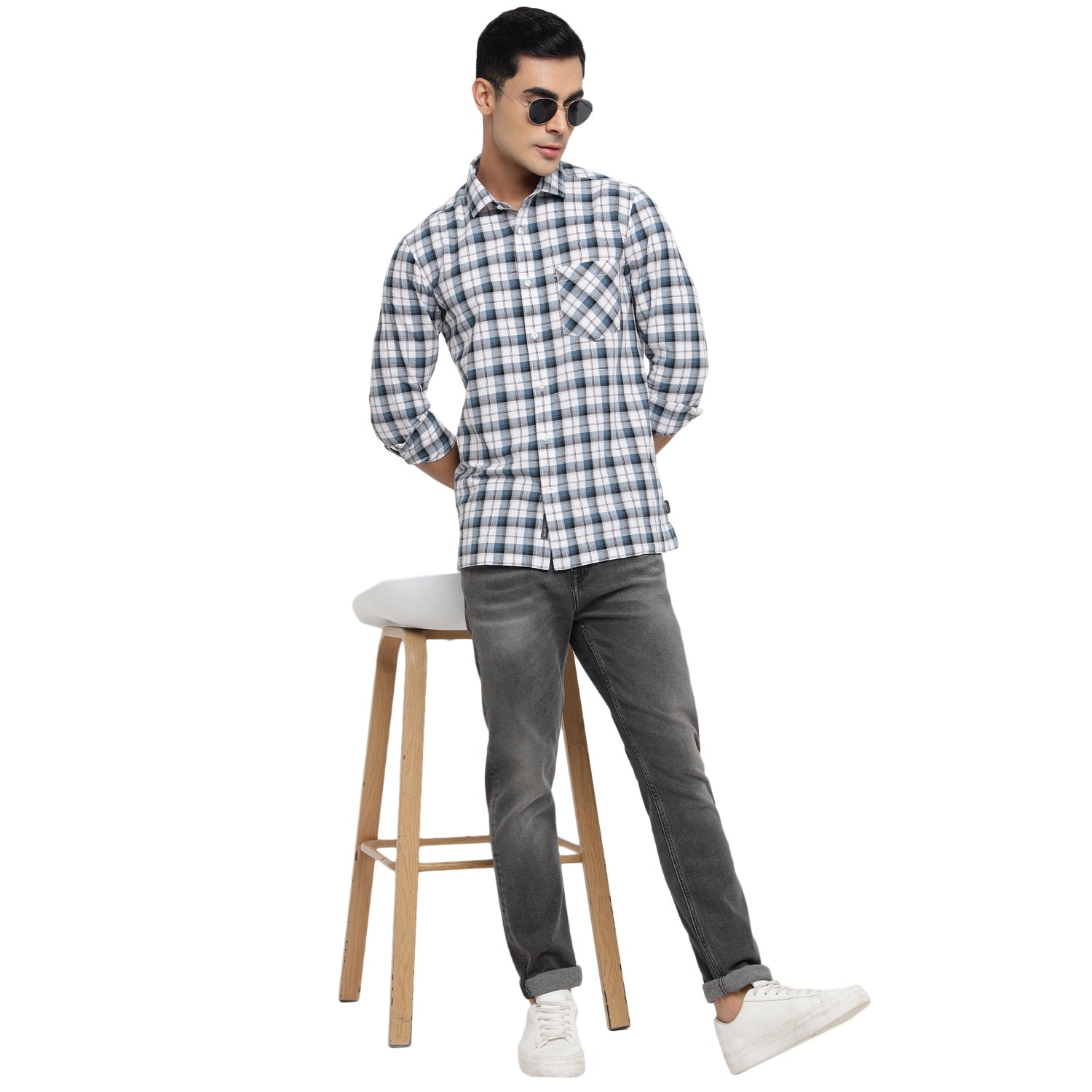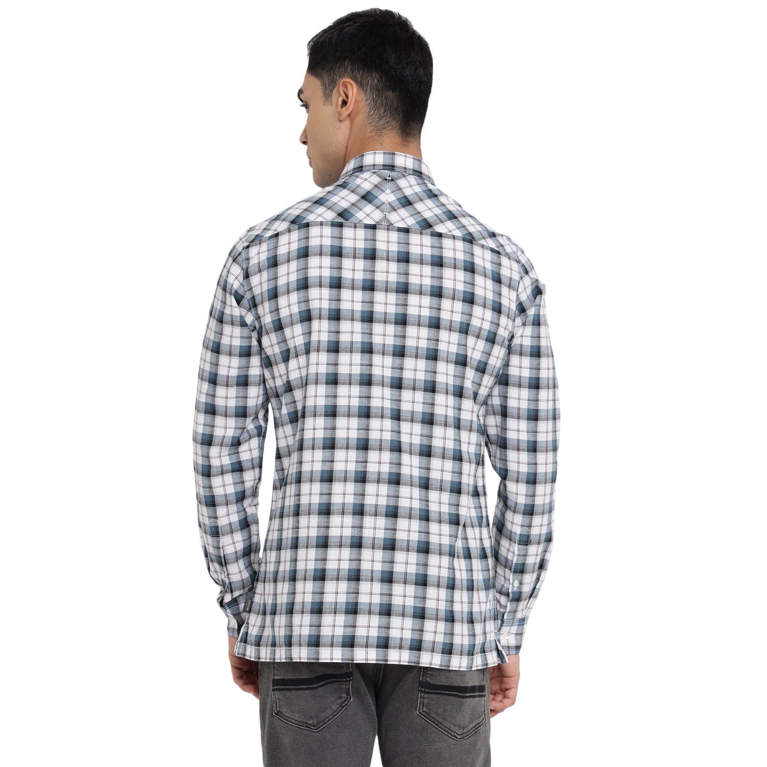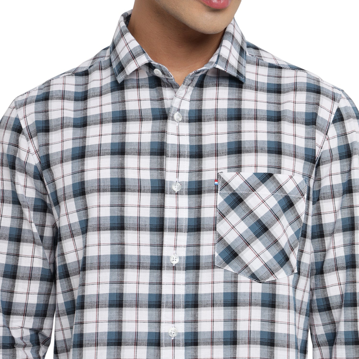 Elegance meets simplicity in this casual shirt by Red Chief. Exhibiting a refiled colour scheme, it is detailed with a striking check pattern. Featuring a regular spread collar, box placket and square cuffs, it is finished with a pocket on the left chest. Made of soft fabric, it offers ultimate wearing comfort. Team this relaxed shirt with denims or trousers and complete the look with casual sneakers.