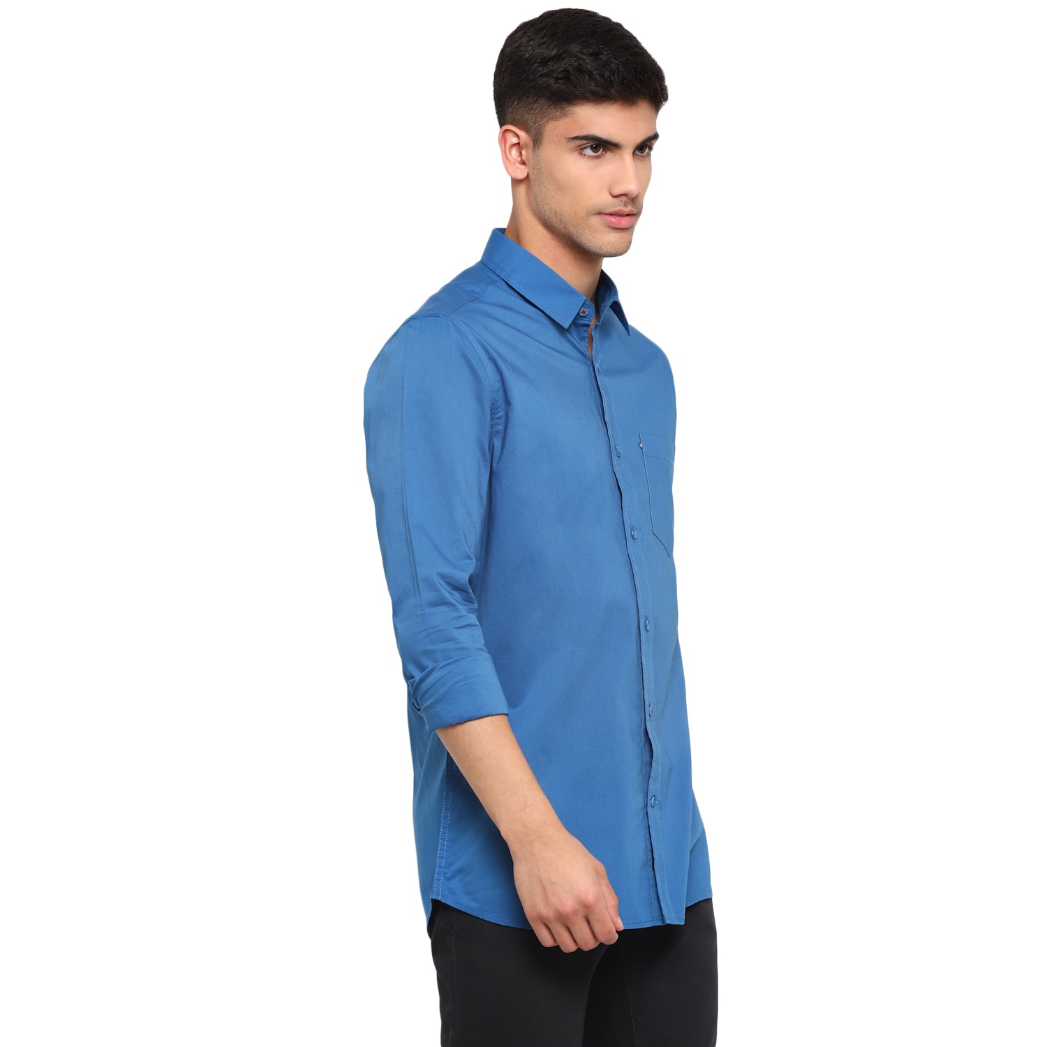 Always sophisticated and elegant this clean crisp blue shirt by Red Chief adds an edge to your casual style. A regular collar point chest pocket and 5MM Chinese hemline further accentuated this slim-fit shirt and makes it a must-have. This full-sleeved shirt also offers a comfortable fit and goes well with everything from tailored trousers chinos to faded jeans.