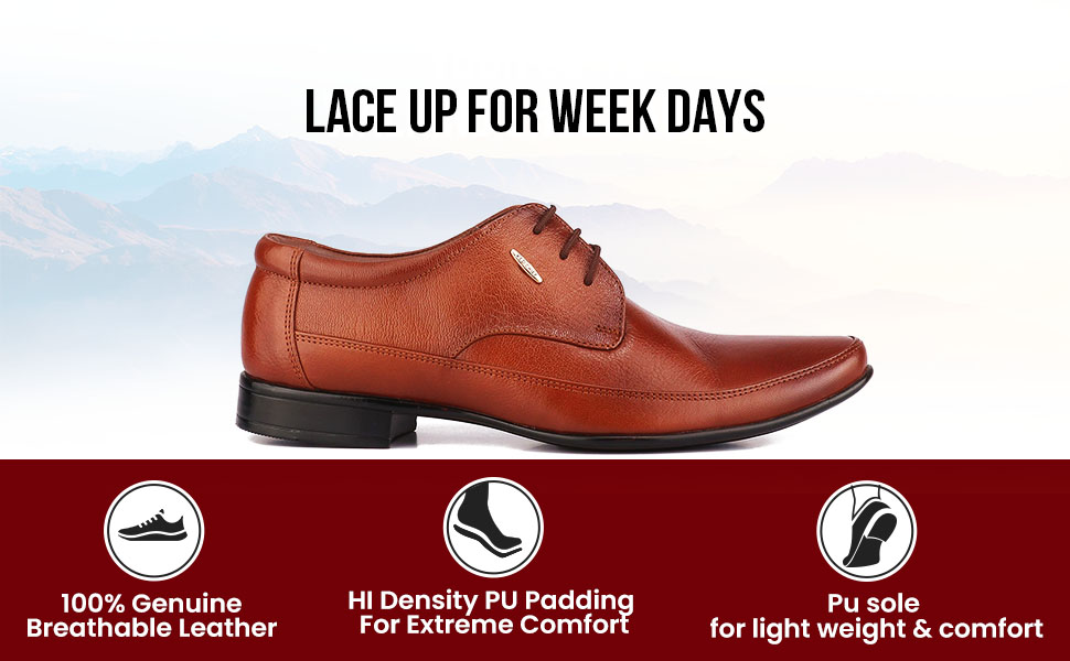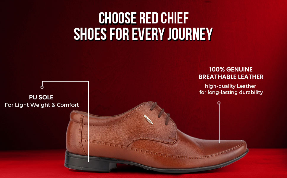 The tan lace-up derbies by Red Chief are designed to cater to your style and comfort needs. It is made from the best quality leather upper and the PU sole making the pair durable flexible and comfortable for long hour wear. Match them with your formal clothes for best fashion impact.