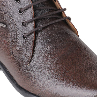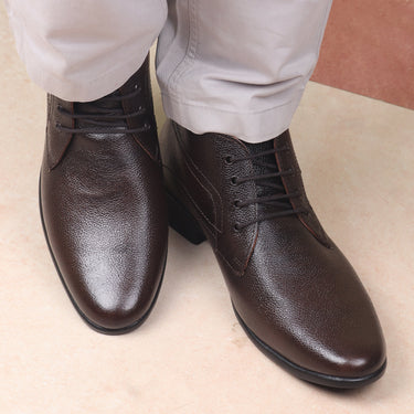 Look suave and smart by wearing these derby brown formal shoes for men from Red Chief. Compact and stitched for a handsome touch of style these shoes have a genuine leather upper and PU sole that keeps your feet relaxed. Our traditional craftsmanship is fused with contemporary design for an unbeatable finish in these formal shoes.