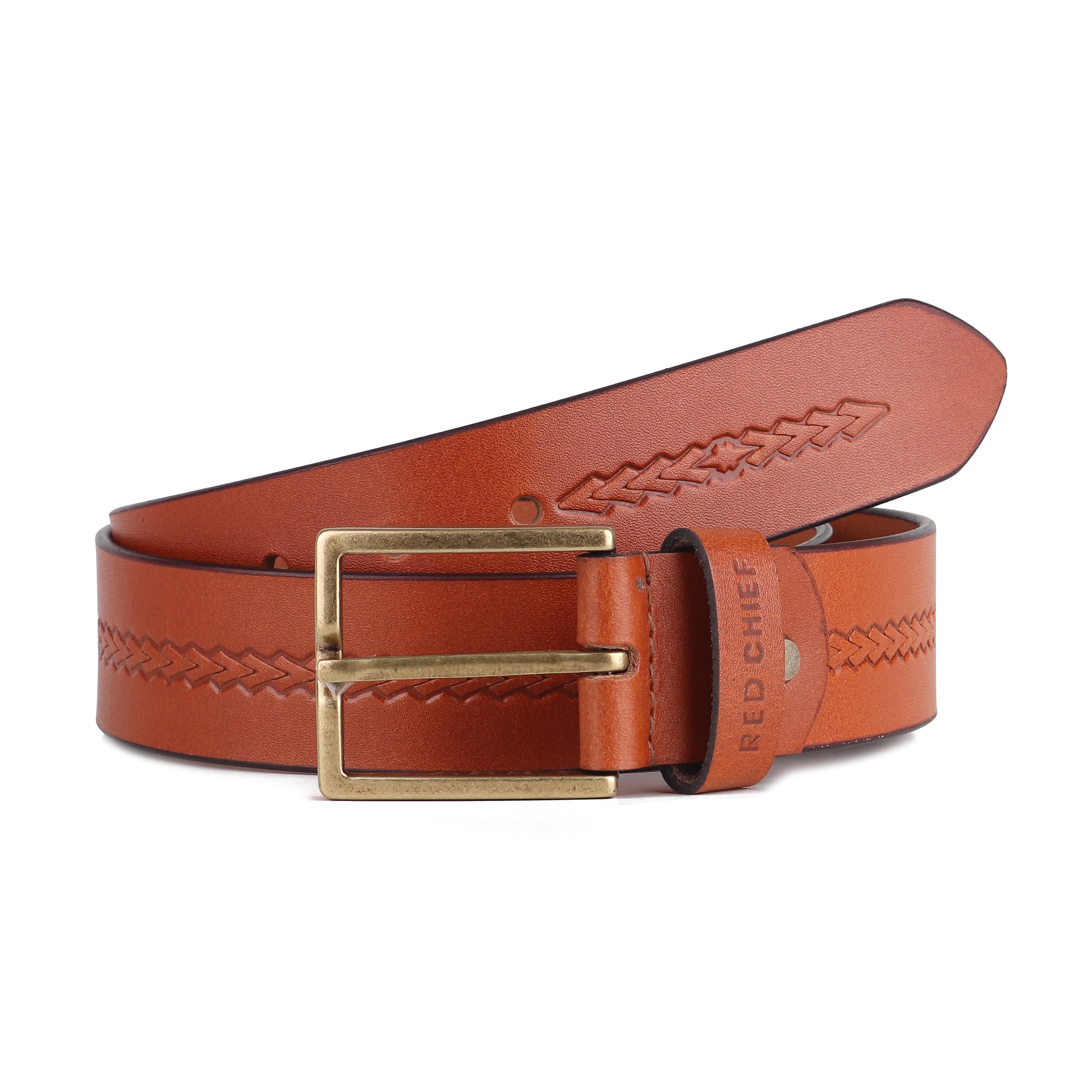 Radiating sophistication and assurance, this tan-colored casual belt from Red Chief epitomizes a perfect blend of superb craftsmanship and visual charm. Its captivating design on the strap, complemented by a sleek-finish buckle, is simply irresistible. This versatile accessory effortlessly enhances any casual ensemble, making it a standout piece in your wardrobe for any occasion.
