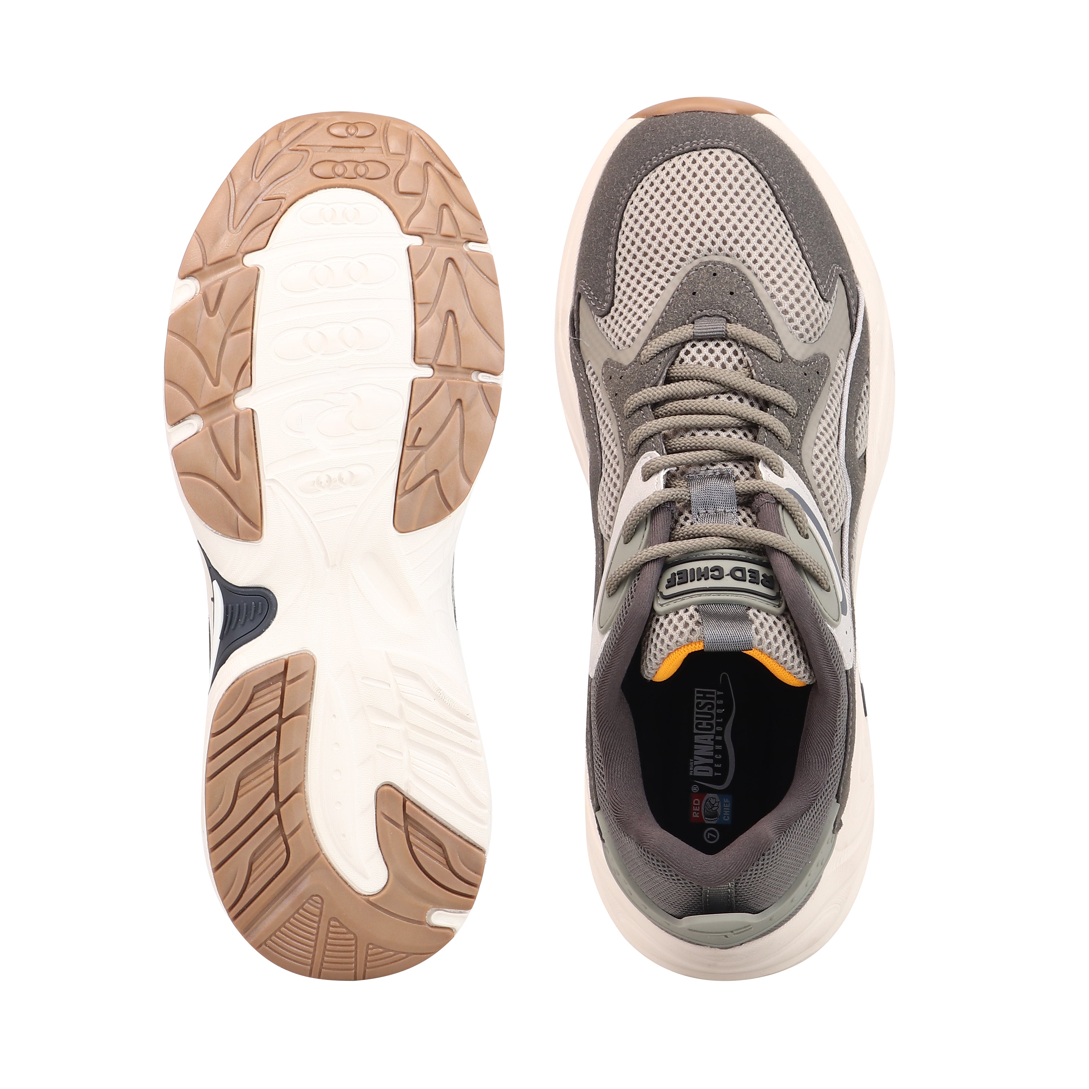 Red Chief presents a premium Beige Running Shoes designed for Men. Crafted with high?quality Breathable Engineering Warp Knitted Mesh, Raise Printing And Moulded Tpu Counter, it offers long?lasting durability and comfort. The low ankle design provides enhanced support, while the lace up closure ensures a secure fit. A perfect choice for those seeking everyday comfort with refined style.