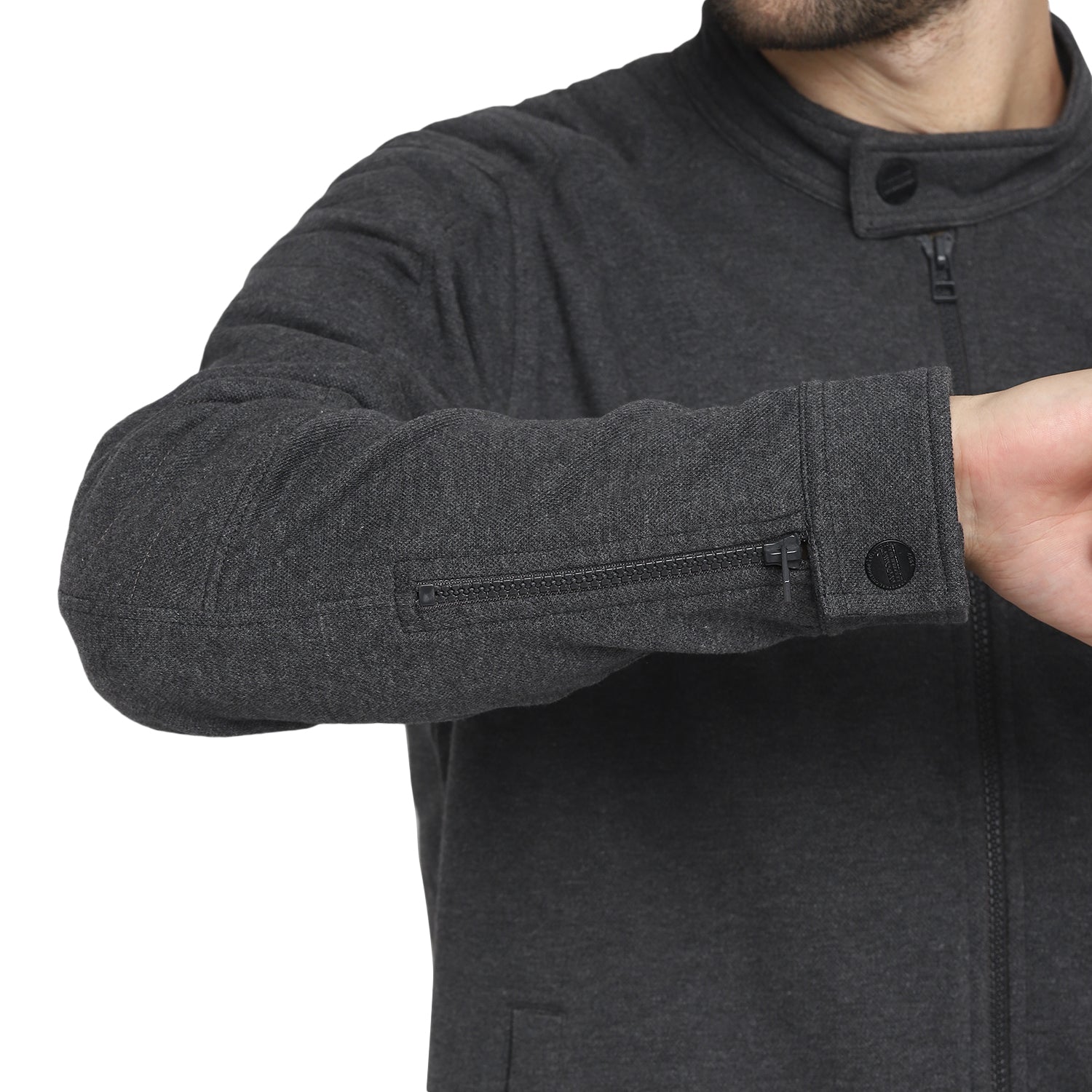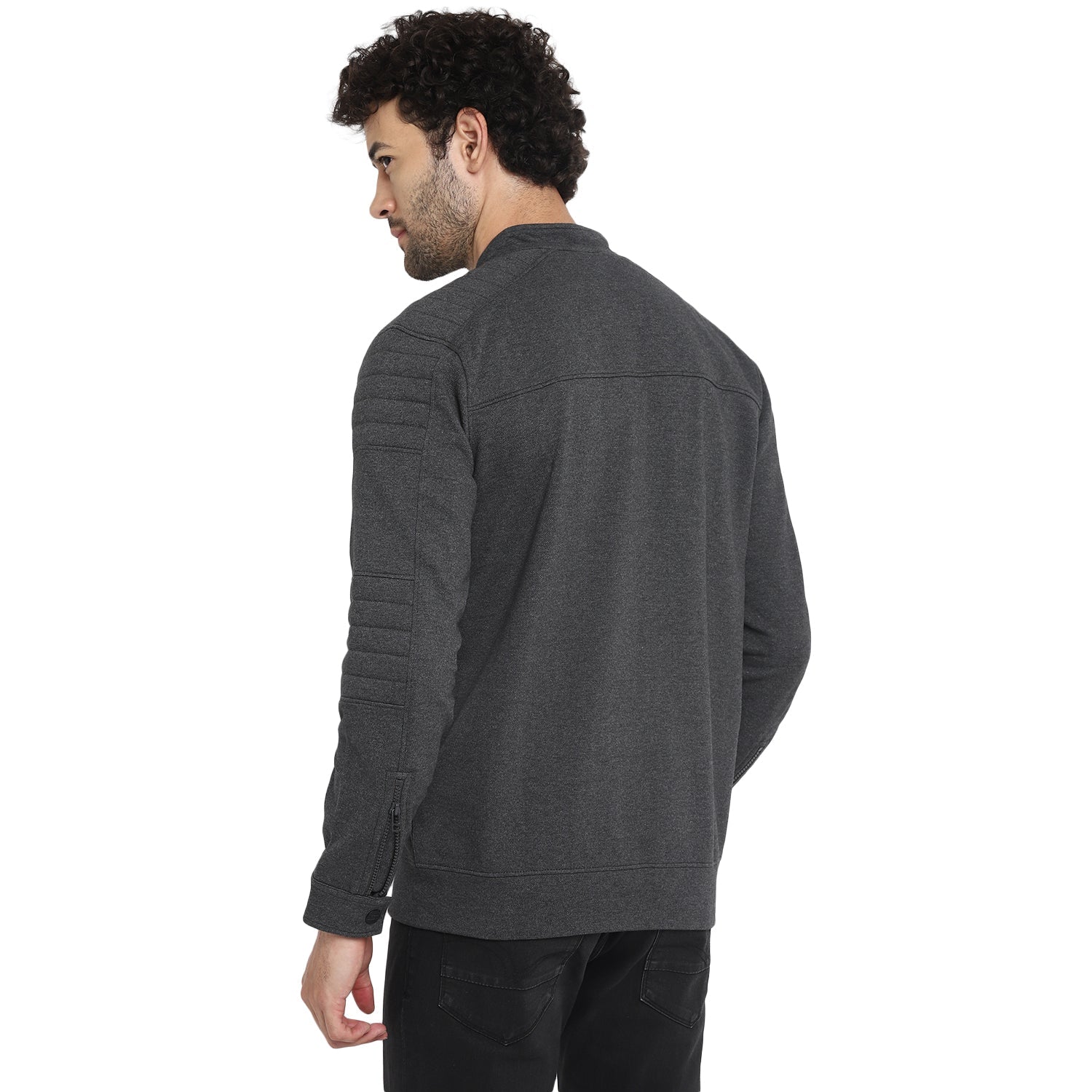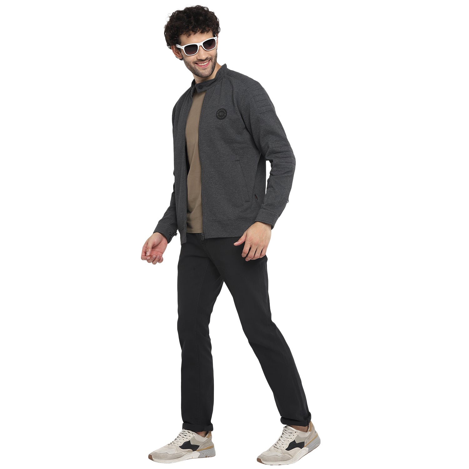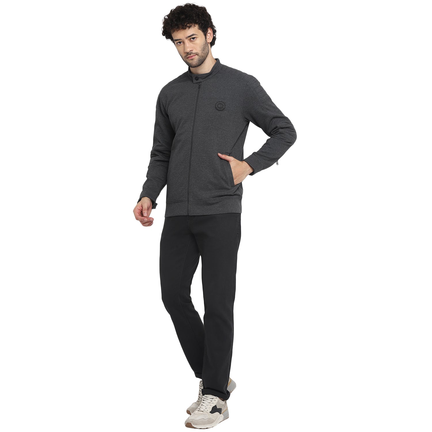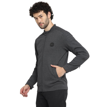 Add a dash of swag to your casual outfit with this biker-style grey front-zipper sweatshirt by Red Chief. Having grey melange pique fleece fabric, this long-sleeved sweatshirt is also super comfortable and cosy to wear for long hours. Finished with the silicon brand patch on the chest, this sweatshirt looks great with chinos and boots.