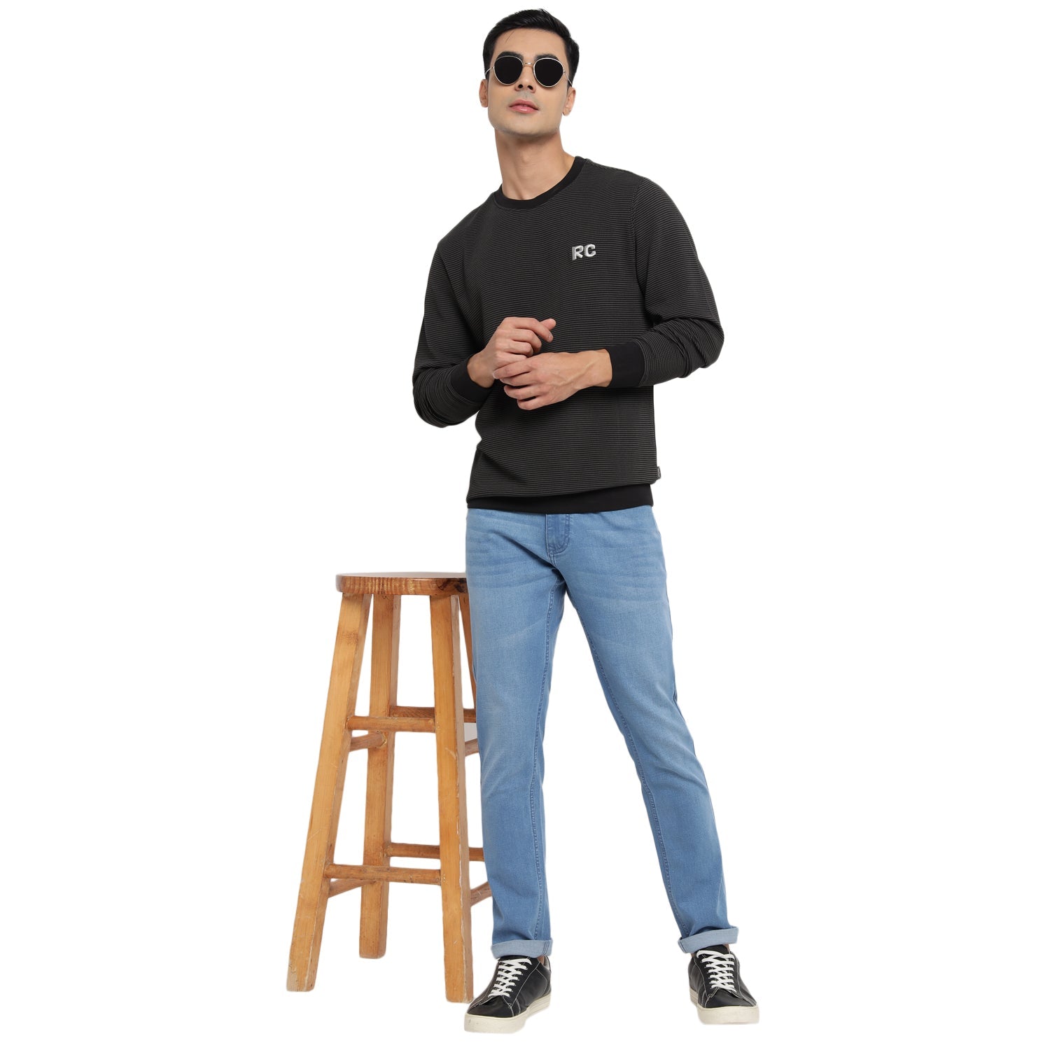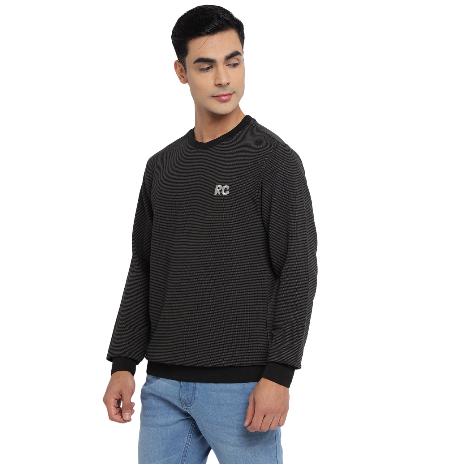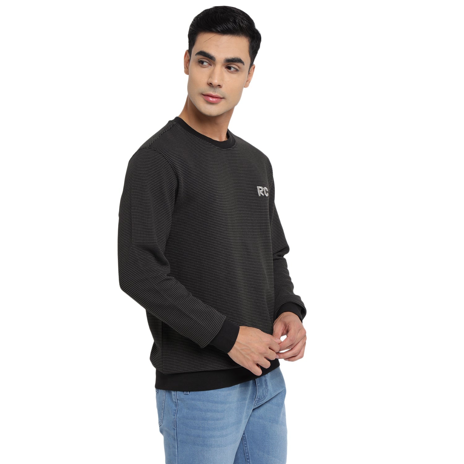 A staple piece for winter styling, this trendy sweatshirt by Red Chief is created for urban men. Featuring a ribbed round neckline, sleeve cuffs, and hem, it displays embroidered RC logo detail on the left chest for a modern touch. Made of soft fabric, it assures optimum warmth. This lightweight sweatshirt is perfect for casual and leisurewear. Team it with joggers or jeans along with sneakers.