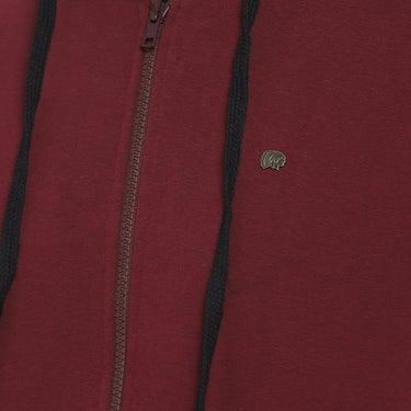 A perfect front-zipper sweatshirt in maroon that goes well with almost every style of shirt and T-shirt. This hooded sweatshirt has a solid pattern characterized by front kangaroo pockets and Red Chief rubber branding on the sleeves. Its knitted fabric assures excellent fit and wearing comfort.
