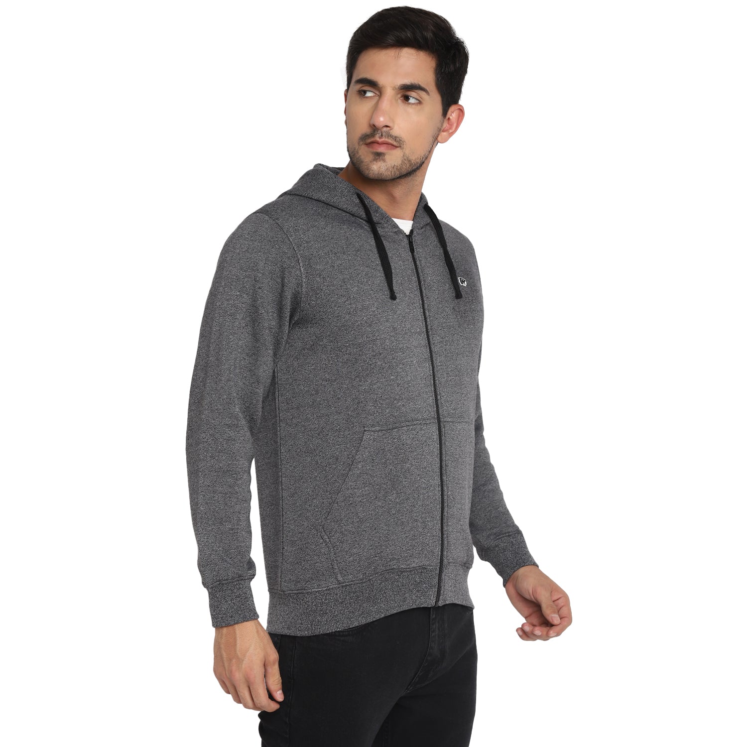 The classic silhouette and utility make this black and grey front-zipper Red Chief sweatshirt a must-have in your collection. This grindle fabric sweatshirt has a hooded neckline and kangaroo pockets on the front for high functionality. The woven branding label further adds an elite touch to this cosy and comfortable sweatshirt. This sweatshirt is also machine-washable assuring simple and easy maintenance. Team it with any separates.