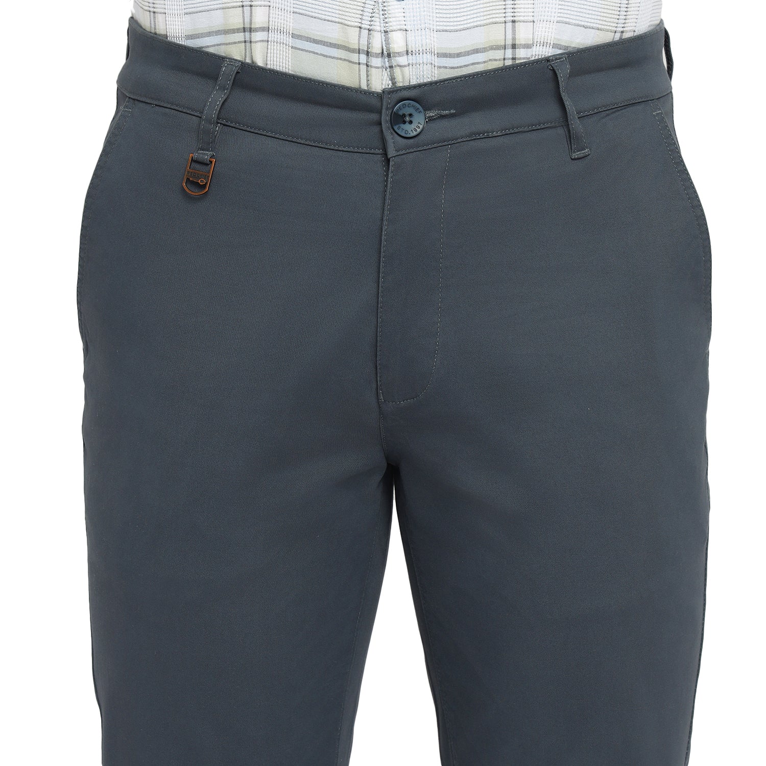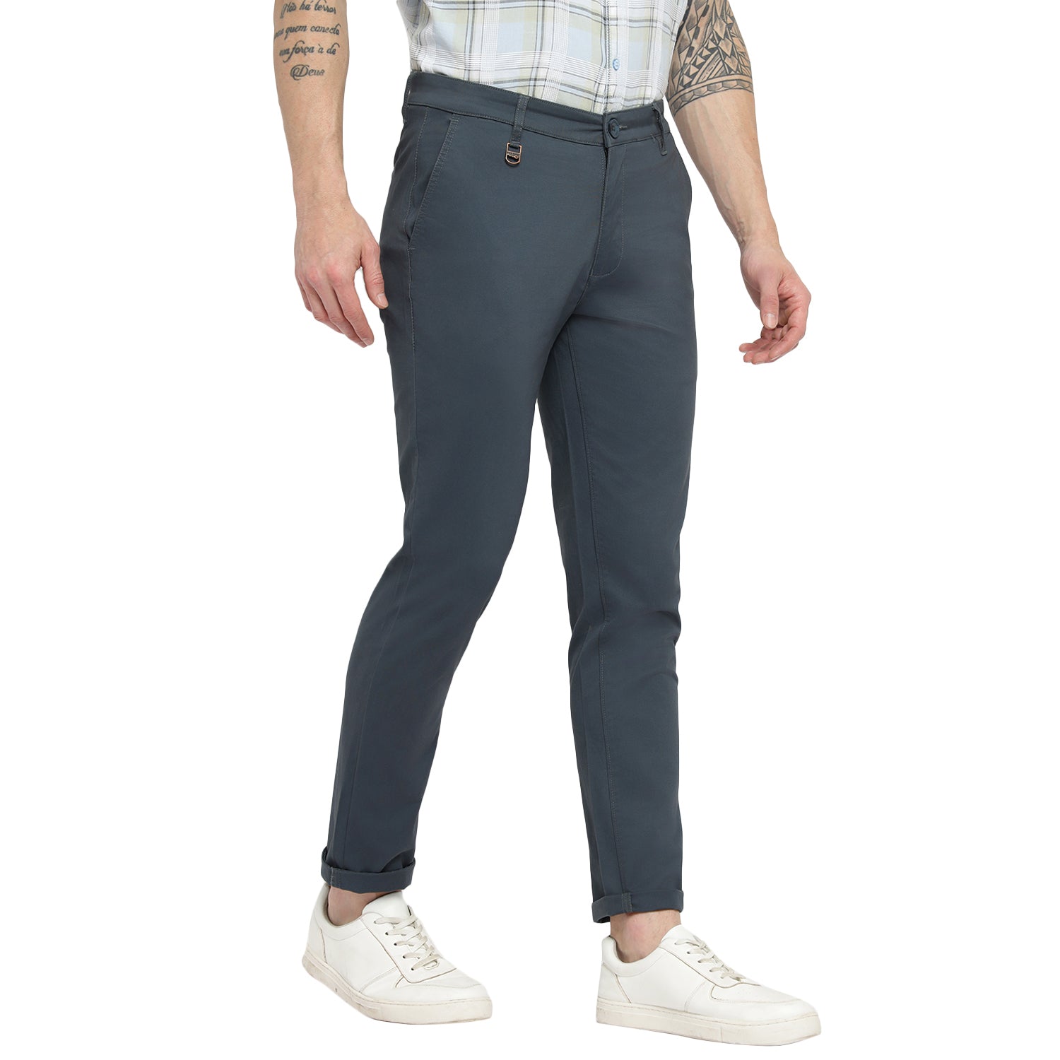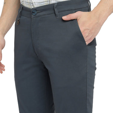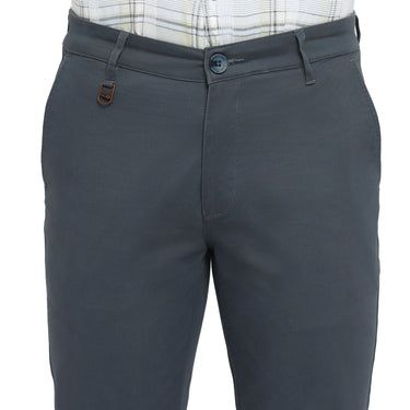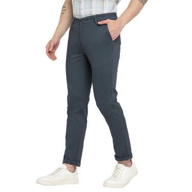 Perfect your smart casual look with these bluish gray narrow fit trousers combining contemporary lines with everyday versatility.