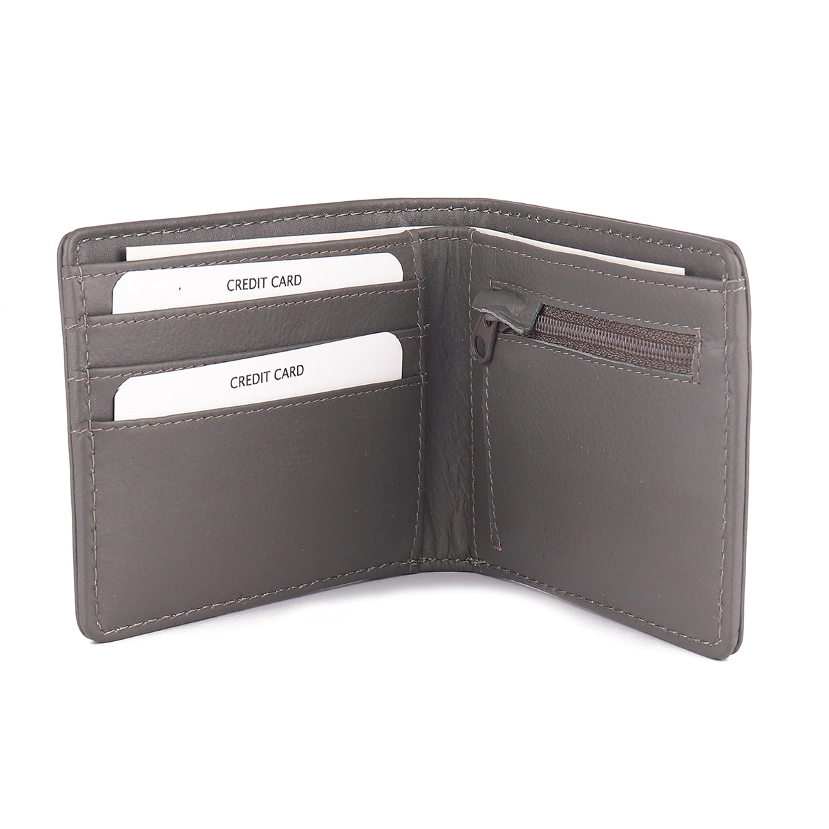 When fashion meets functionality it looks like this grey bi-fold wallet by Red Chief. This leather wallet opens up to a spacious interior allowing secure and easy storage of your cards and cash. The symmetric perforation on the exterior and branding on the front add stylish vibes to it.