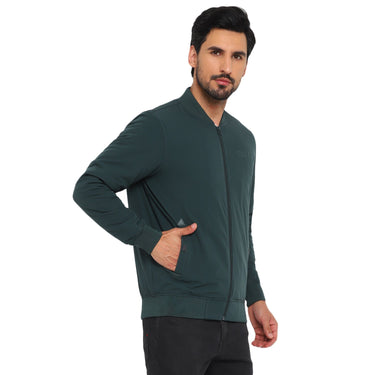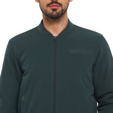 A must-have classic, this Red Chief bomber jacket has a clean green canvas with a ribbed collar and DTM embroidered branding on the chest for an elite touch. It further features a front zipper closure and multiple pockets assuring an easy fit and good functionality. Wear this regular-fit jacket with any jeans or chinos for a cool casual outfit.