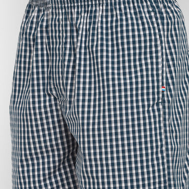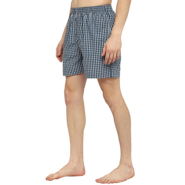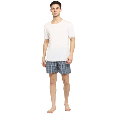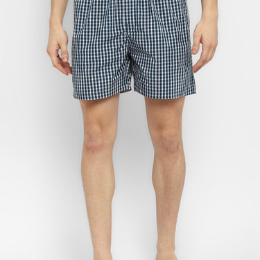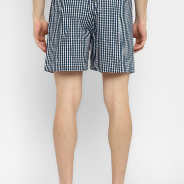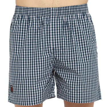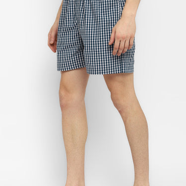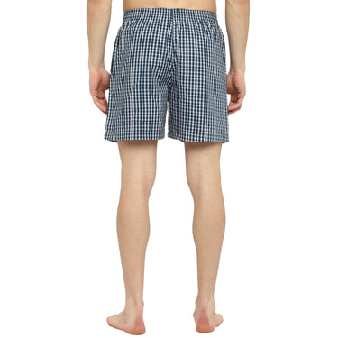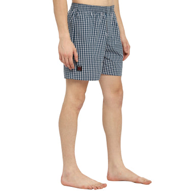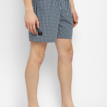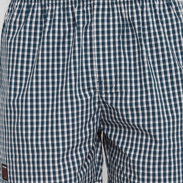 Level-up comfort without compromising on style in this white blue check boxer from the house of Red Chief. The knitted elastic waistband gives easy wearing. Further polystar button at the front fly color flag label at front pocket and woven brand name are striking features.