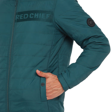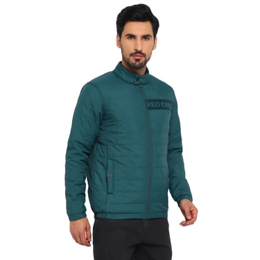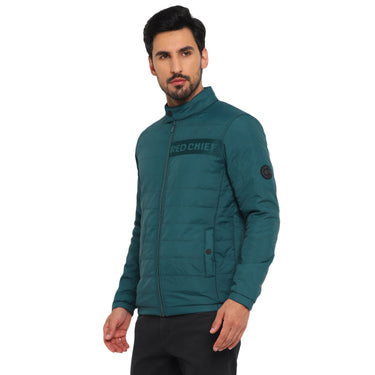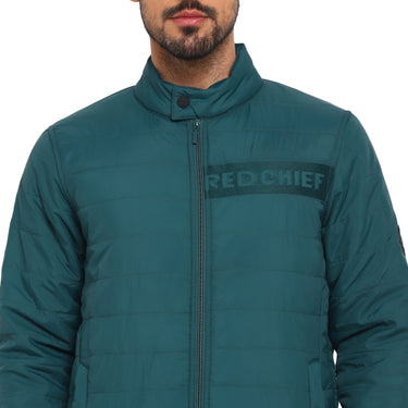 Crafted in polyester teflon fabric, this plain weave sea-green puffy jacket assures a warm and comfortable fit. This Red Chief jacket features DTM embroidery branding at the chest and silicon branding on the sleeve for an elite touch. Having multiple pockets, this functional jacket looks wonderful with any chinos and jeans.