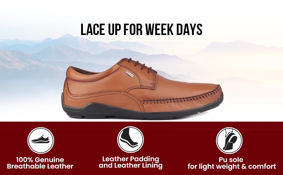 For that extra masculine touch to your formal outfit modern men can pick these tan formal derby shoes. These Red Chief shoes feature a stitch design on the front toe lending a clean look. Further these shoes have premium-quality upper lining and PU outsole assuring ultra-breathability odor-resistant and excellent traction on the ground for sheer foot comfort.