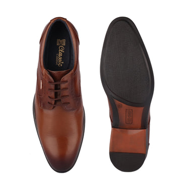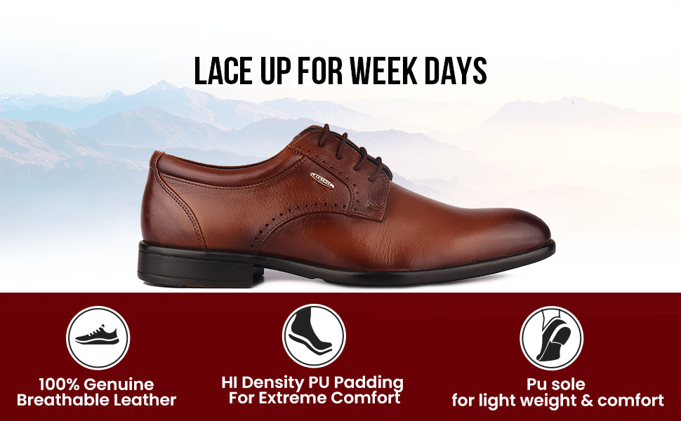 These tan derby shoes with an all-over smooth finish and side perforation design are a chic yet classy pair to drool over. These Red Chief formal shoes have a leather upper and lining ensuring ultra-breathability and high cushioning. These odour-resistant shoes further have PU sole for a slip-free walk on every terrain.