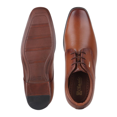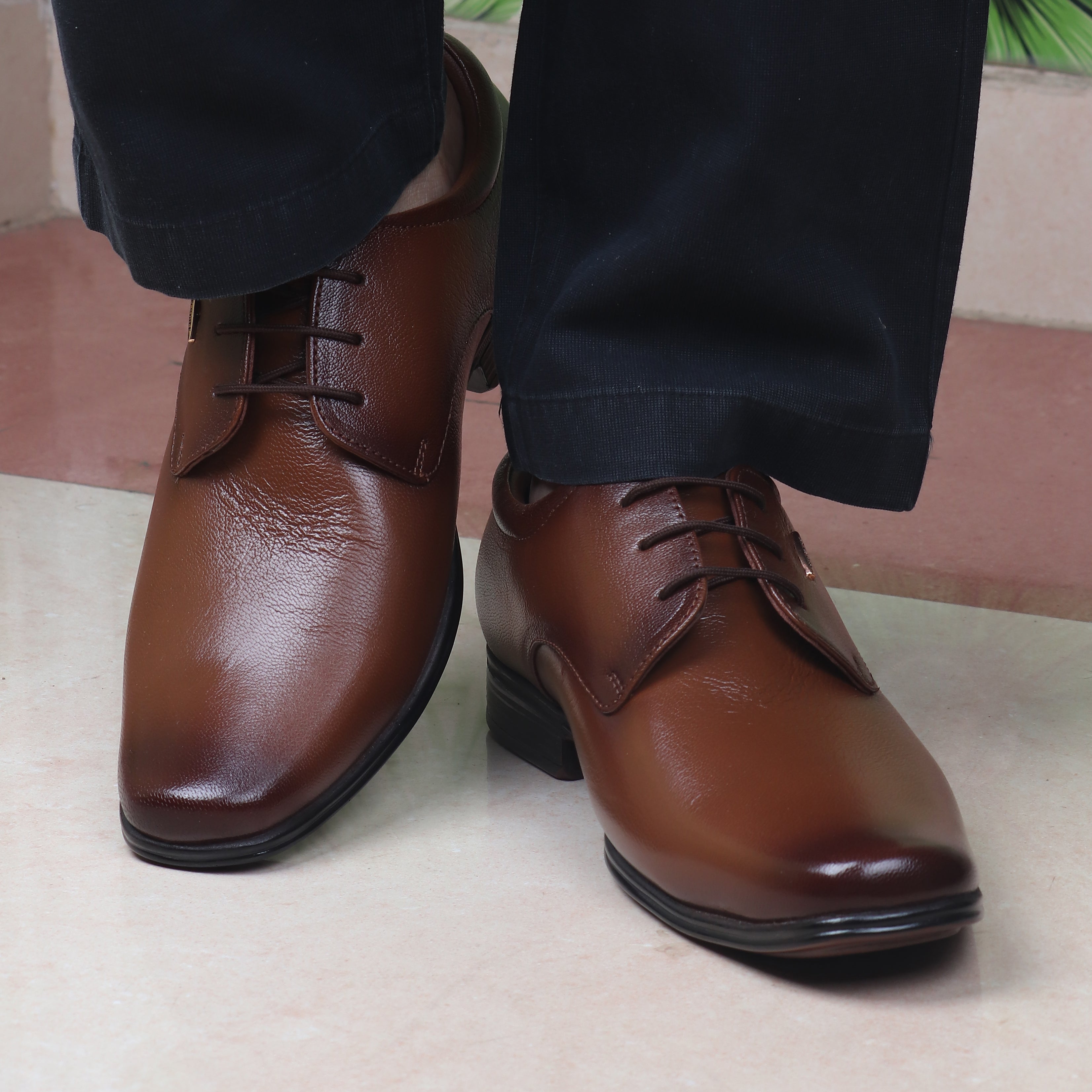 Complement your formal outfit with these tan formal derbies by Red Chief. Made from leather upper for a classy look and durability and PU sole for walking flexibility and slip resistance these shoes deserve to be in your closet. Team them with formal outfit for best results.