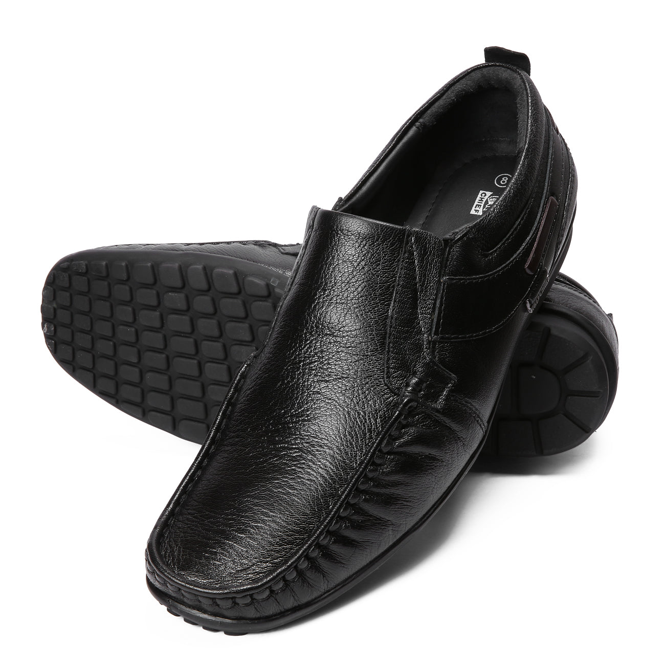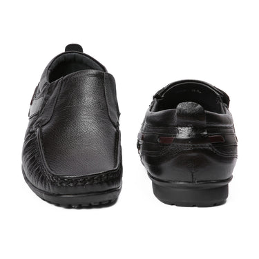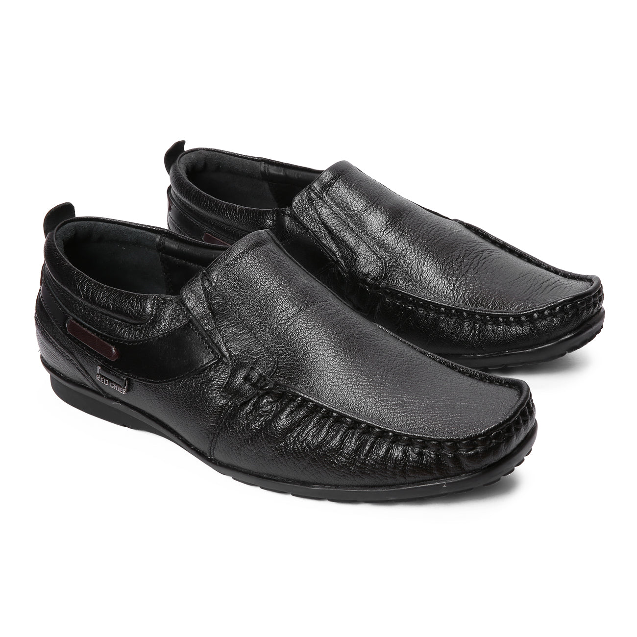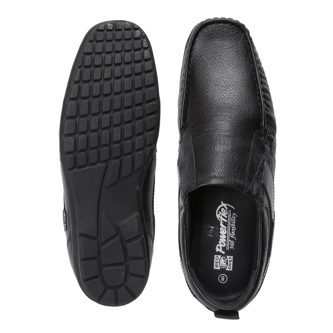 Put your best foot forward donning these black formal shoes from Red Chief. Finished with classic gather stitch detail these slip-ons will give that extra edge to your attire. Durable and comfortable to wear these shoes are designed with goat milled napa upper and TPR (thermoplastic rubber) outsole.