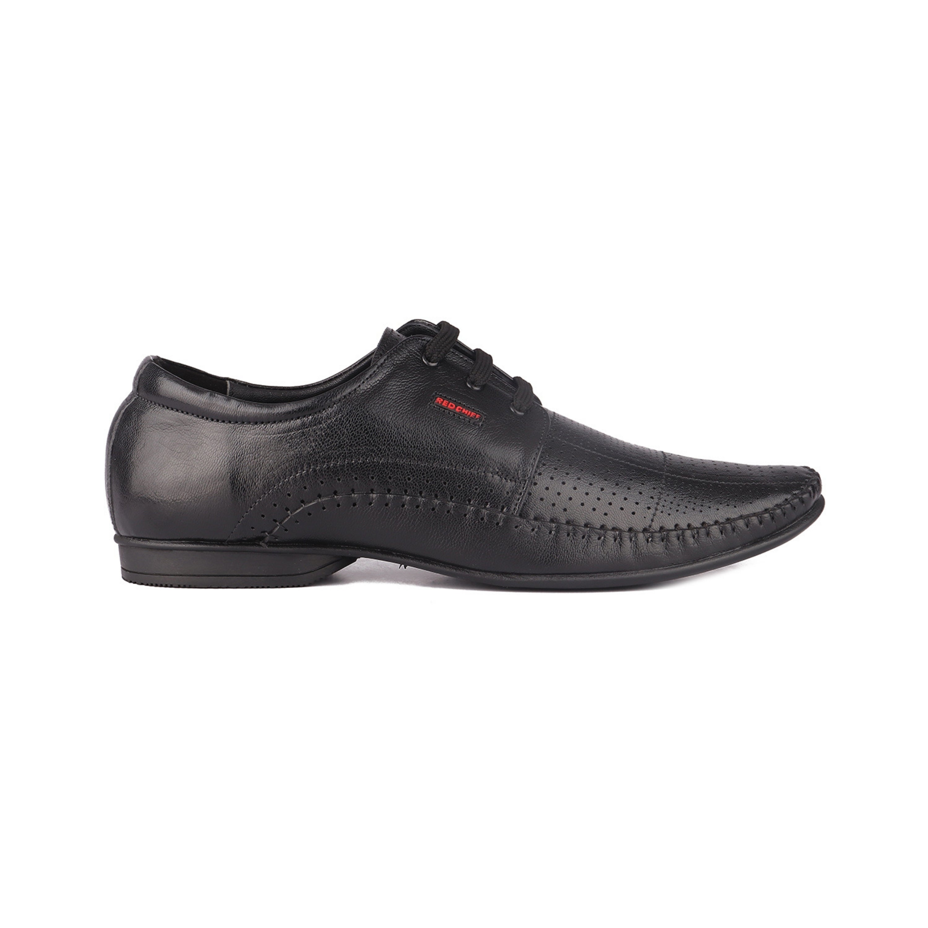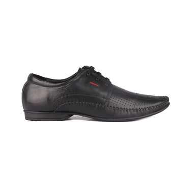 Create your own mark on the style panel wearing these black derby formal shoes from Red Chief. Made from genuine leather these shoes are compact and stitched for a handsome touch of style and ensure a durable professional look. The padded PU sole of the shoes will ensure your comfort and supportive grip throughout the day. Pair these shoes with your favorite attire for a flawless look.