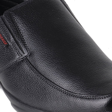 Give an instant update to your footwear collection with these black formal shoes by Red Chief. Showcasing a striking low-ankle design these shoes feature a goat nappa leather upper for a classy effect. The flexible PU (polyurethane) outsole assures durability. Club these shoes with flat-front trousers.