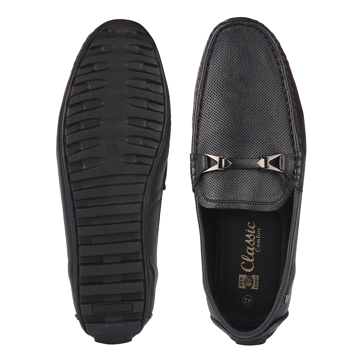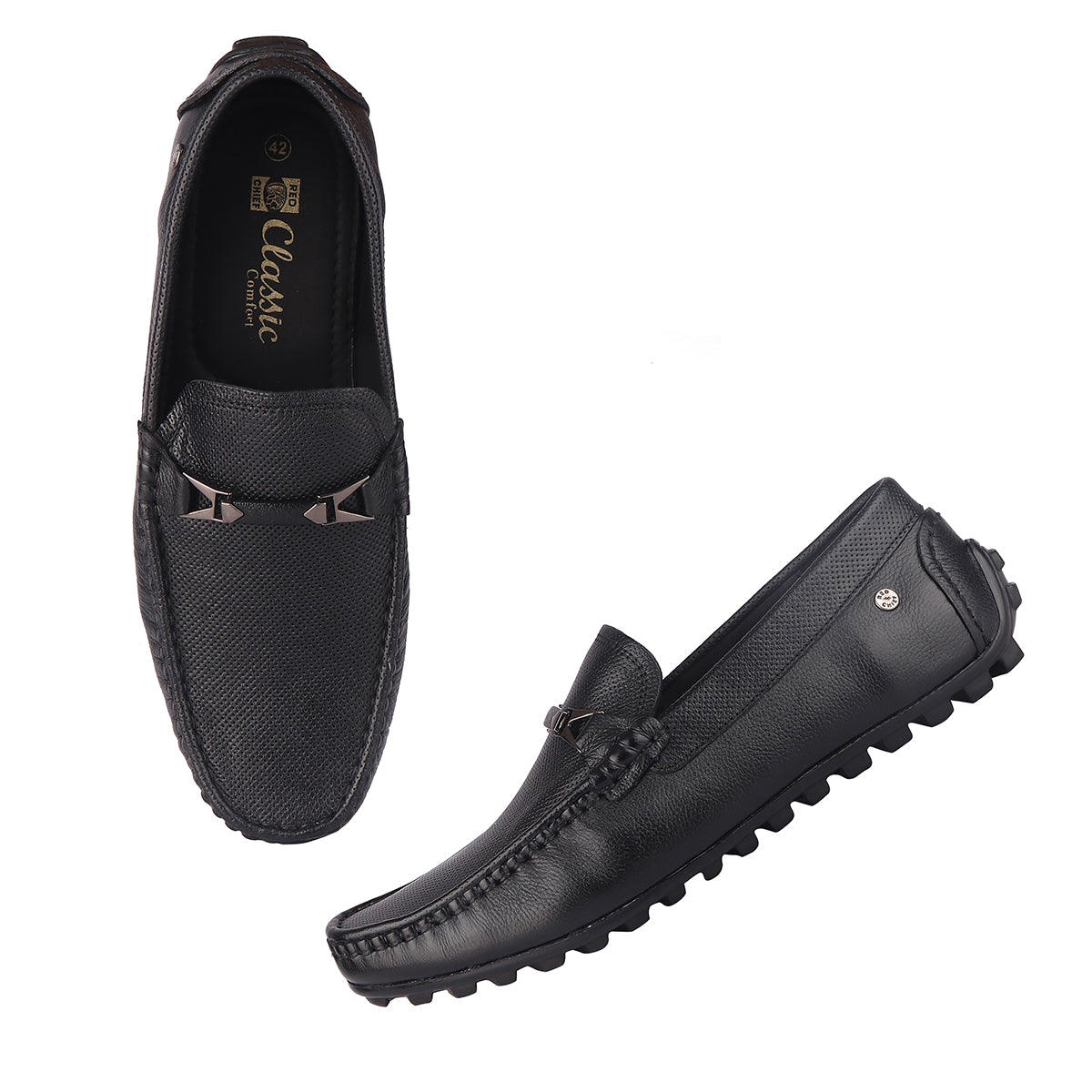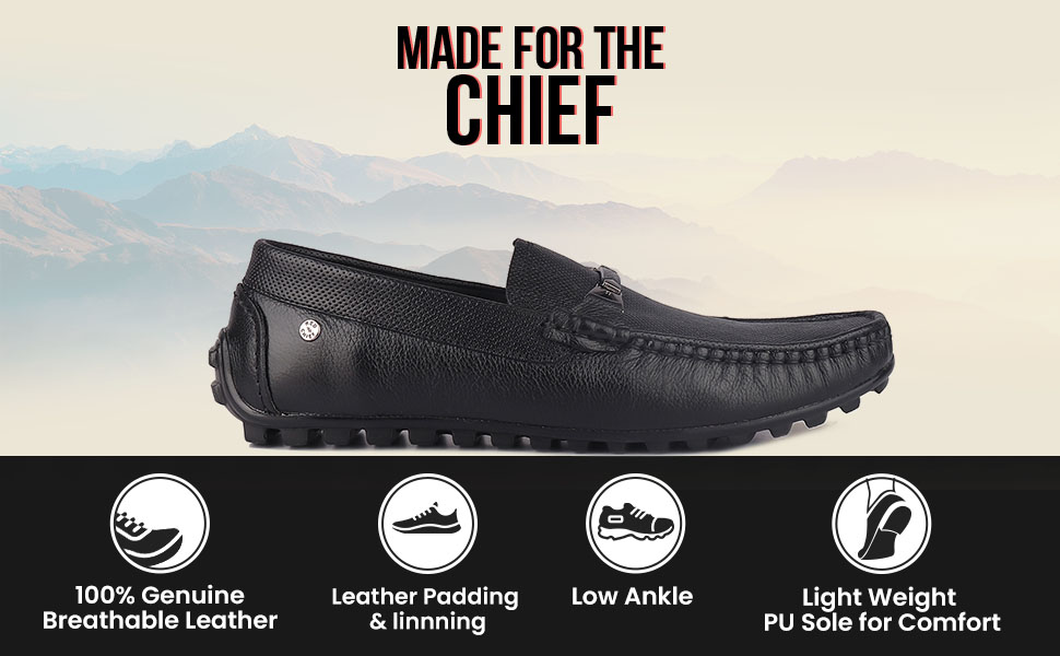 Red Chief has designed these black formal loafer shoes for men who have a thing for classic fashion. Set in a clean classic streamlined silhouette with a tab on the top and branding on the side heel these loafers instantly add character to your outfit. Having an ultra-breathable upper material and groovy outsole these high-cushioned shoes are odour and slip-resistant too. Rock the meeting in formal attire and these shoes.