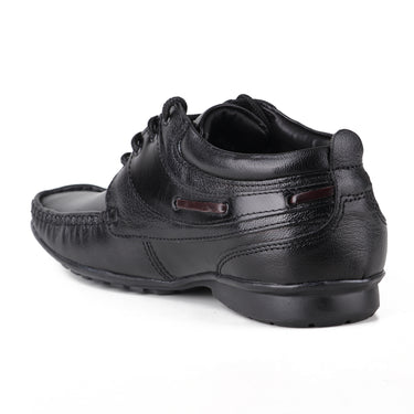 Create your own mark on the style panel wearing these black derby formal shoes from PowerFlex by Red Chief. Made from genuine leather these shoes are compact and stitched with a moc toe design for a handsome touch of style and ensure a durable professional look. The padded PU sole of the shoes will ensure your comfort and supportive grip throughout the day. Pair these shoes with your favorite attire for a flawless look.