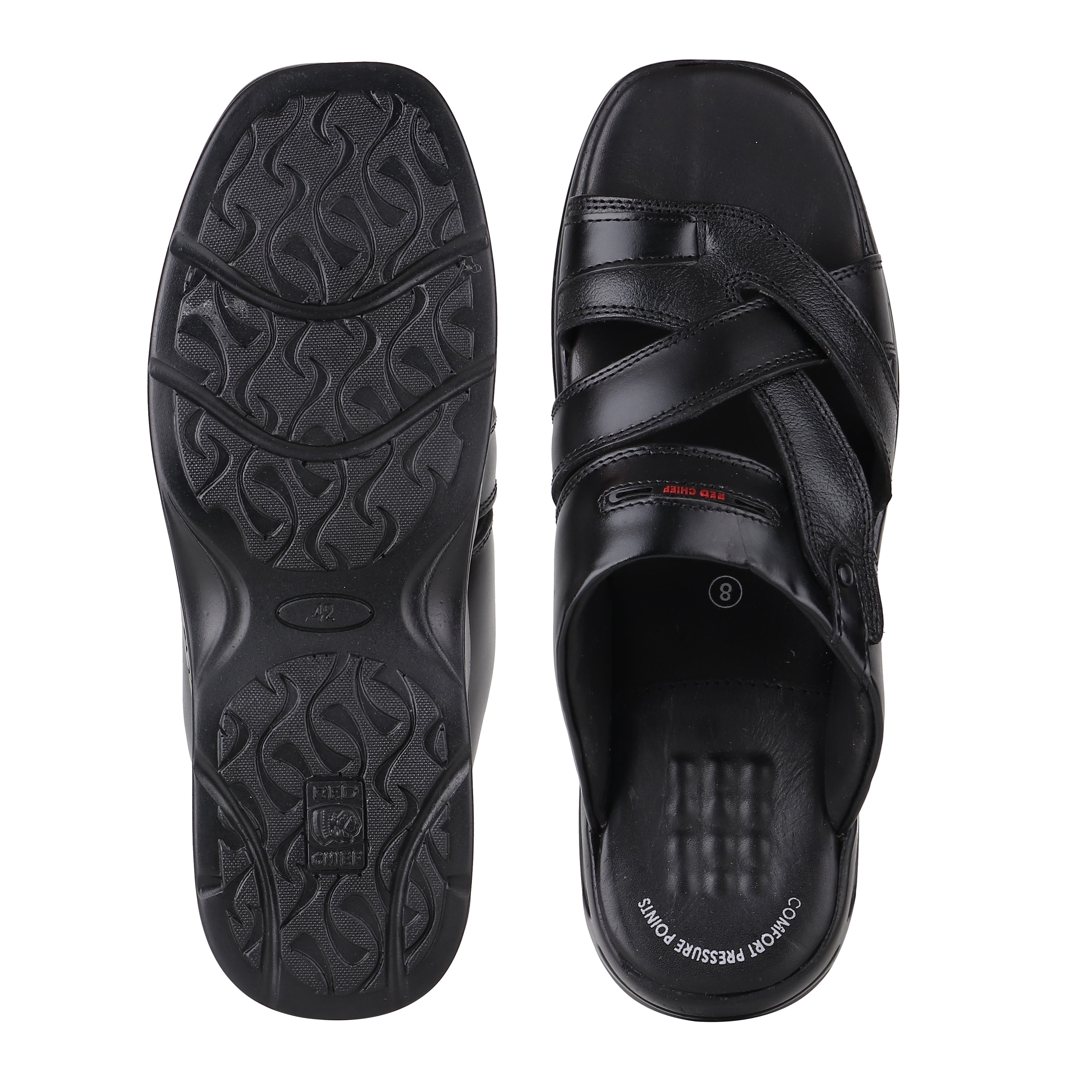 A classic design that belongs to every gent’s closet this pair of black-coloured formal slippers are stylishly comfortable. These Red Chief slippers have nubuck leather upper and PU sole to provide excellent flexibity and comfort to your feet while standing or walking.