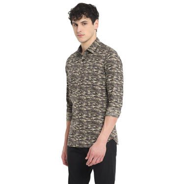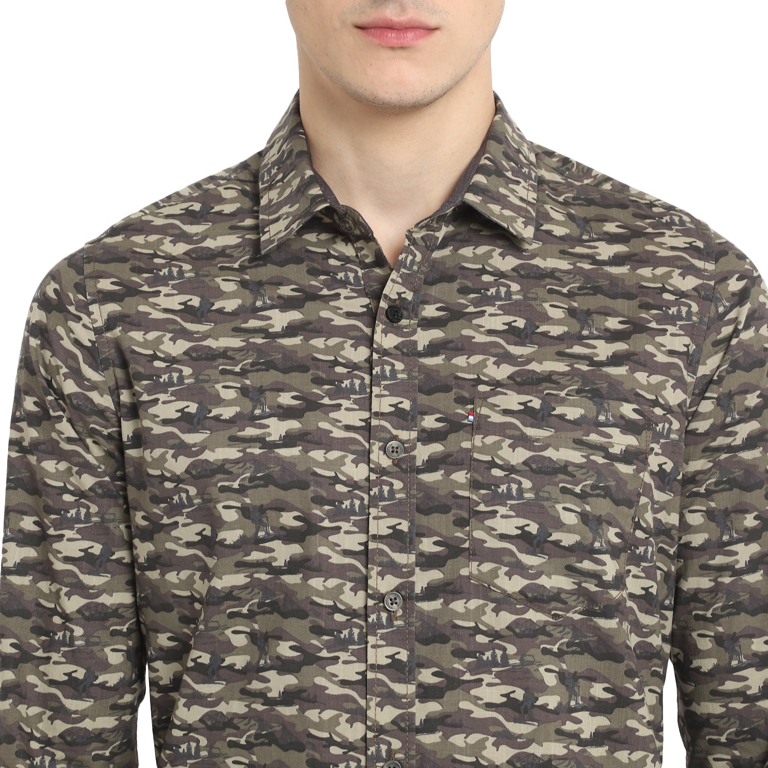 An intelligent selection for versatile style, this Red Chief olive plain-weave shirt boasts an all-over casual print, complemented by a chest pocket featuring a Tri-color flag label. Crafted from soft and breathable cotton fabric, this ultra-slim shirt ensures year-round comfort, irrespective of the season. Whether paired solo with chinos or layered under a jacket, this long-sleeved shirt guarantees a fail-proof style statement.