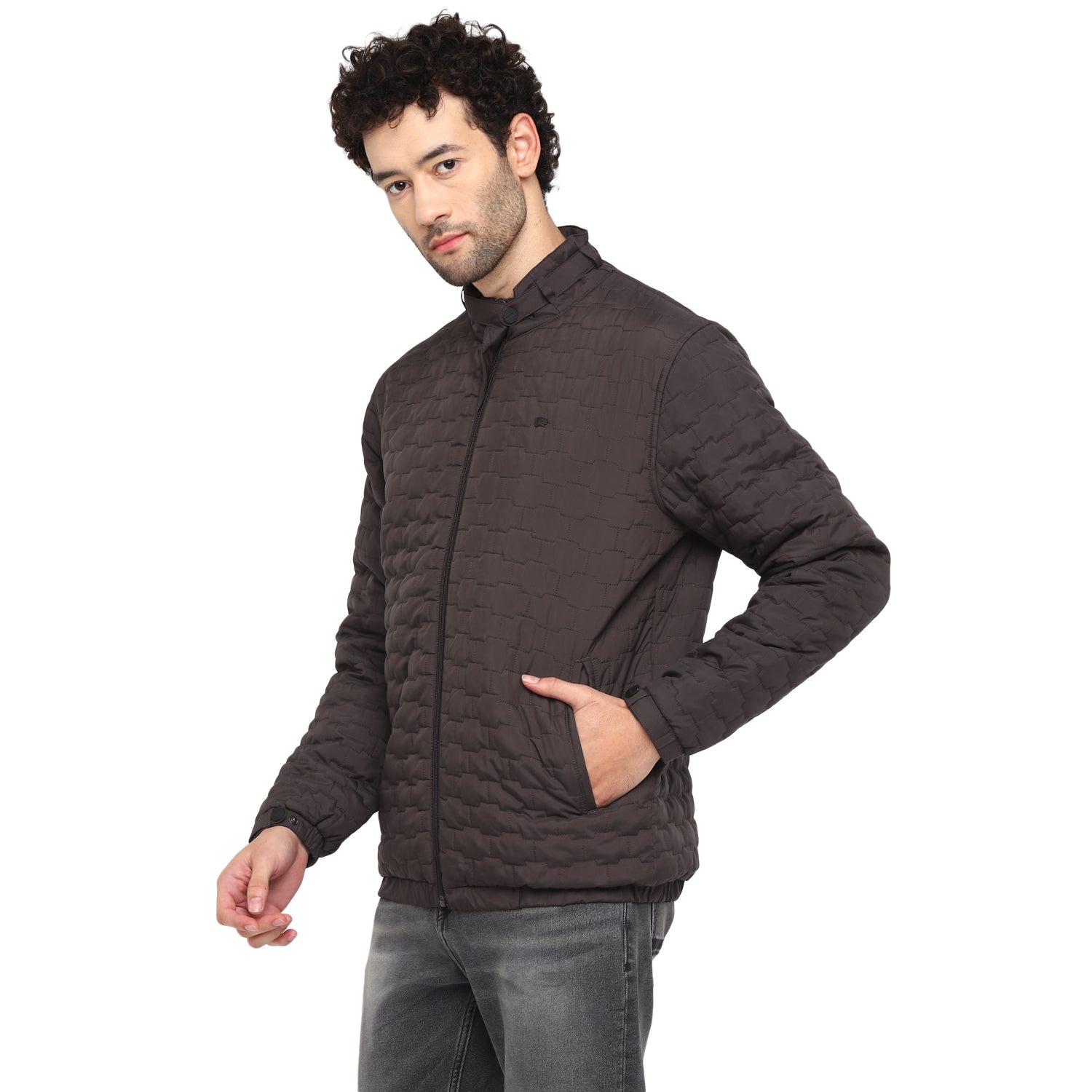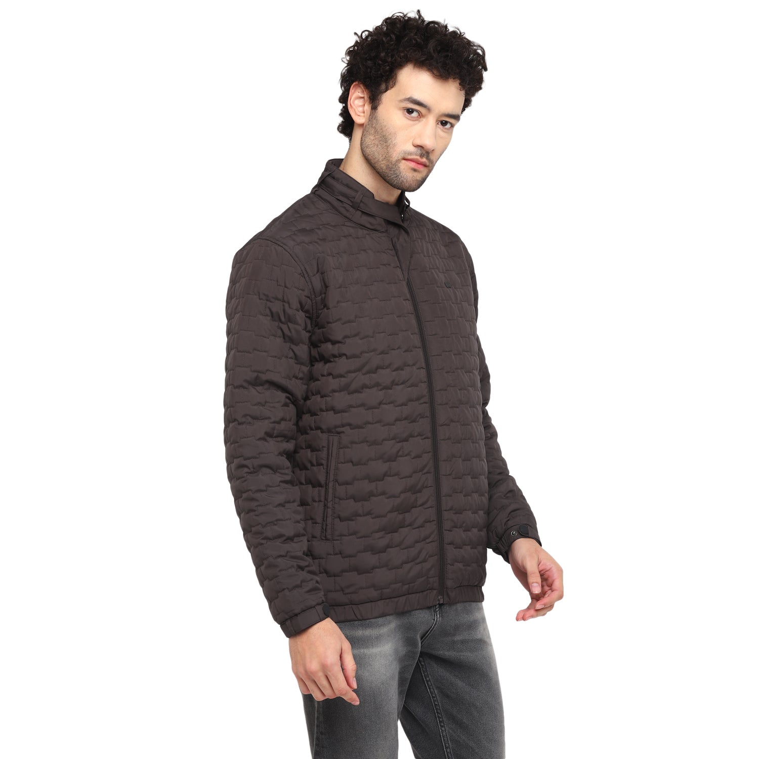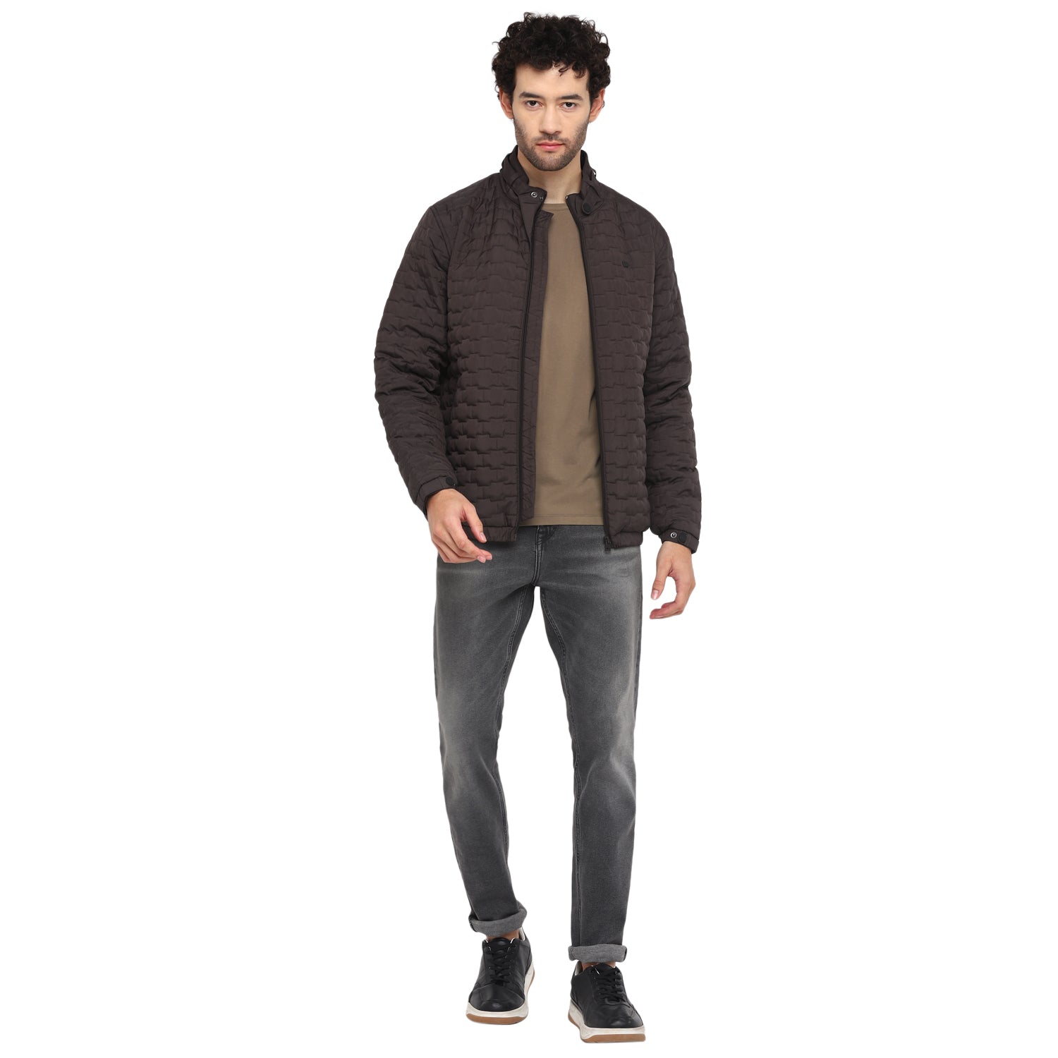 For an elegant winter style, pick this dark brown regular-fit puffy jacket by Red Chief. It comes in an all-over quilted pattern complemented by a funnel neck, front zipper, and twin-side pockets, assuring an easy, comfortable fit and good functionality. The iconic metal face branding at the chest further gives an elite touch to this jacket. It is perfect to pair with any jeans.