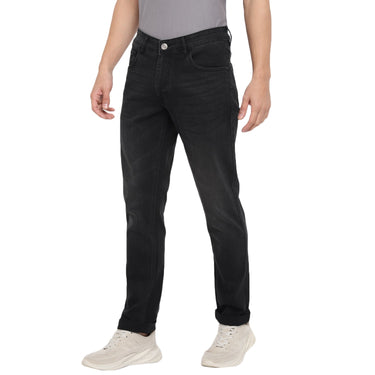 Featuring an evergreen silhouette with enzyme wash and DTM colour stitching all over, these black narrow-fit jeans by Red Chief are a modern wardrobe essential. The leather brand patch on the back waistband further adds a signature touch to these jeans and makes them a must-have. Made from soft, breathable, and stretchable fabric, these jeans assure all-day wearing comfort with ease of movement.