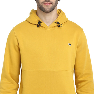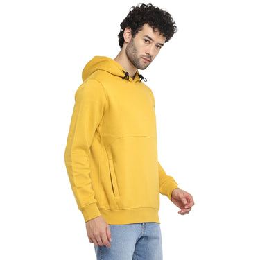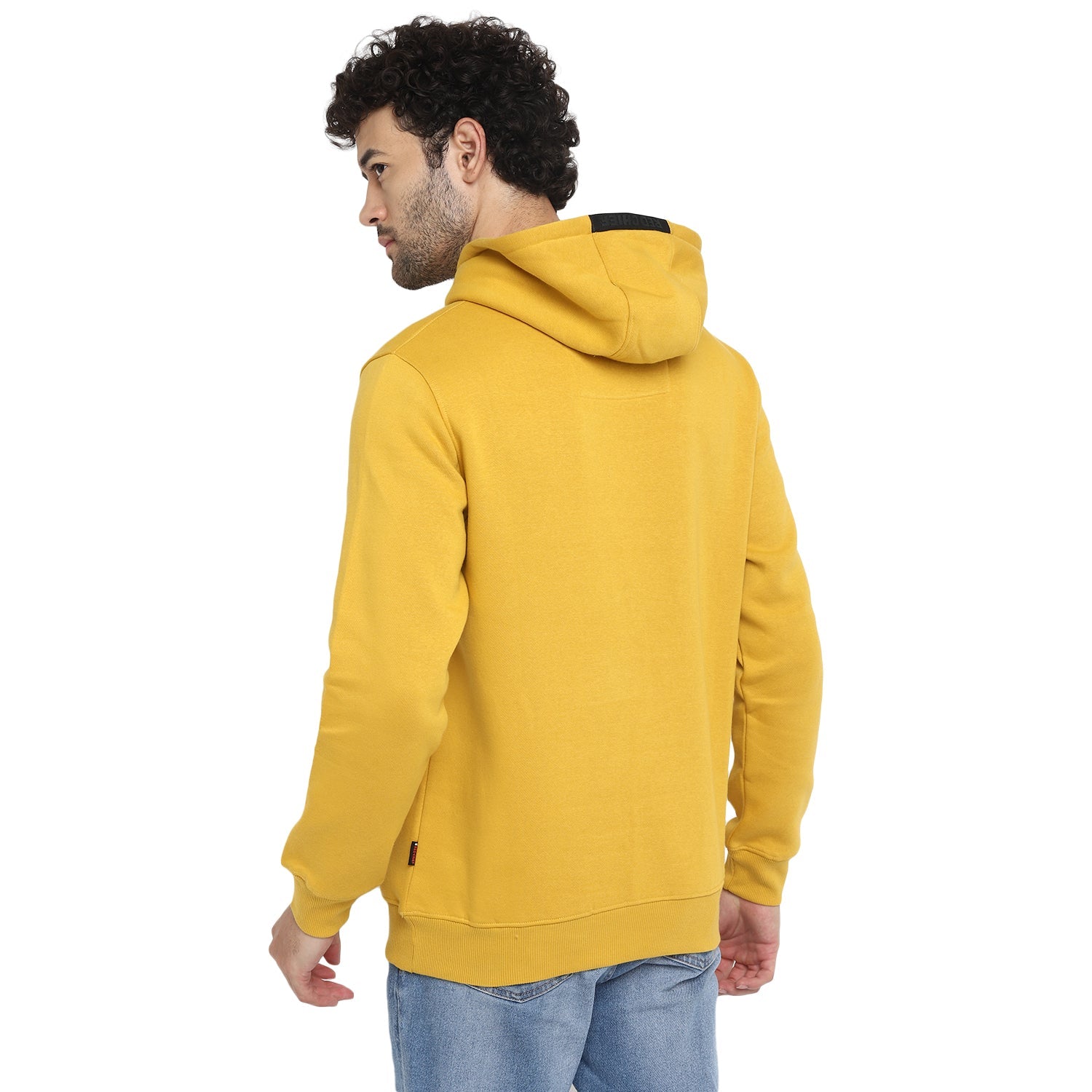 Designed in a hooded silhouette, this Red Chief mustard sweatshirt features cut and sew self panels and the Red Chief HD print on the hood front part. It further features a zippered bone pocket and ribbed bottom hem. Team it best with jeans and chinos alike.