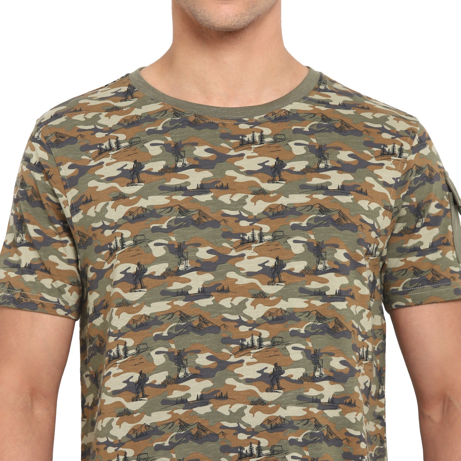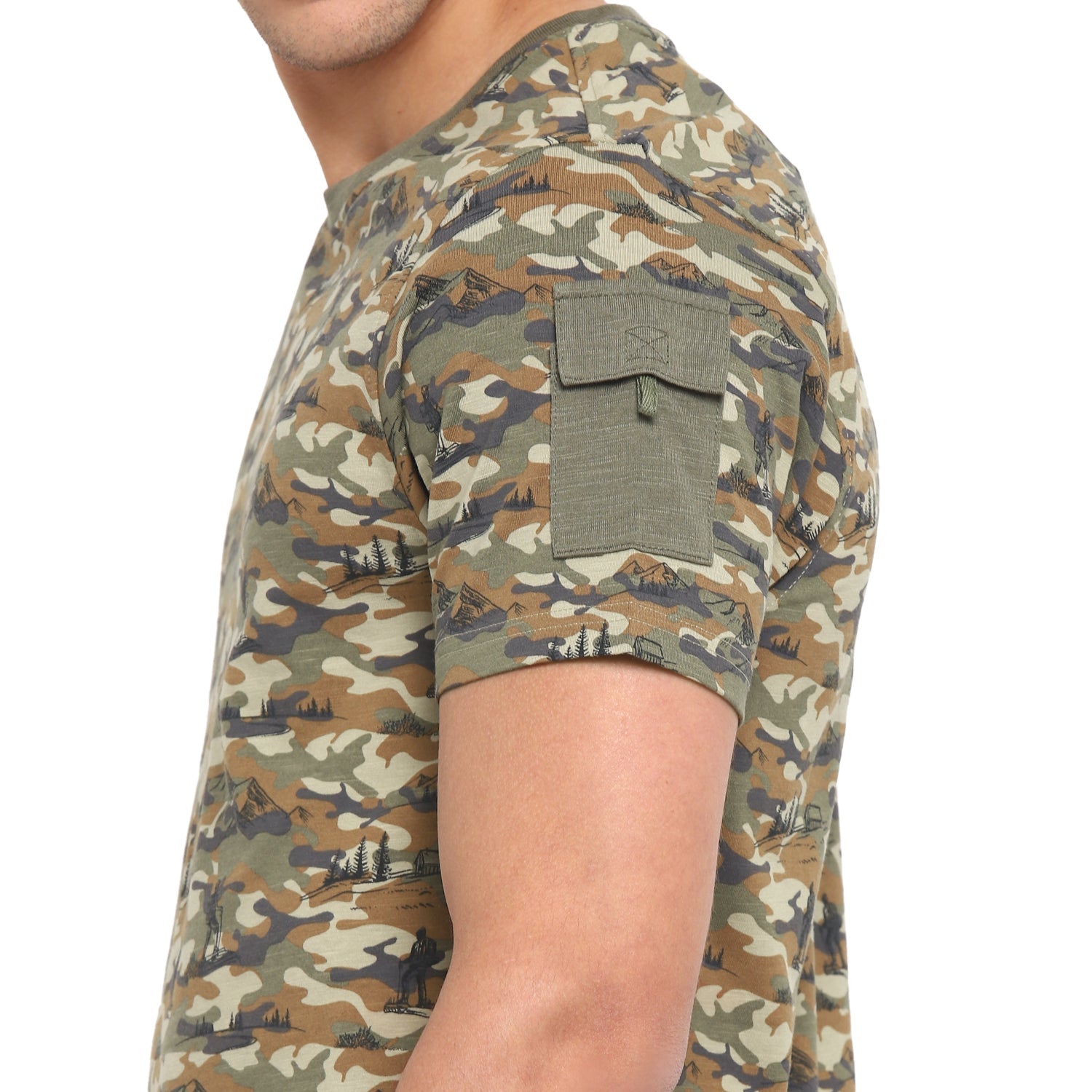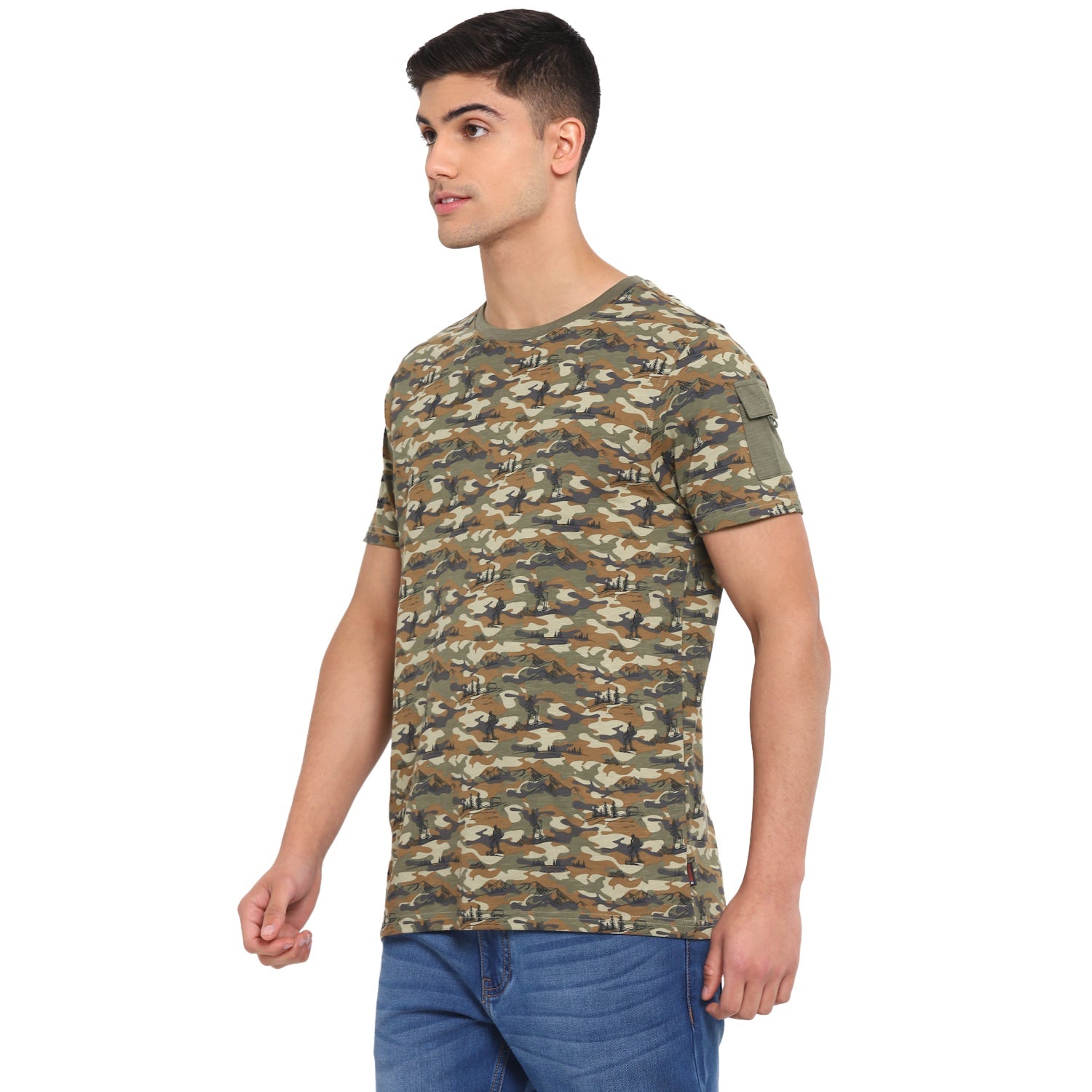 Just as stylish as comfortable this olive Red Chief T-shirt has slub single jersey fabric with an all-over camouflage print. This round-neck T-shirt also features a self-fabric patch pocket on the left sleeve for added style and functionality. Cut in a regular fit this T-shirt looks best with faded jeans.